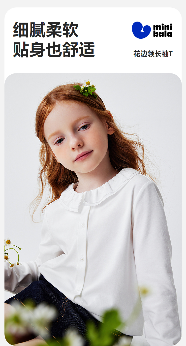 迷你巴拉巴拉女童宝宝儿童衬衫甜美可爱花边领植物纤维亲肤春新品