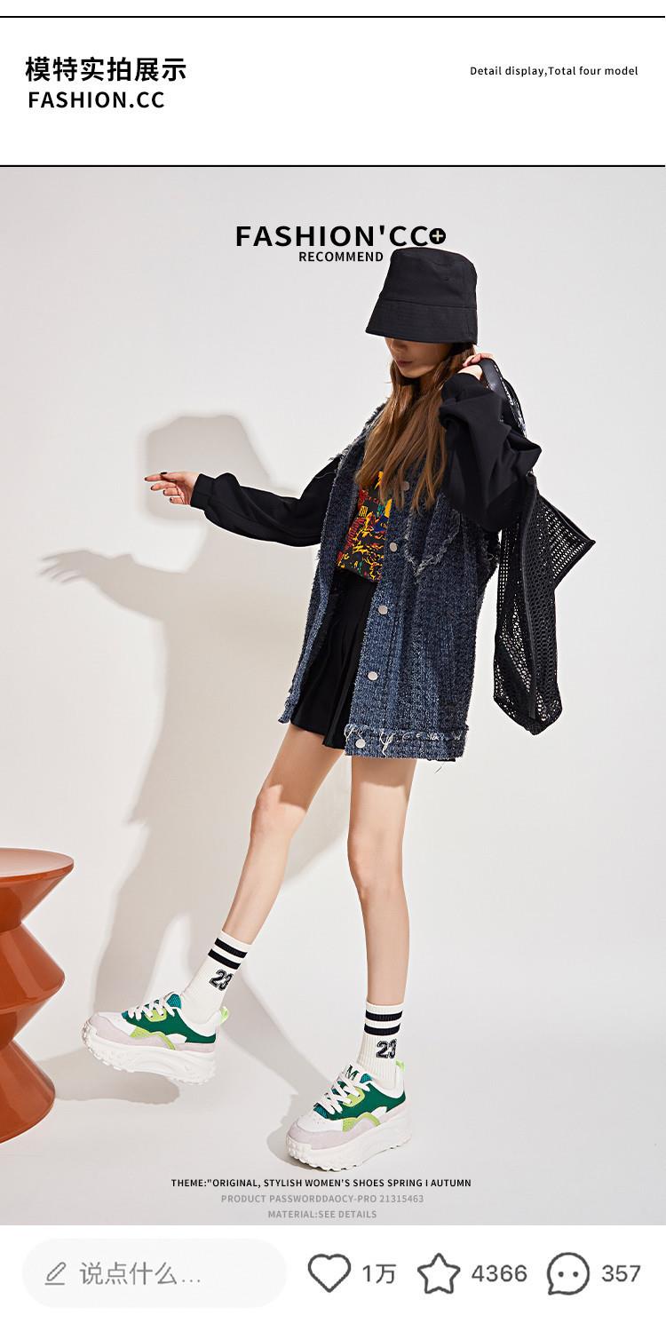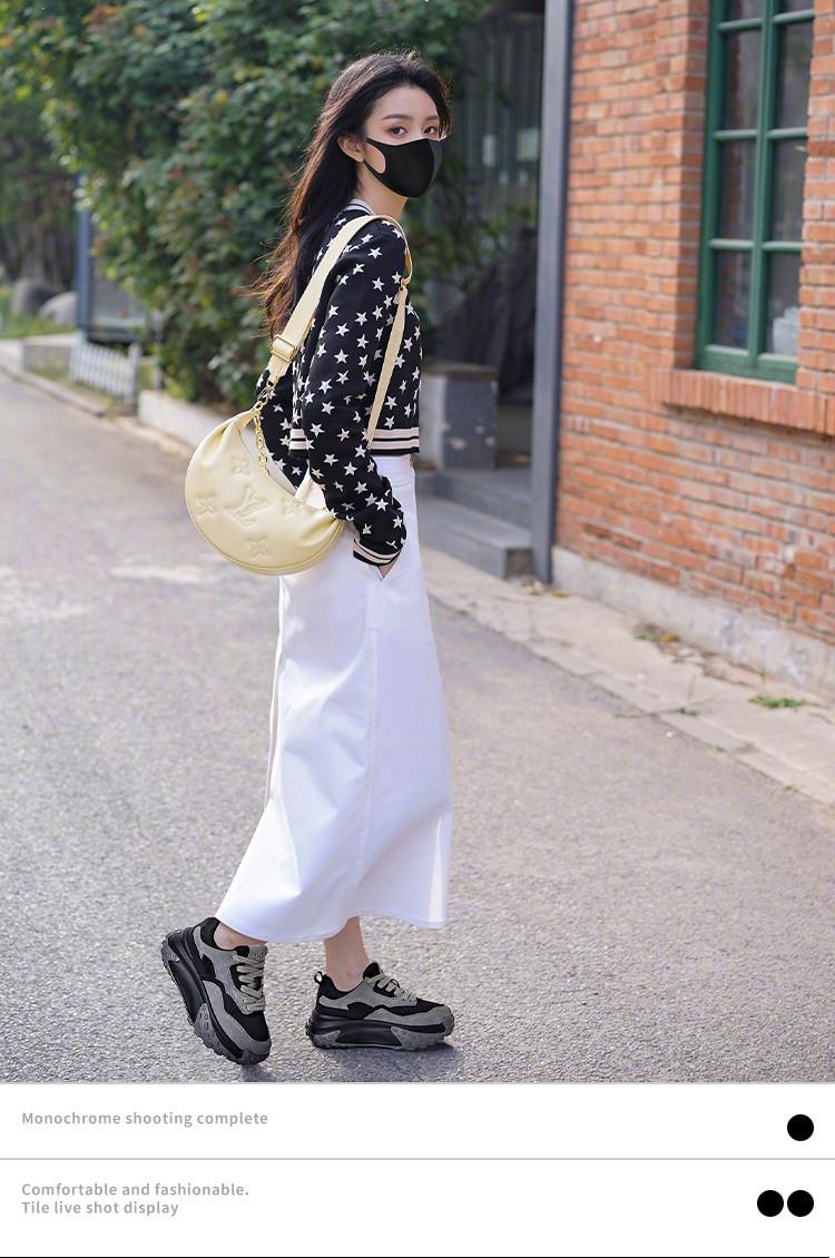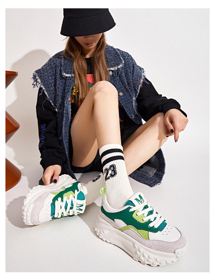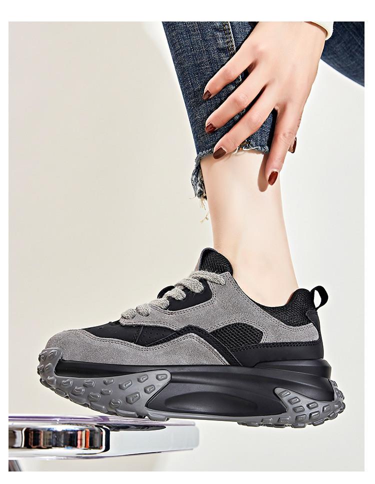 加绒真皮老爹鞋女2023秋季新款女士厚底运动鞋休闲百搭小白鞋女潮