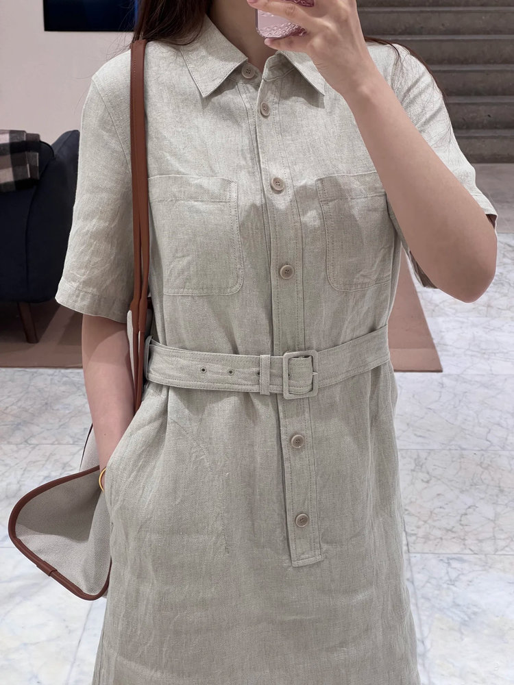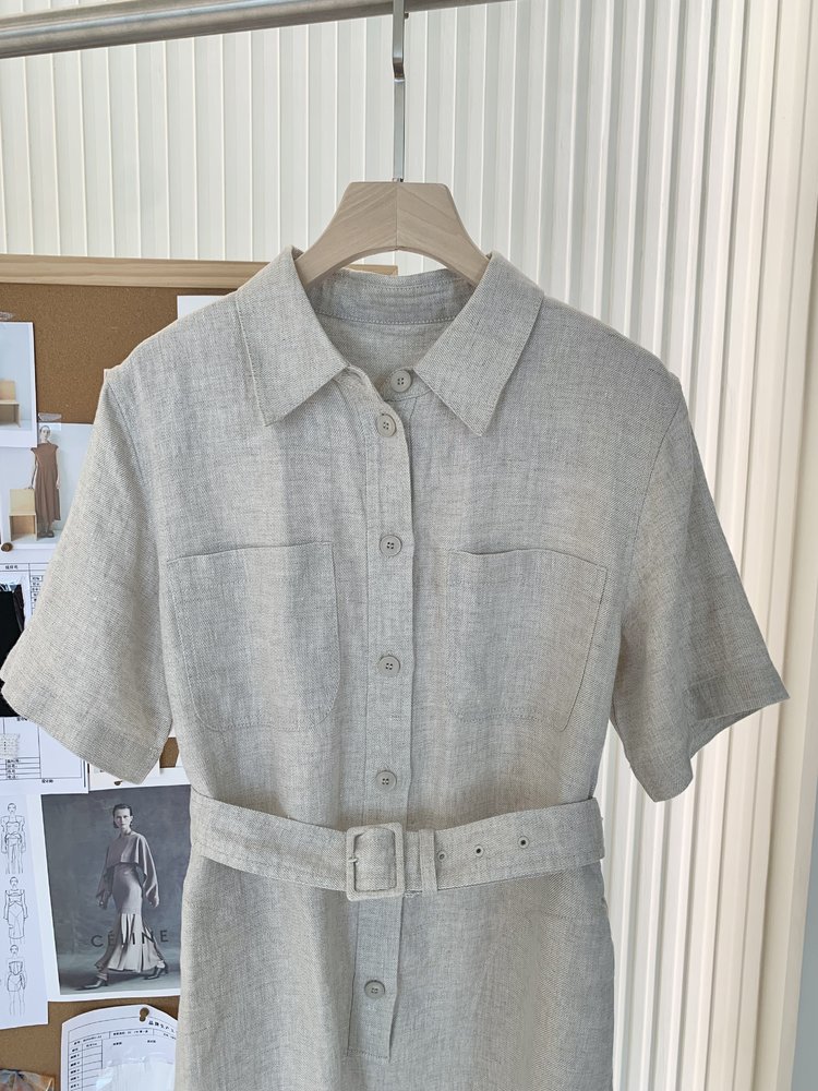 【高品质私服】【IC亚麻斜纹及膝连衣裙】G1326-CC【无标出货 介意慎拍】