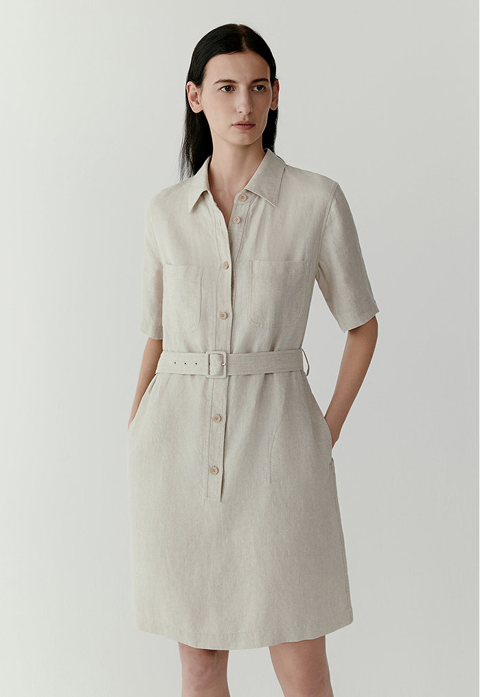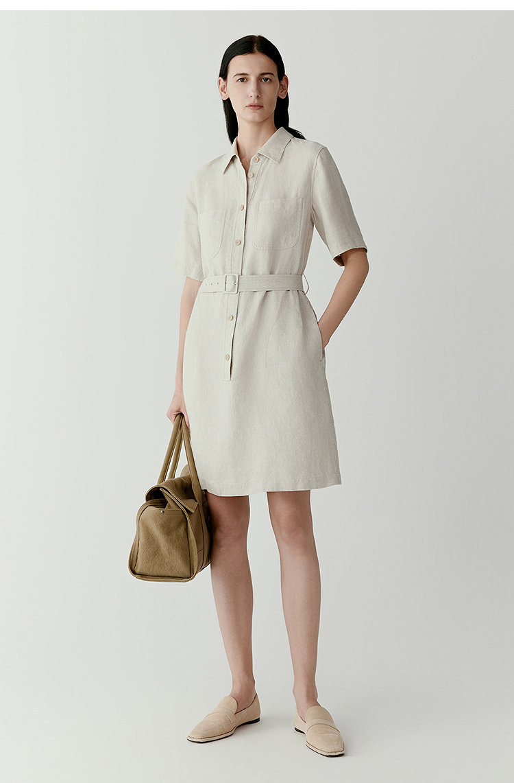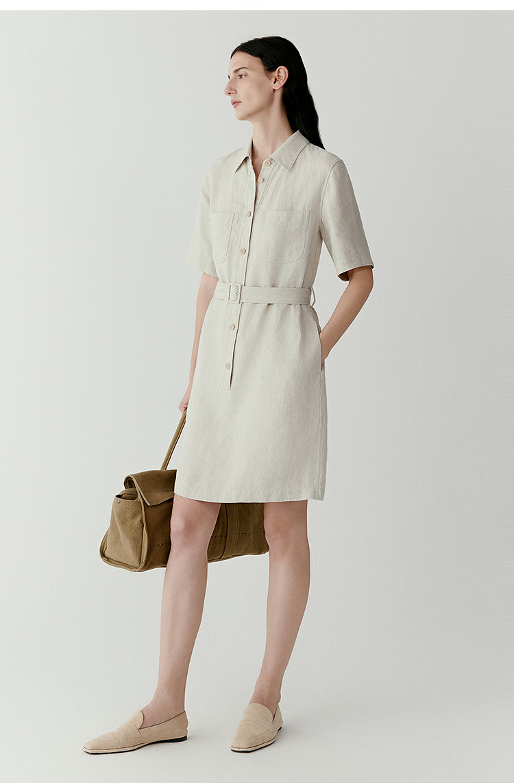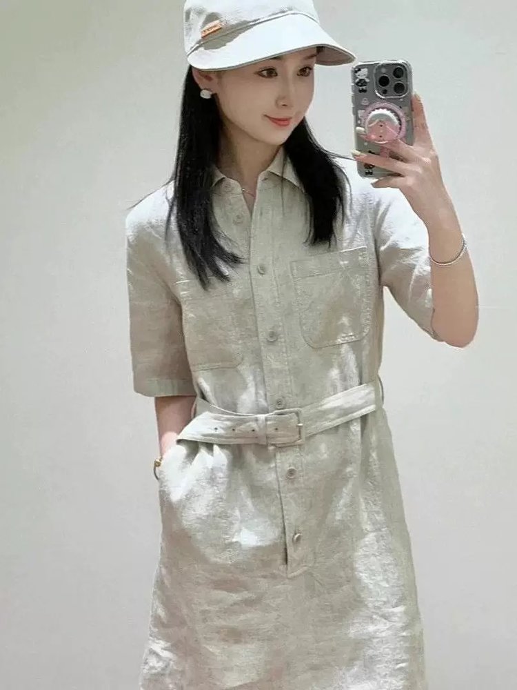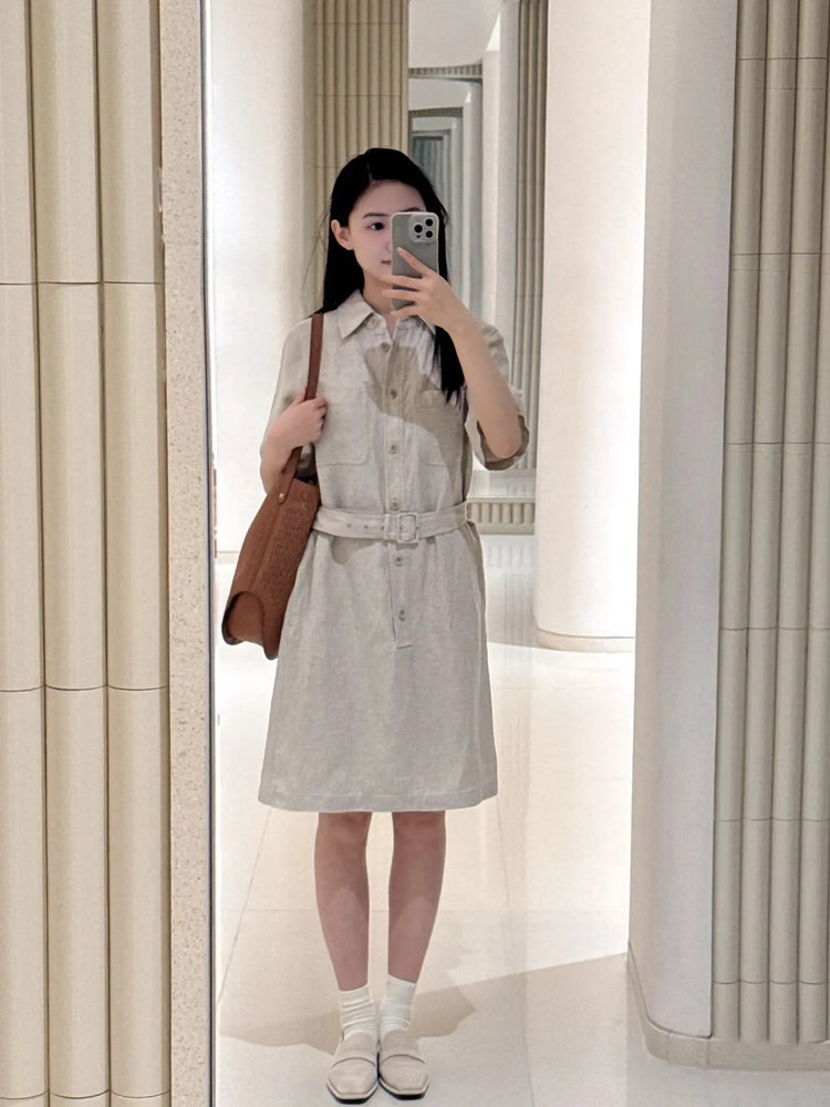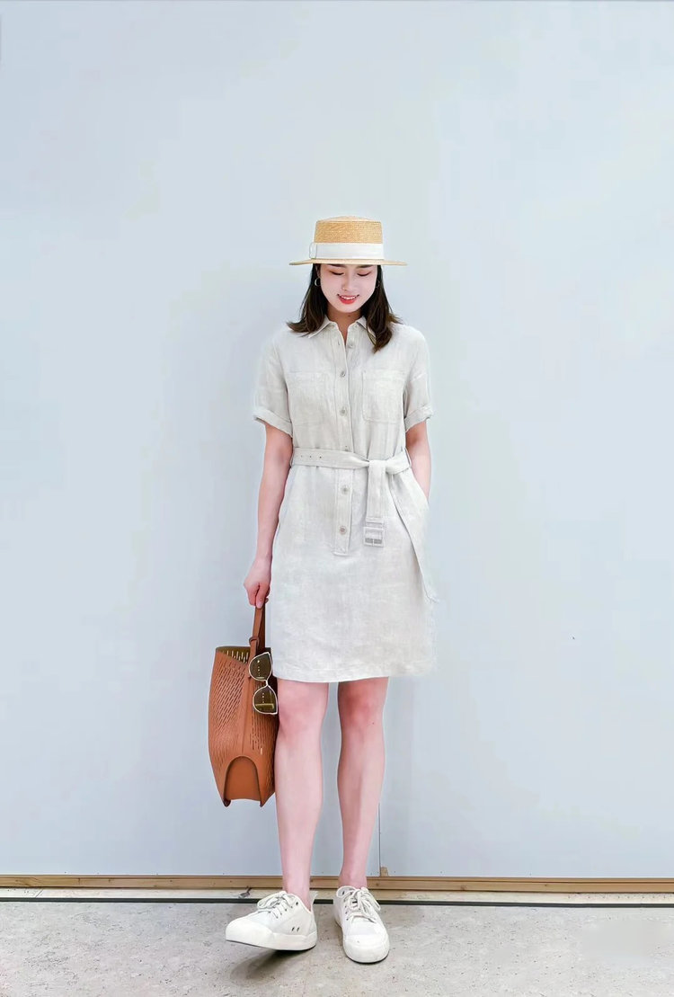 小禾同款亚麻斜纹及膝连衣裙,解锁多元魅力