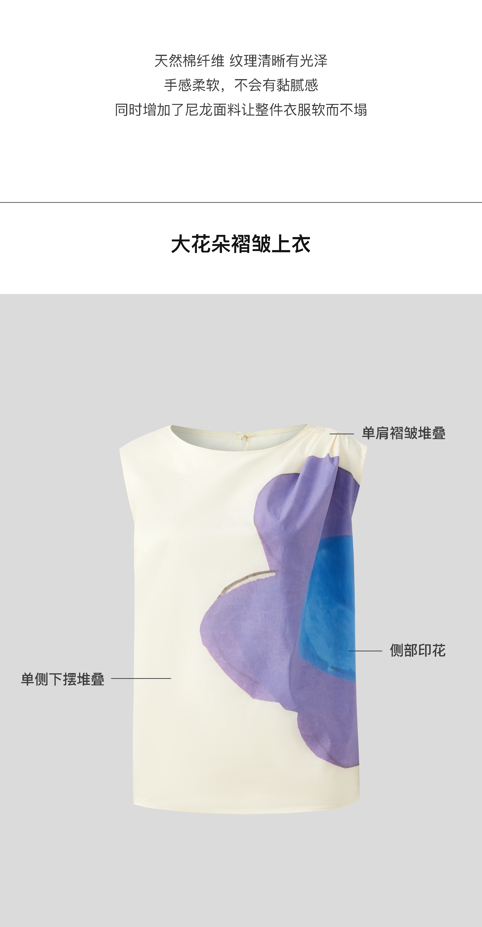 LIYIHAN花影 | 25夏新款纯棉大花朵褶皱上衣圆领无袖宽衬衫松舒适