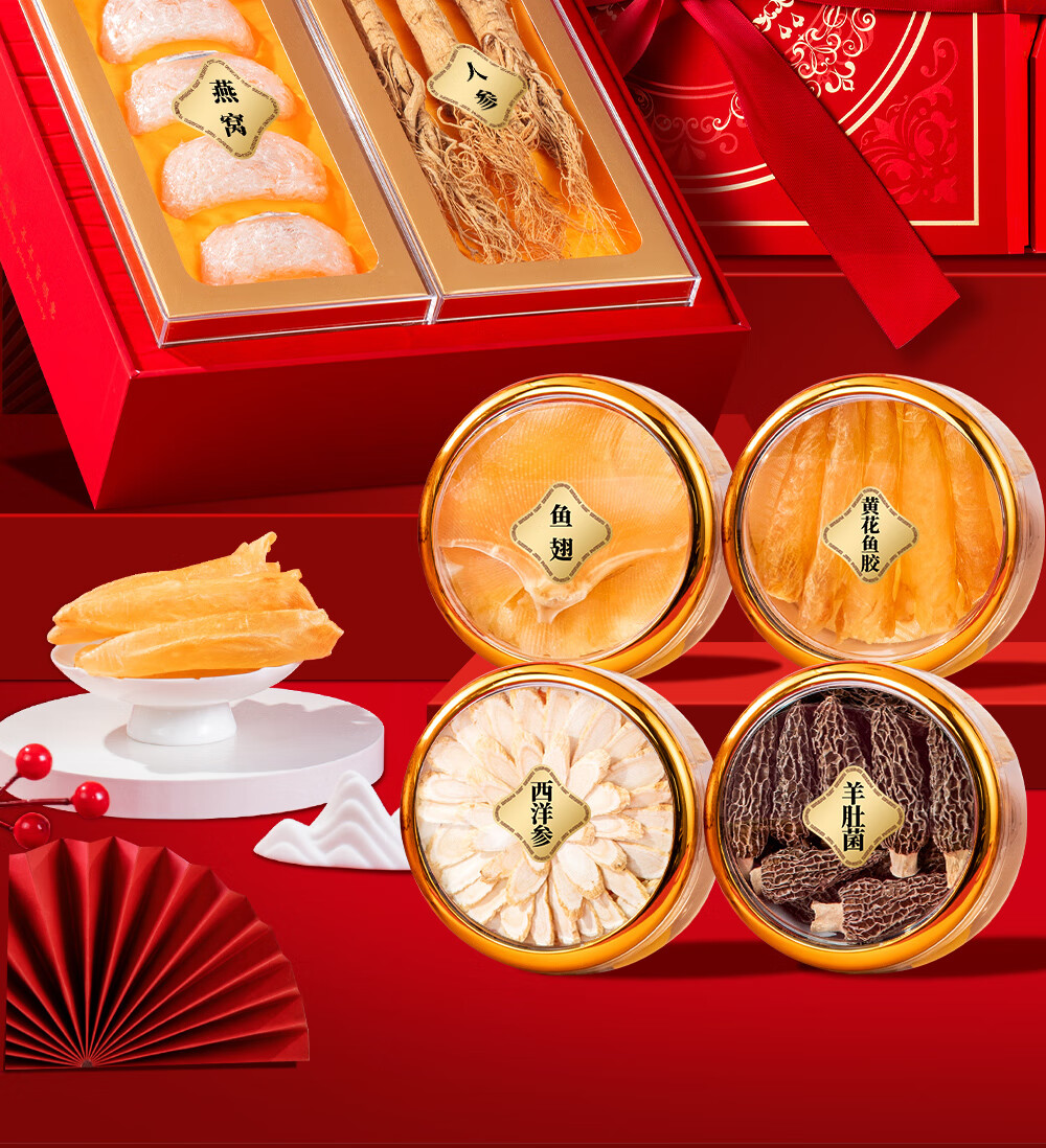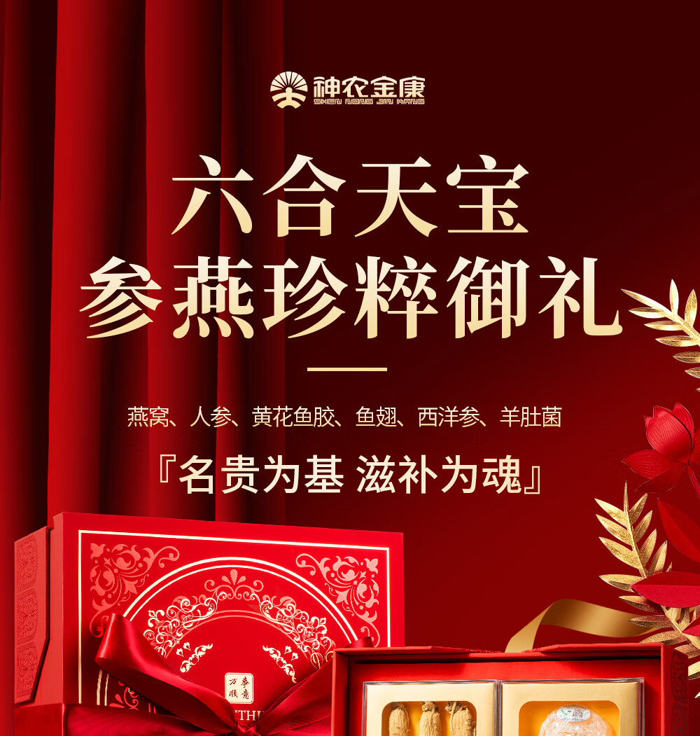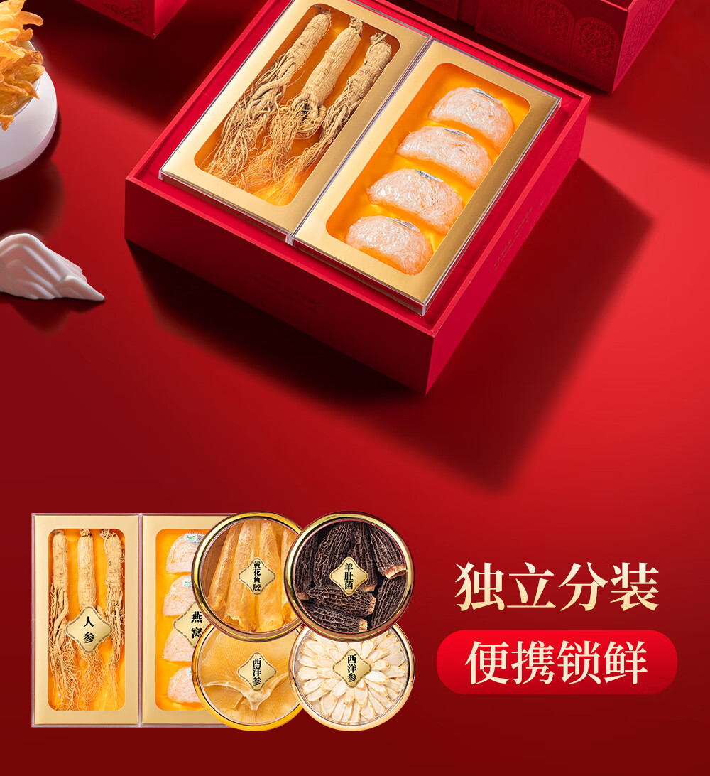 神农金康燕窝人参黄花鱼胶西洋参六拼礼盒228克 中秋礼品送父母长辈滋补品