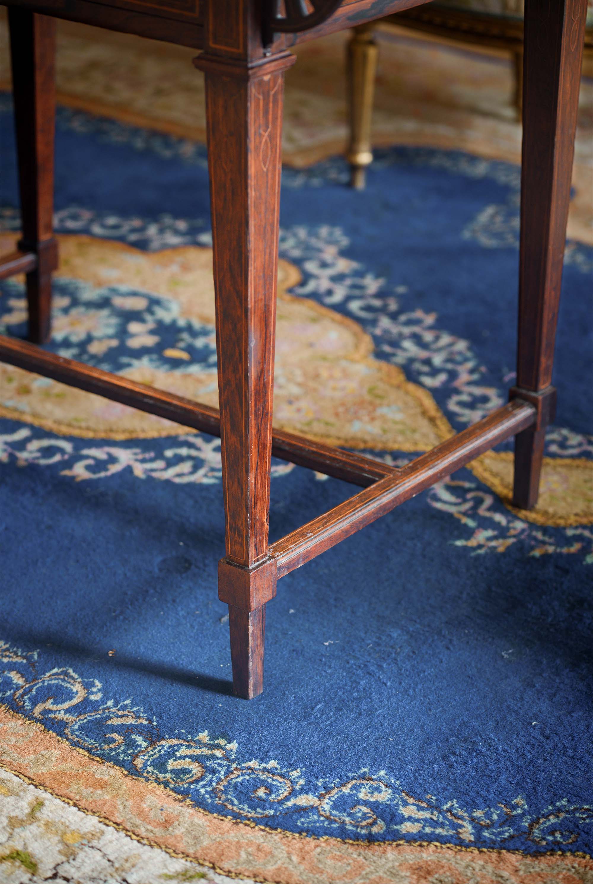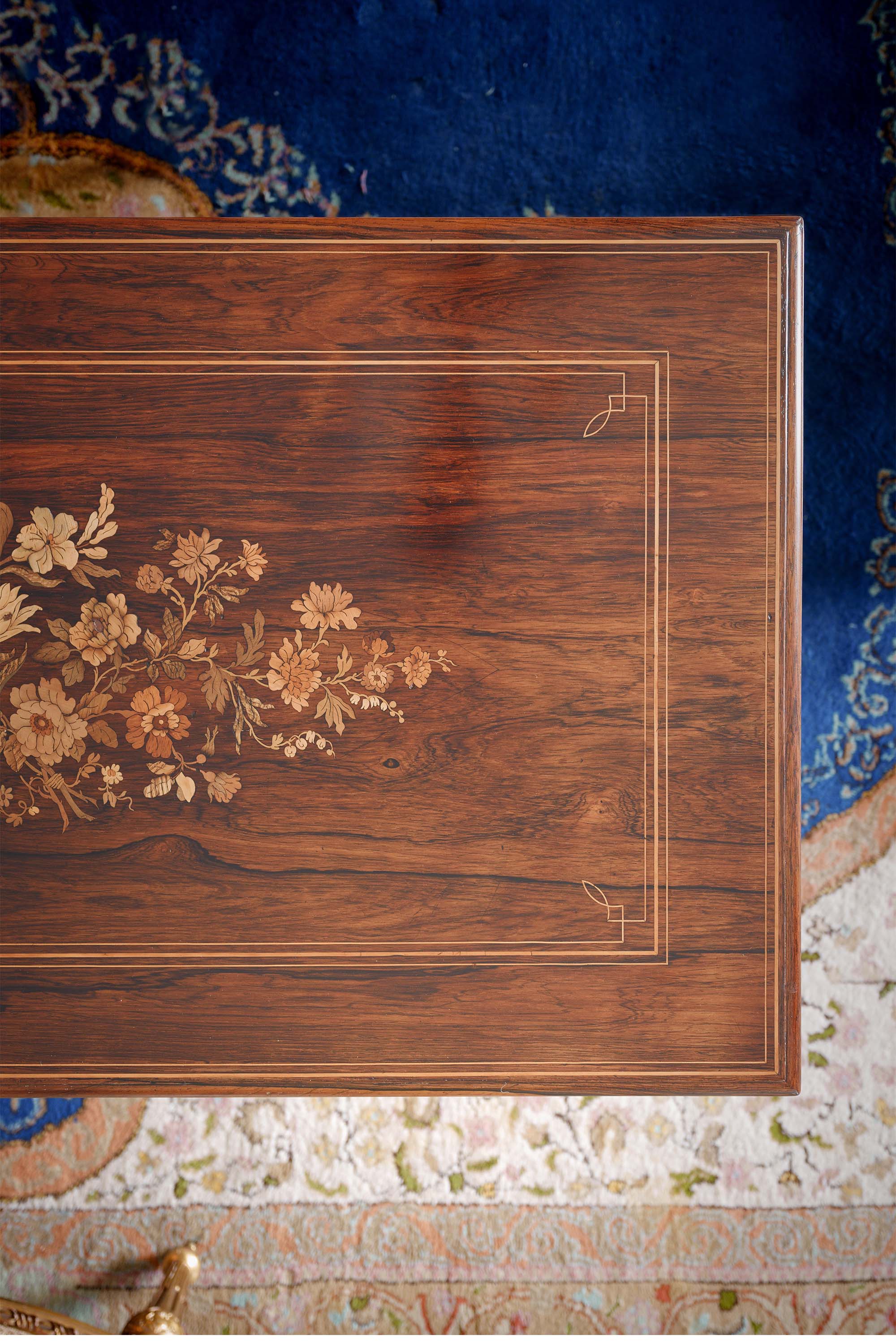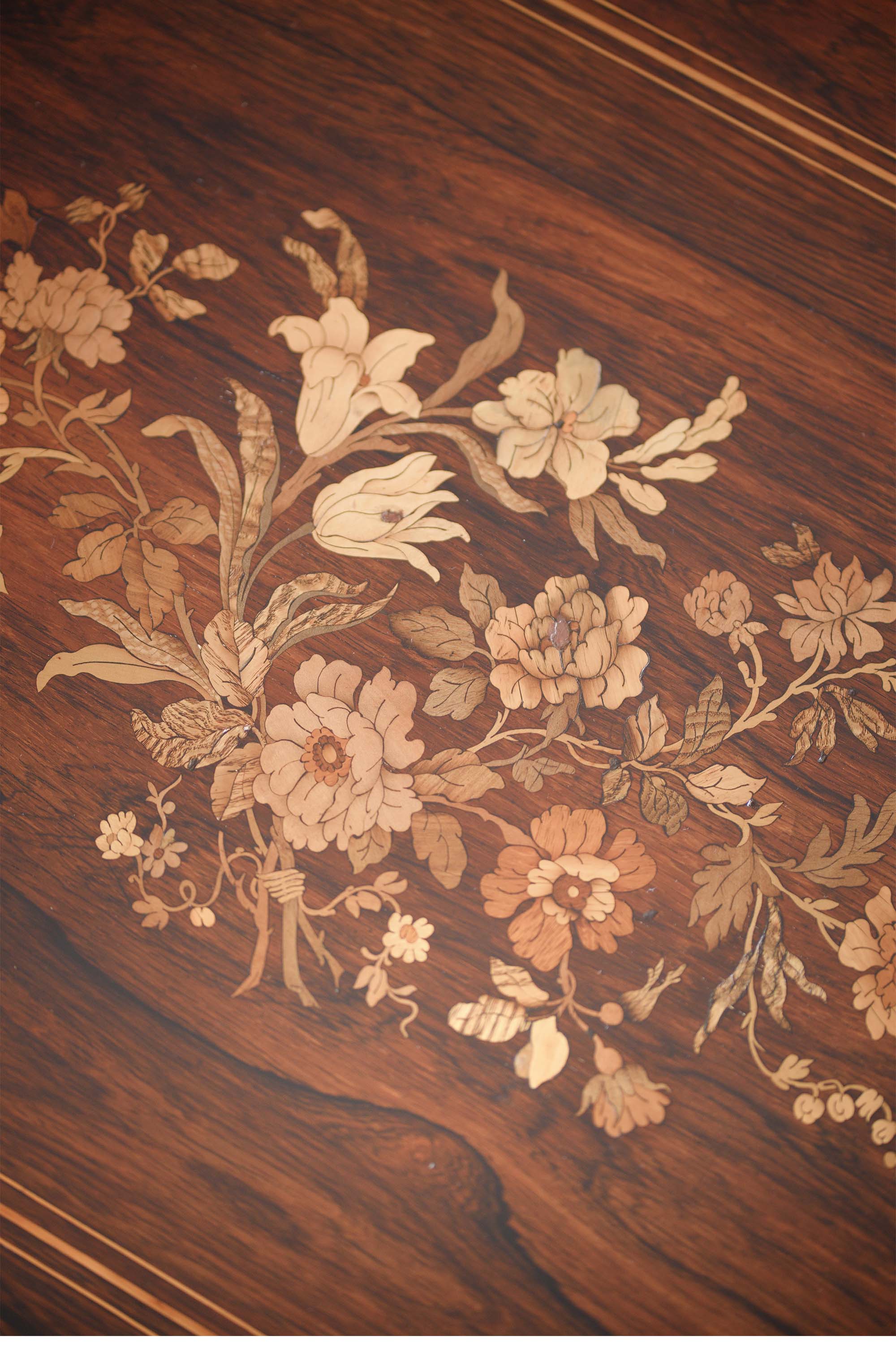 1890年代法国出品路易十六风格胡桃木精雕装饰自然繁花主题细木镶嵌边桌