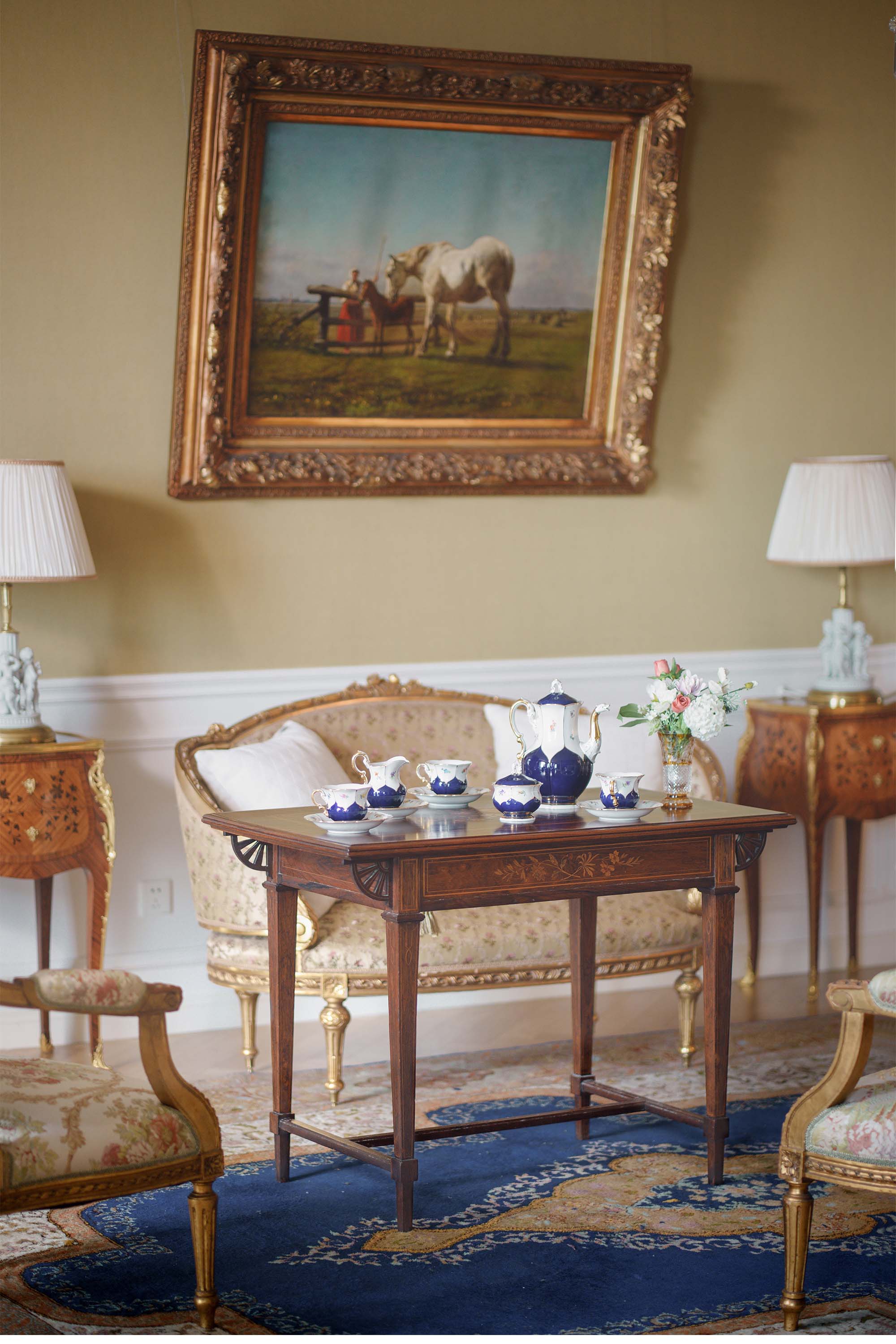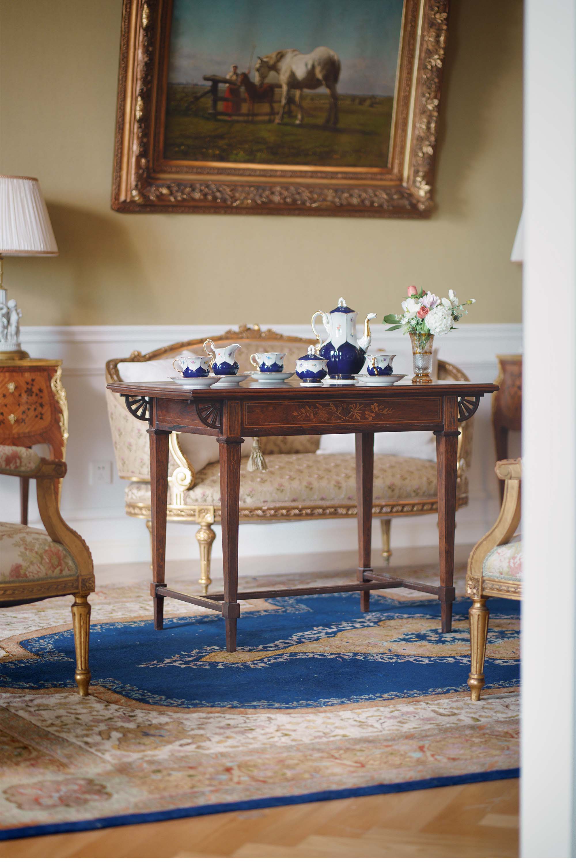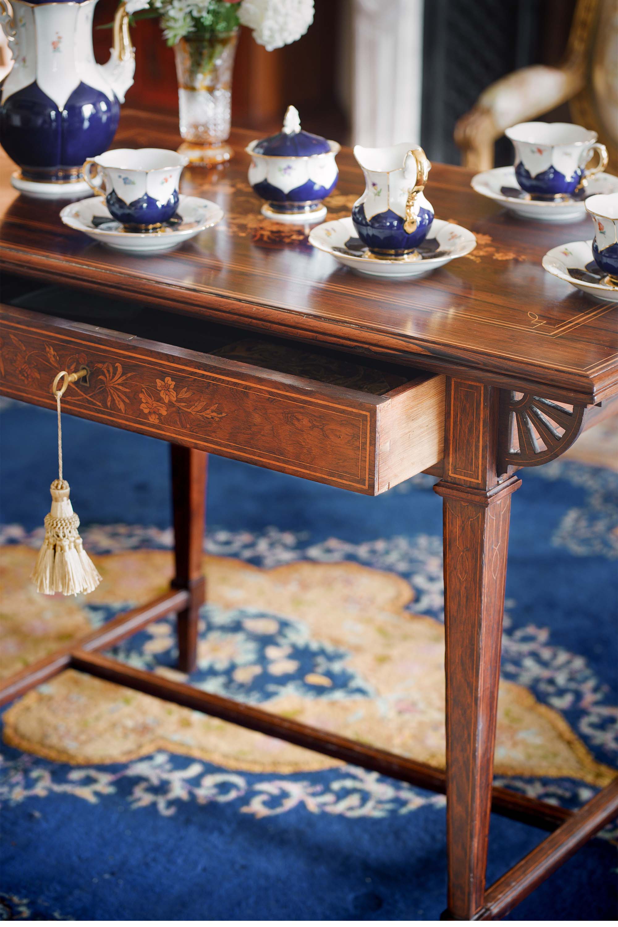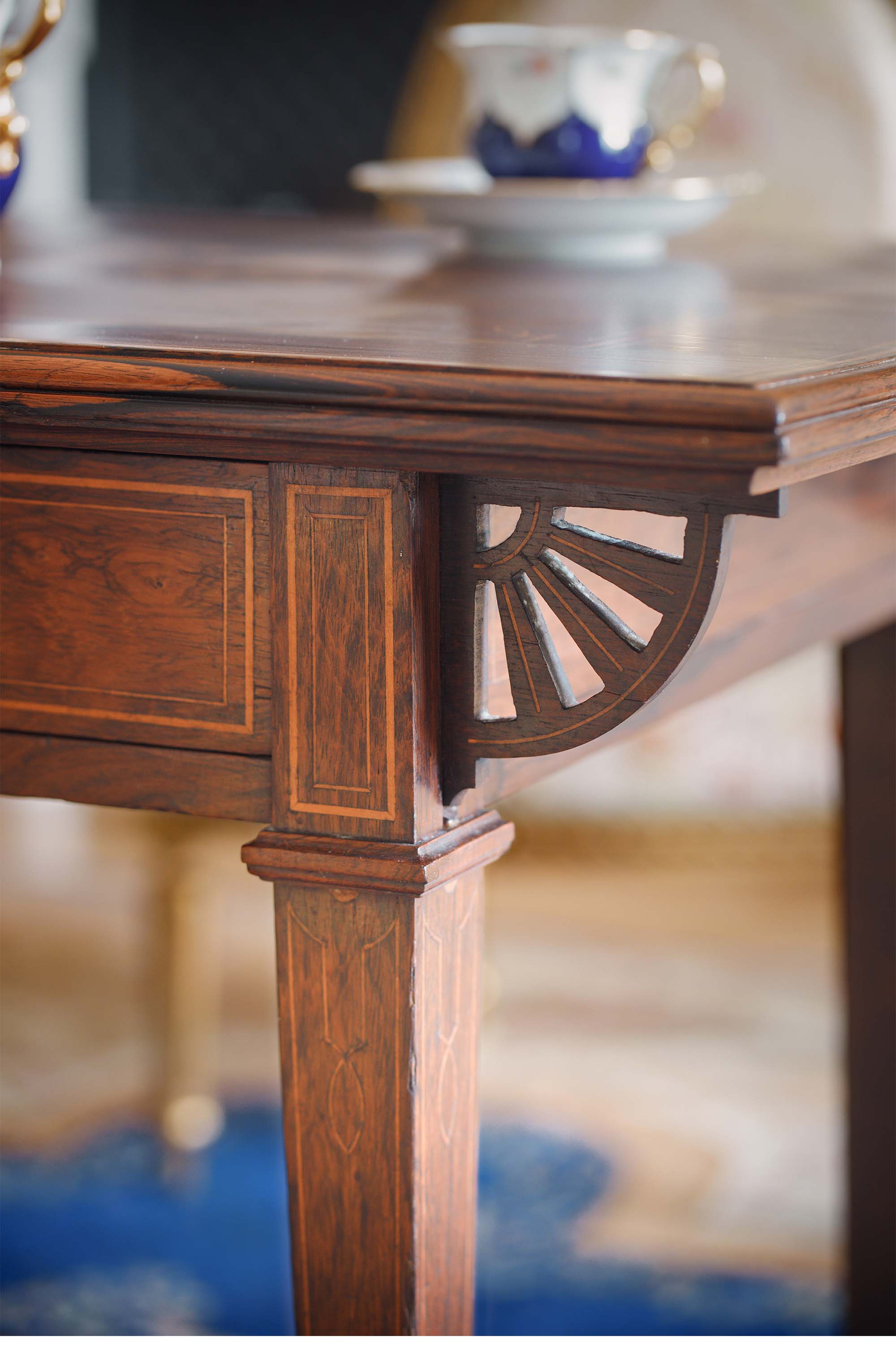 1890年代法国出品路易十六风格胡桃木精雕装饰自然繁花主题细木镶嵌边桌