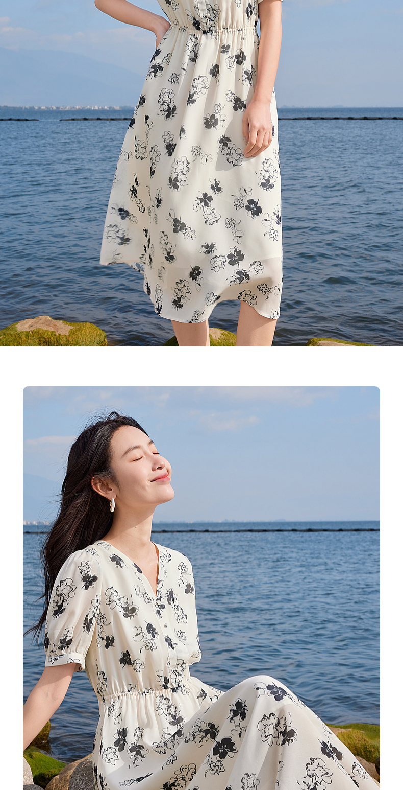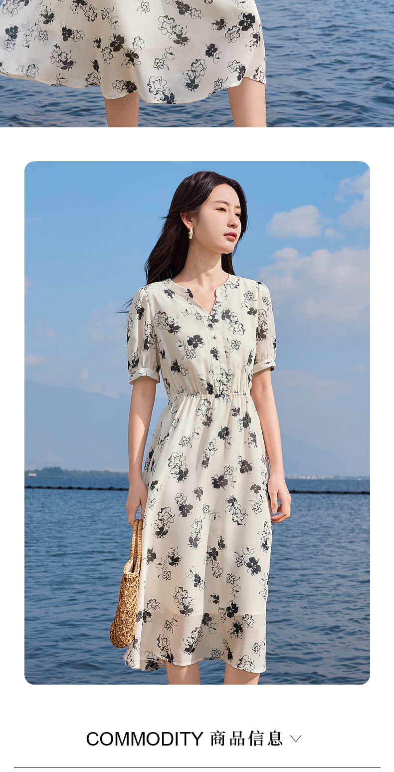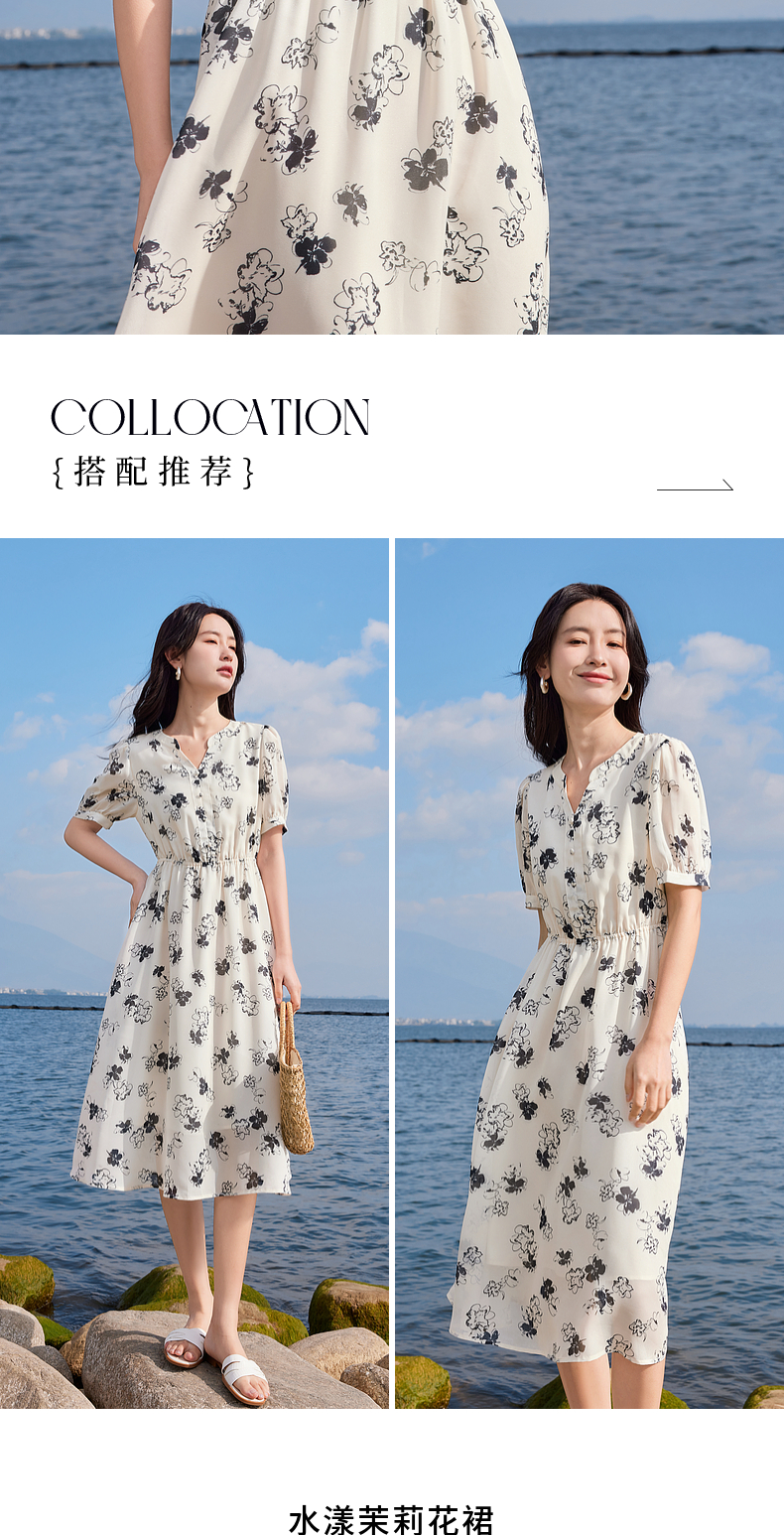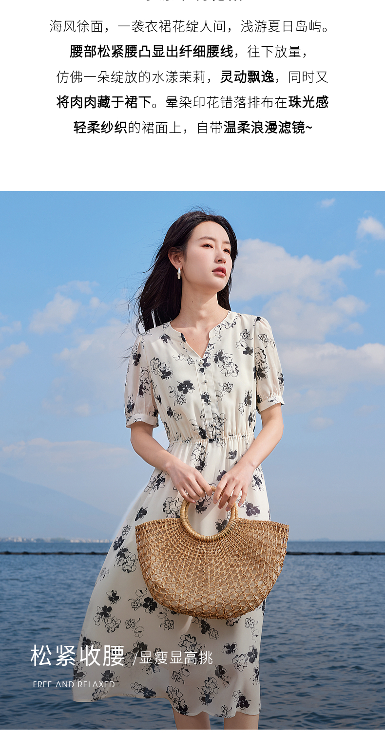 【专属特价】熙世界法式气质连衣裙2025夏季新款温柔风水墨印花碎花雪纺裙子