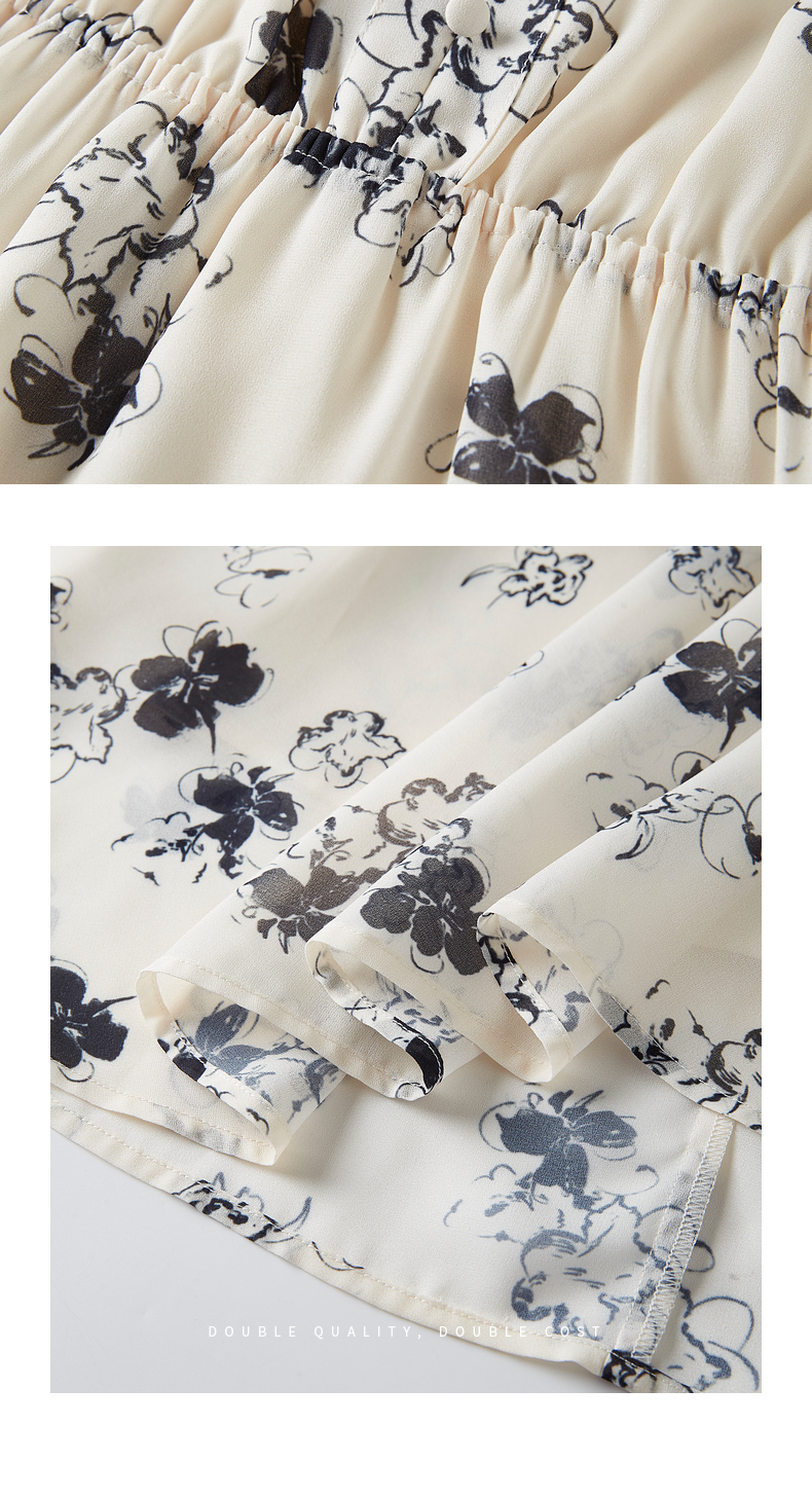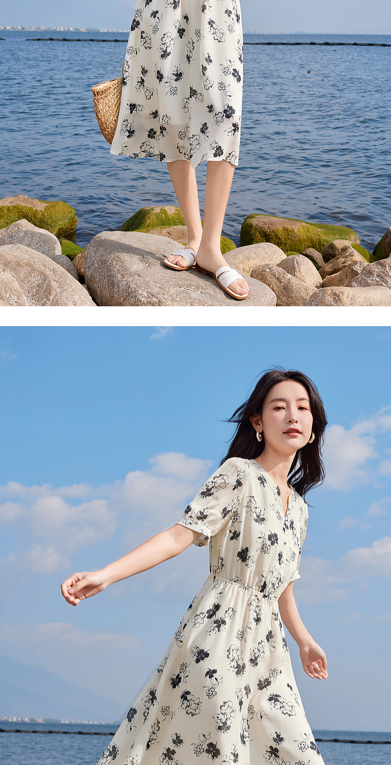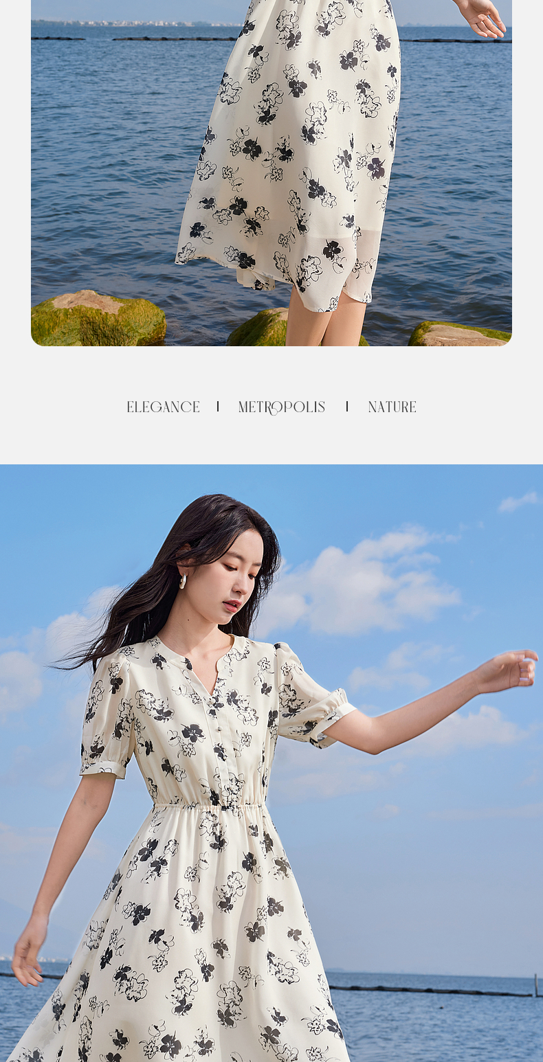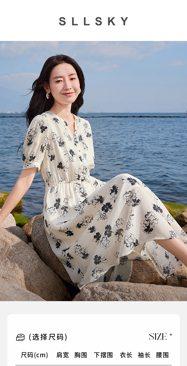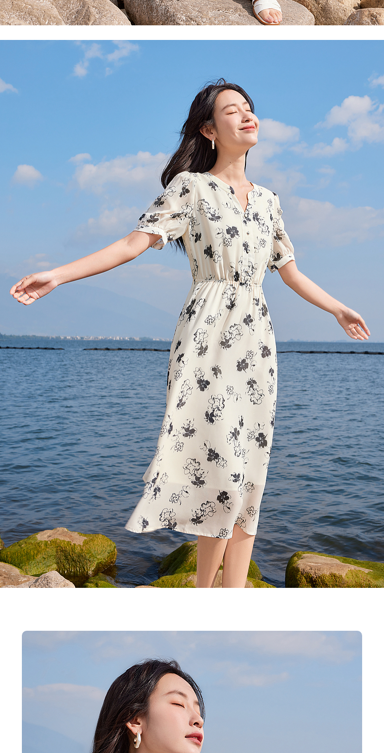 【专属特价】熙世界法式气质连衣裙2025夏季新款温柔风水墨印花碎花雪纺裙子