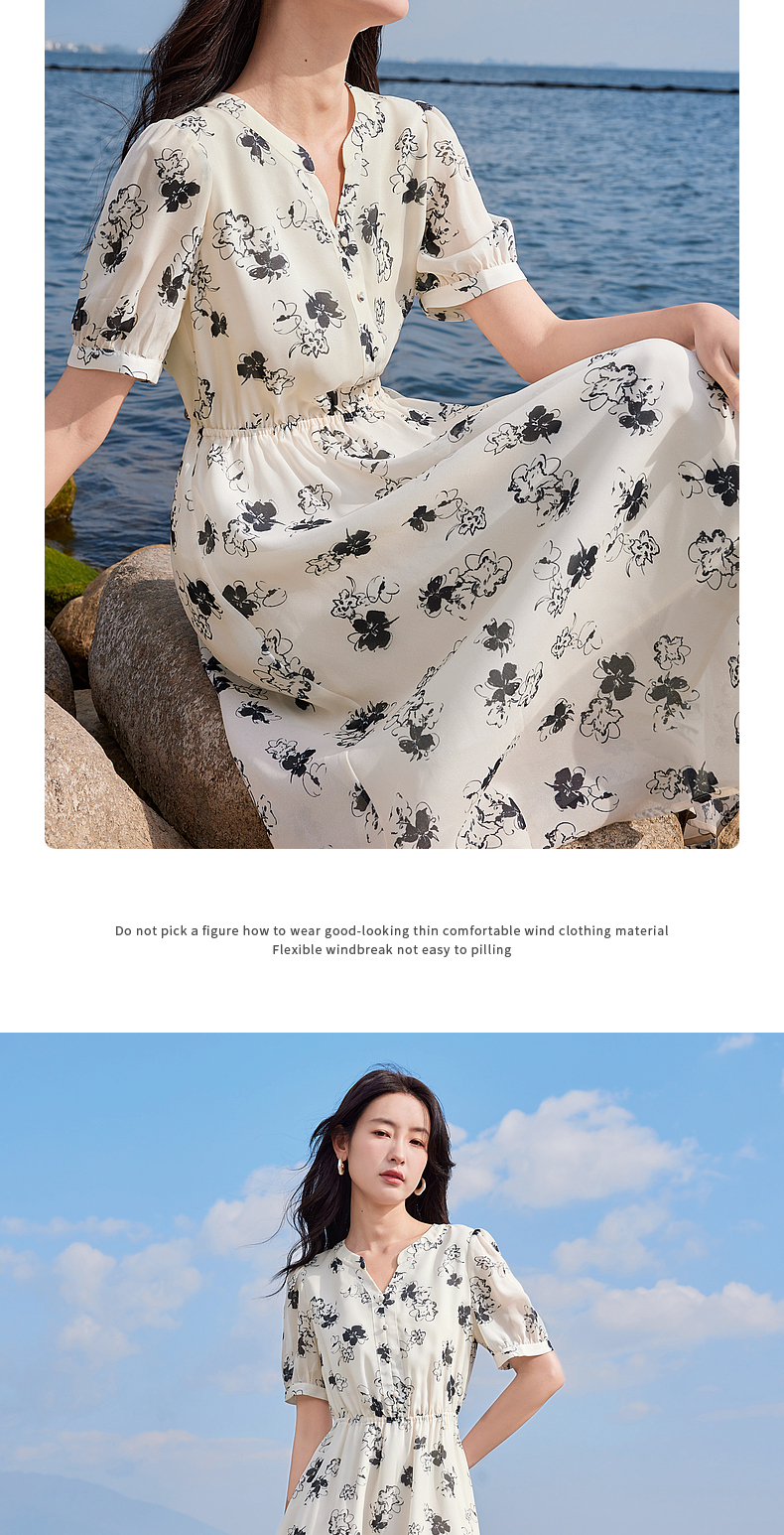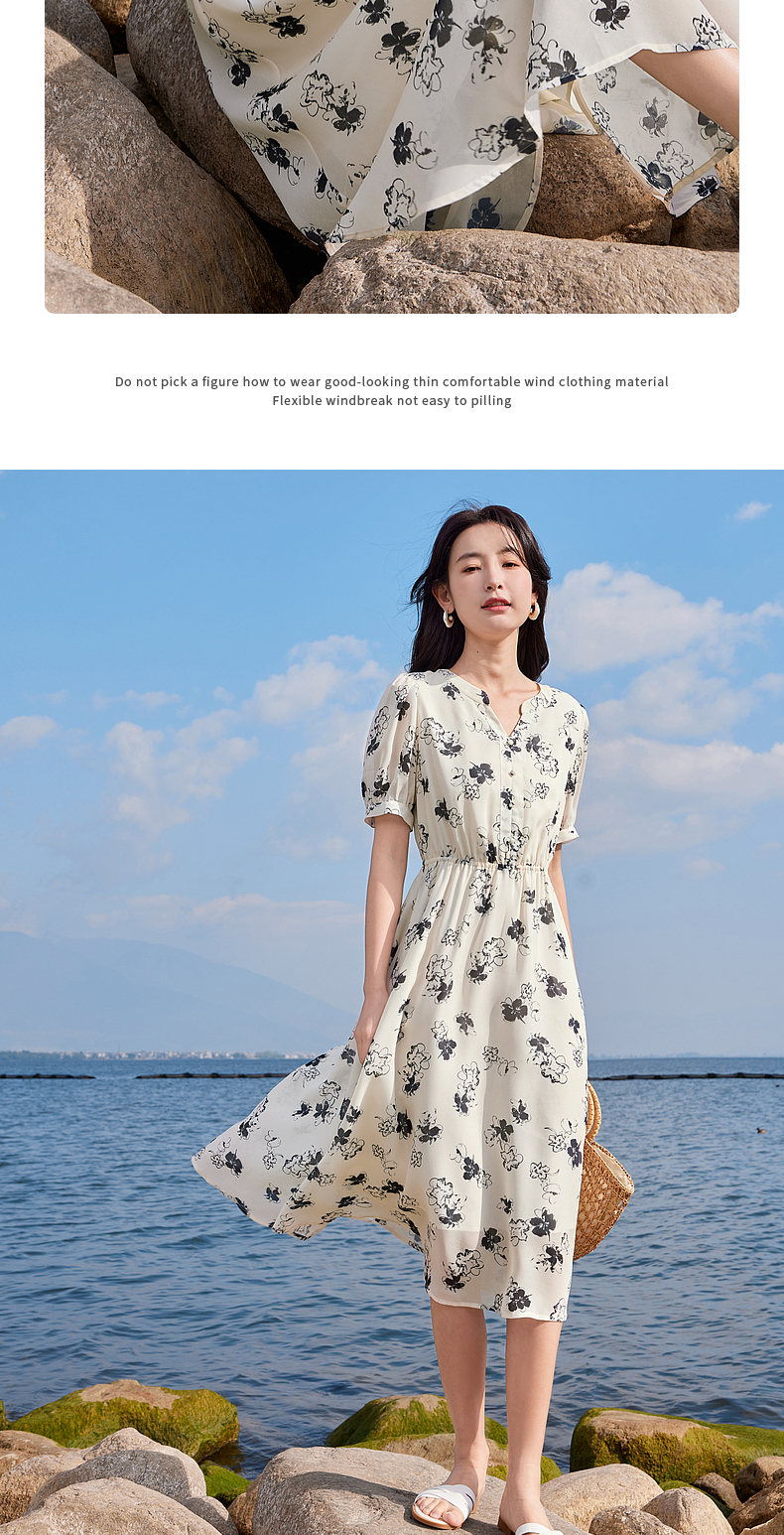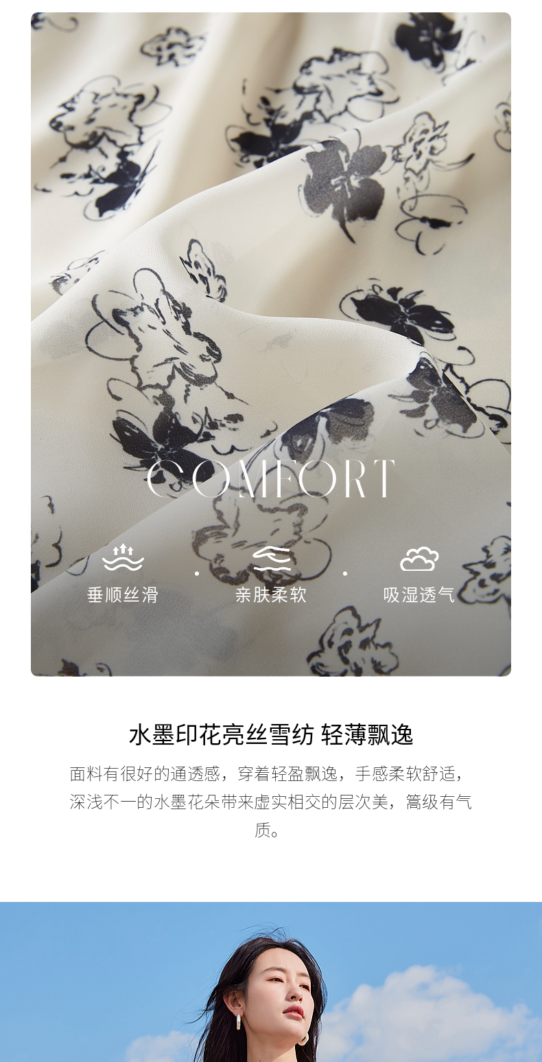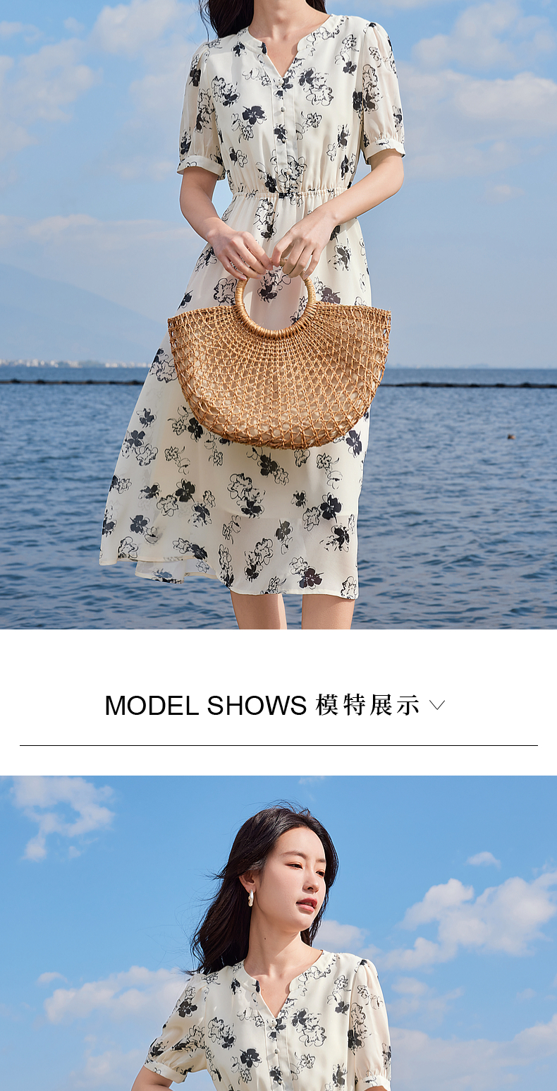 【专属特价】熙世界法式气质连衣裙2025夏季新款温柔风水墨印花碎花雪纺裙子