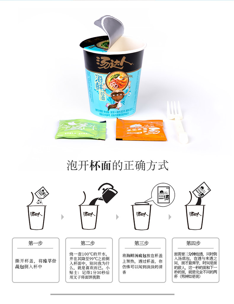 统一 方便面 汤达人 海鲜拉面 12杯 整箱装