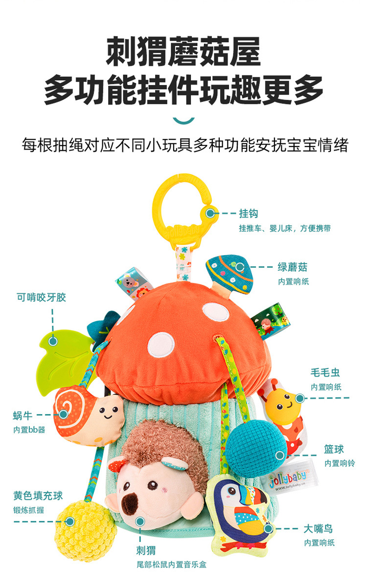 【品牌直供】jollybaby刺猬蘑菇屋抽抽乐拉震带音乐玩具