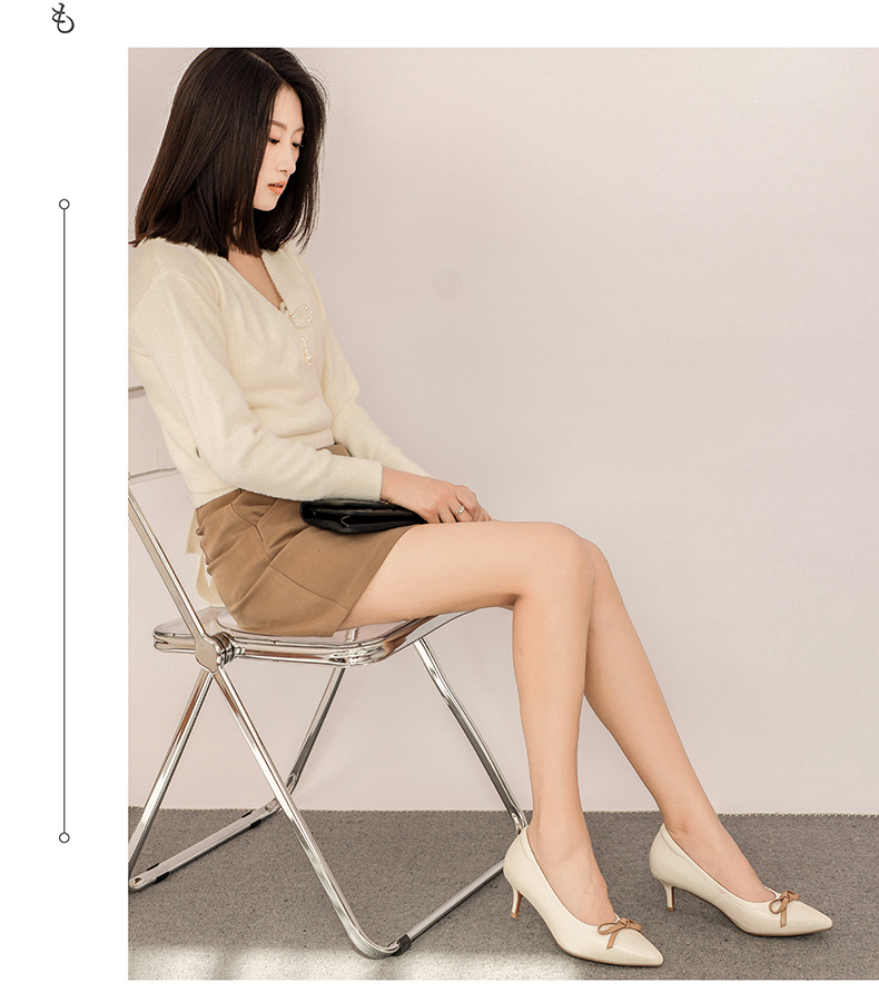 ARCHCONTACT安启美奈浅口蝴蝶结小高跟单鞋52804
