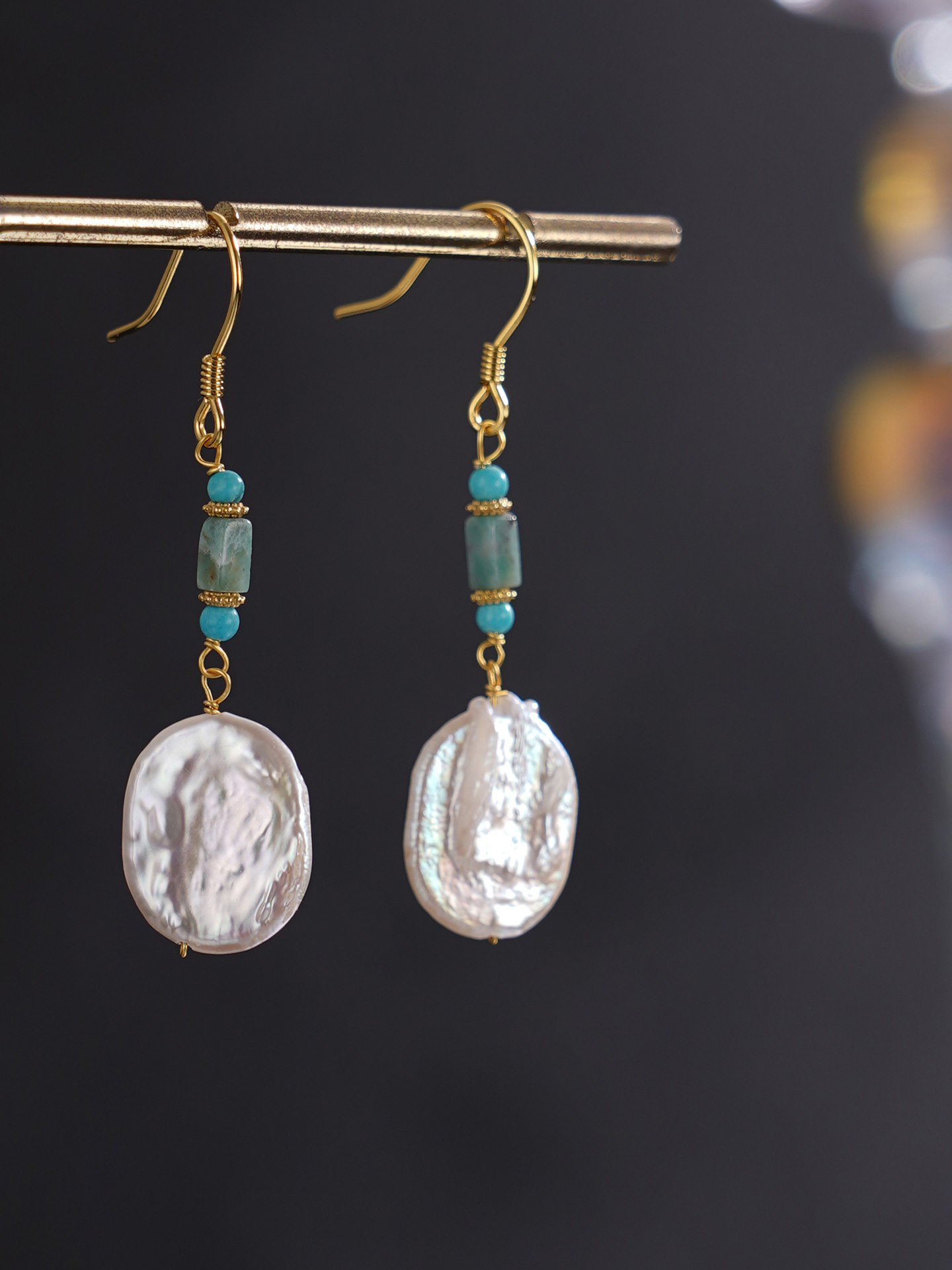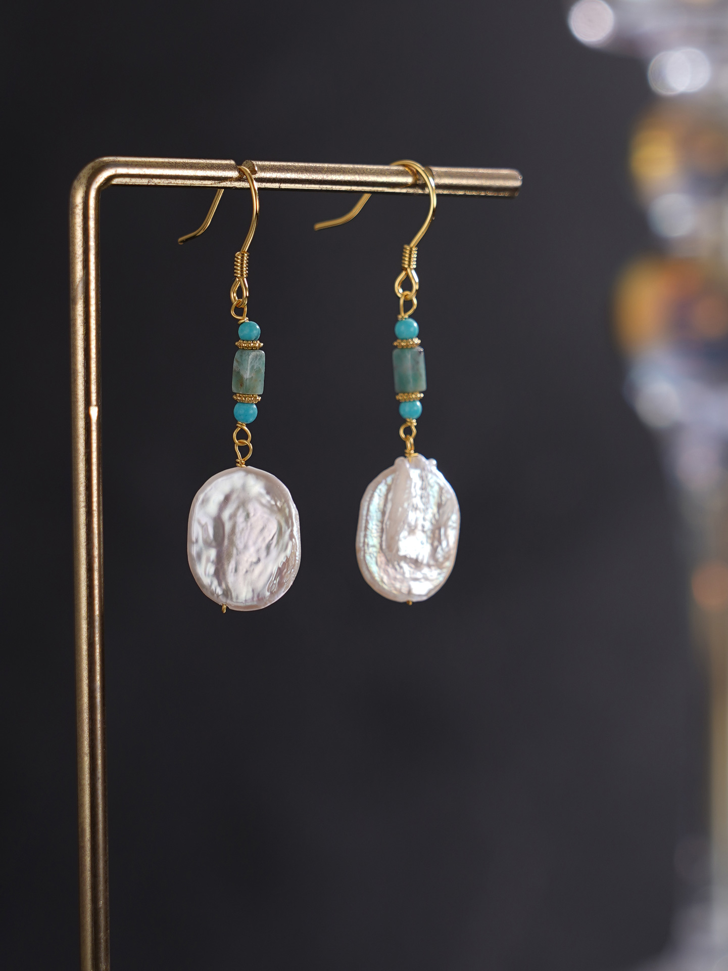 子佩集【天香御珠】银S925珍珠惜王妃耳环【SGE0320008】10*13mm珠巴洛克镀金凤凰松石2601
