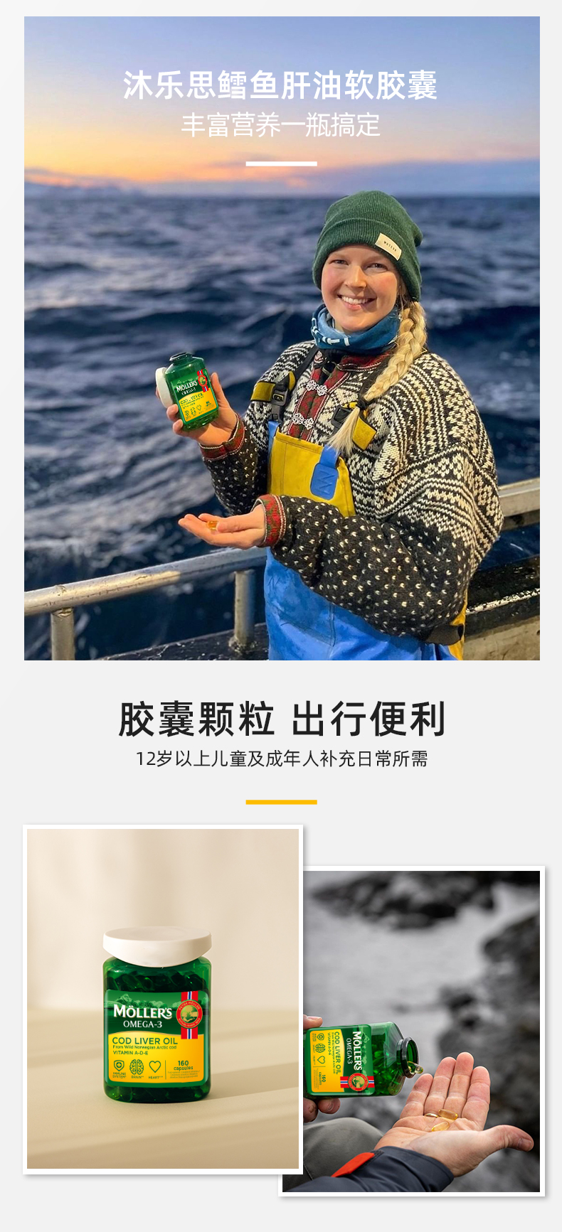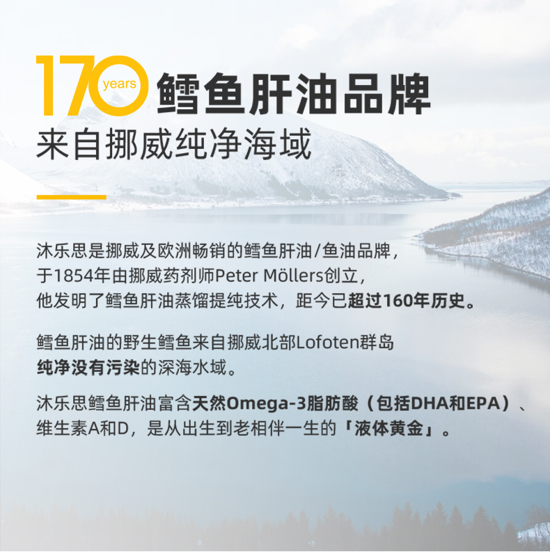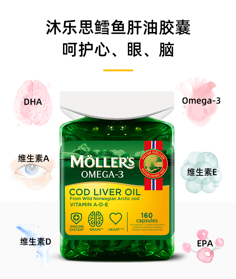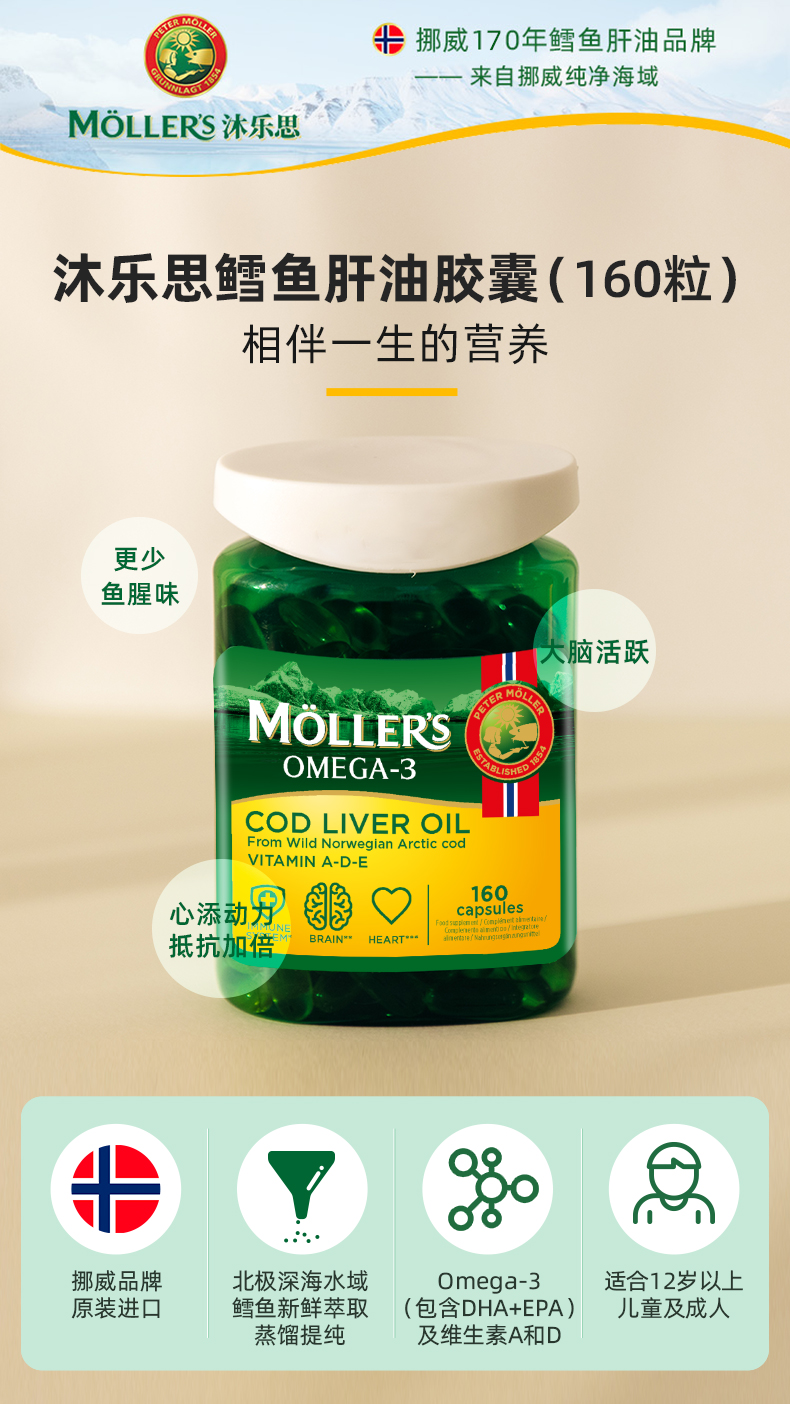 mollers沐乐思挪威进口鳕鱼肝油胶囊160粒omega3补充剂维生素ADE
