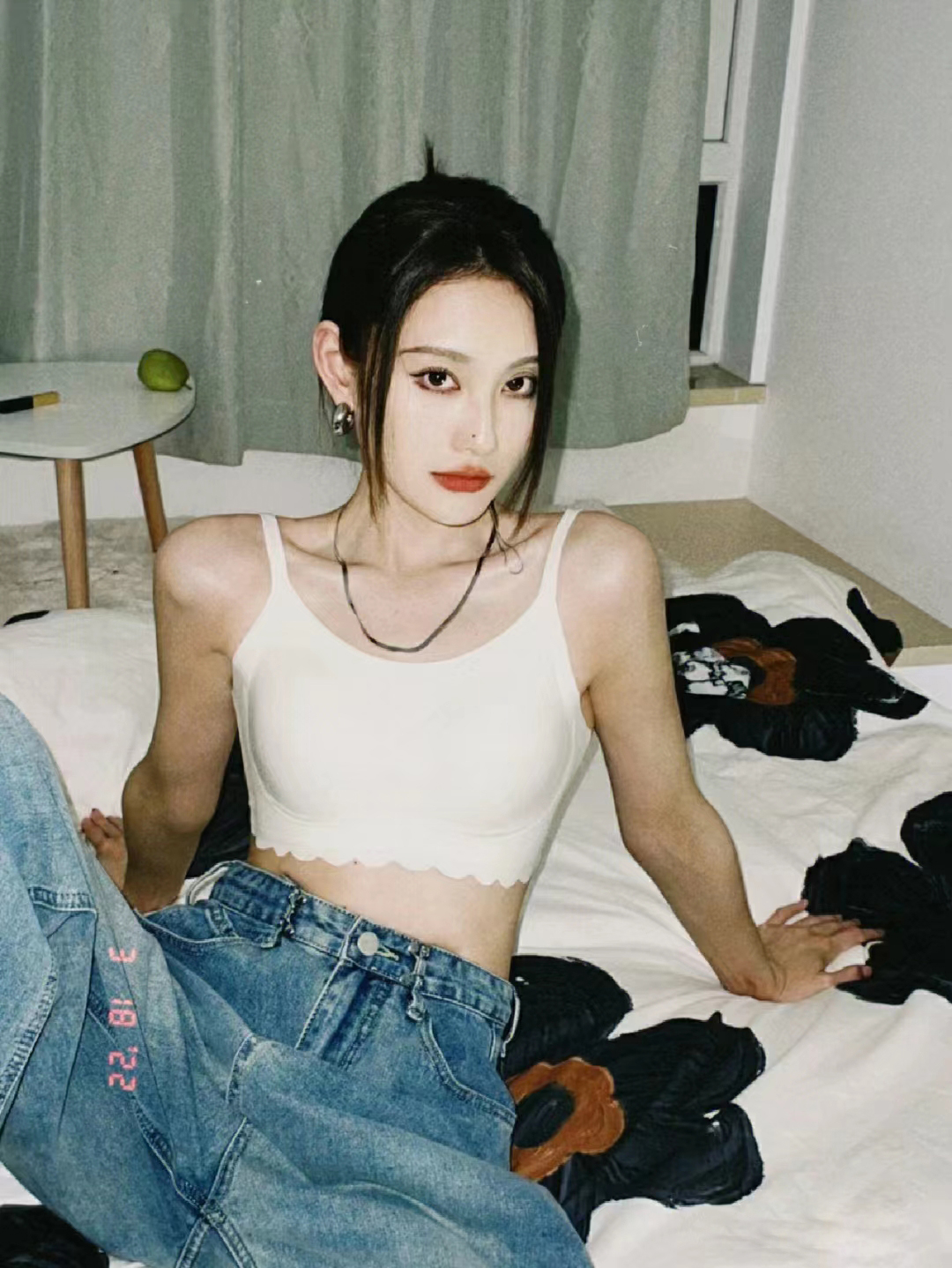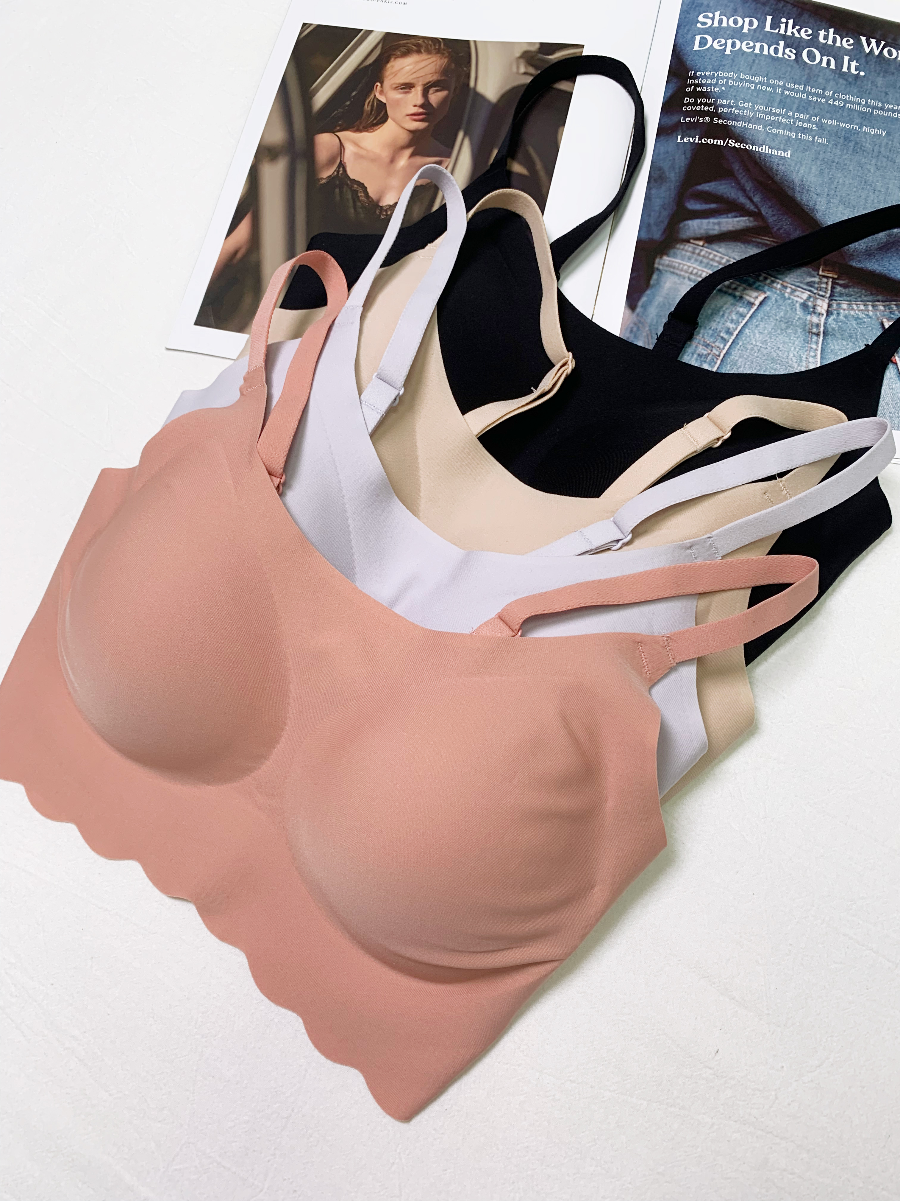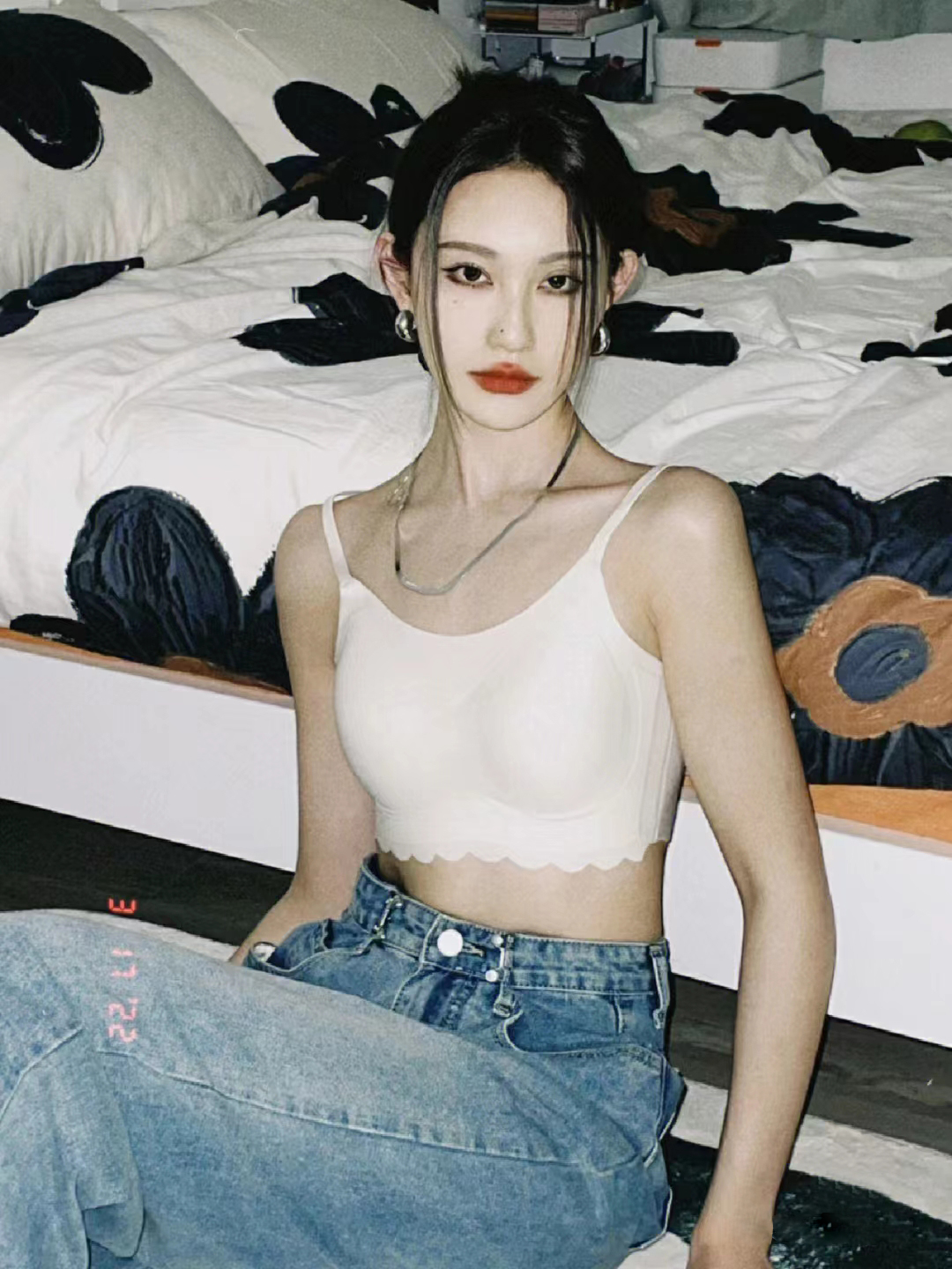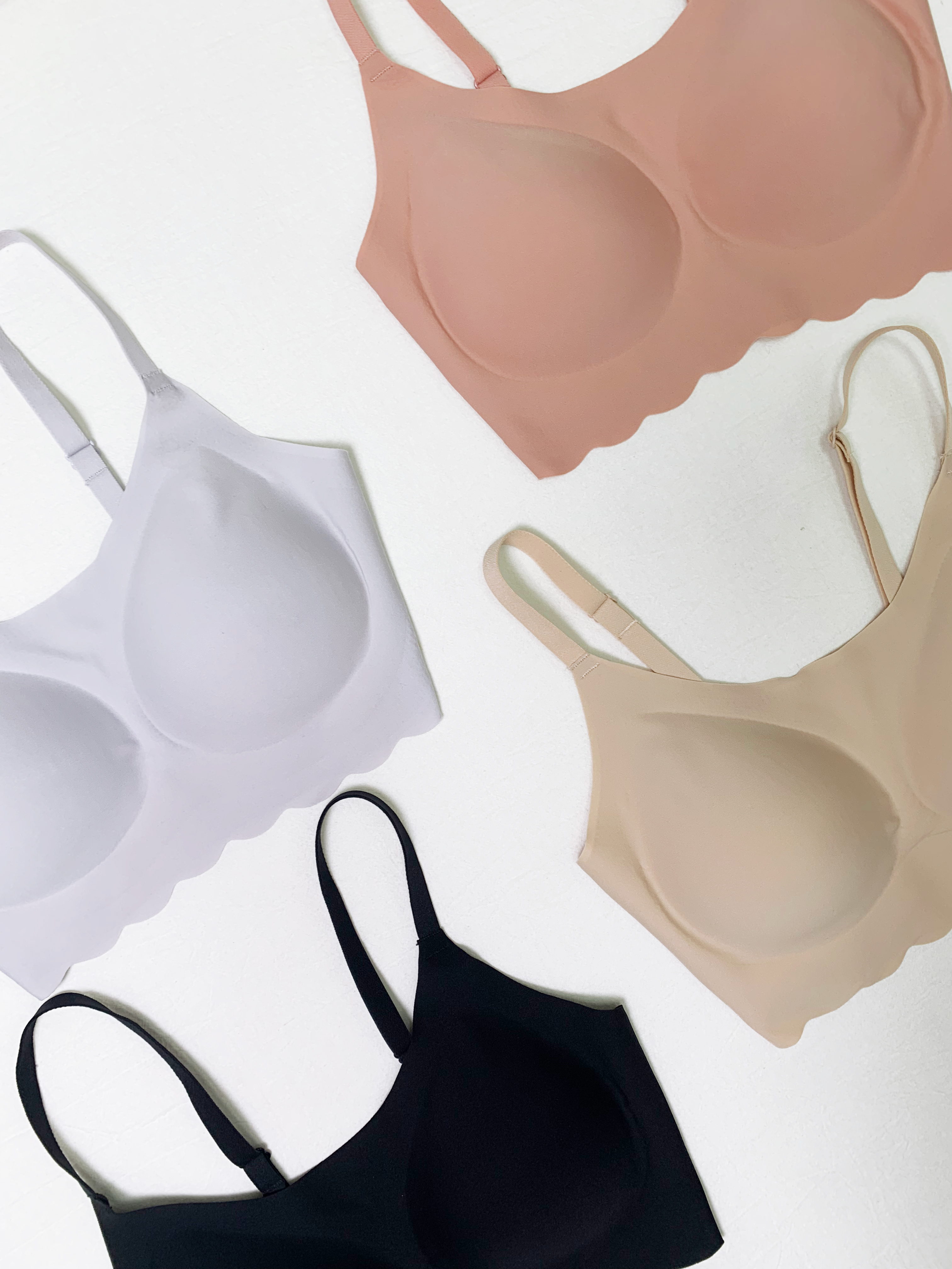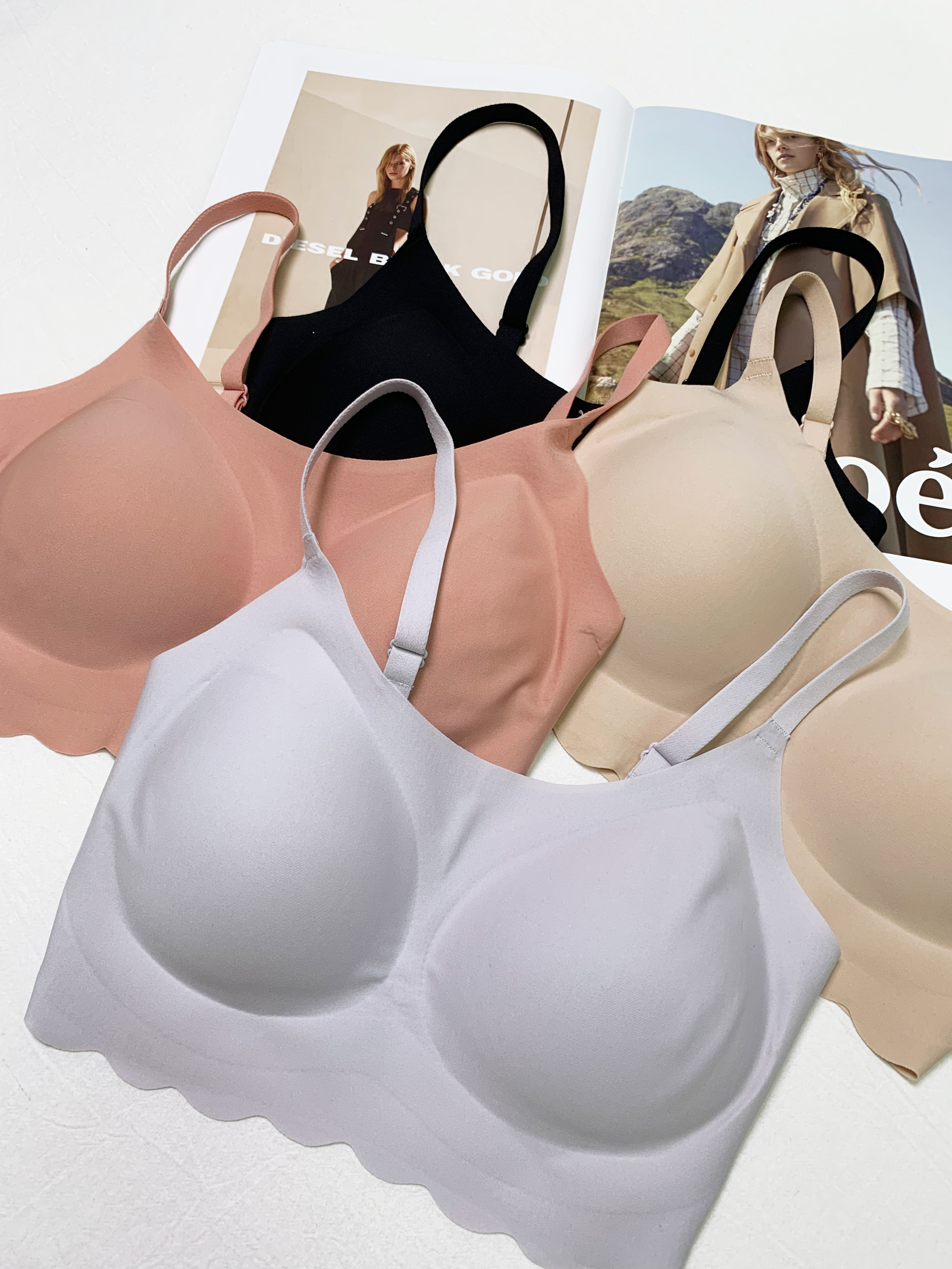 *【清仓】半醒粉底液无痕吊带文胸 AC杯通穿性感轻薄无钢圈高弹上托胸罩 B0031