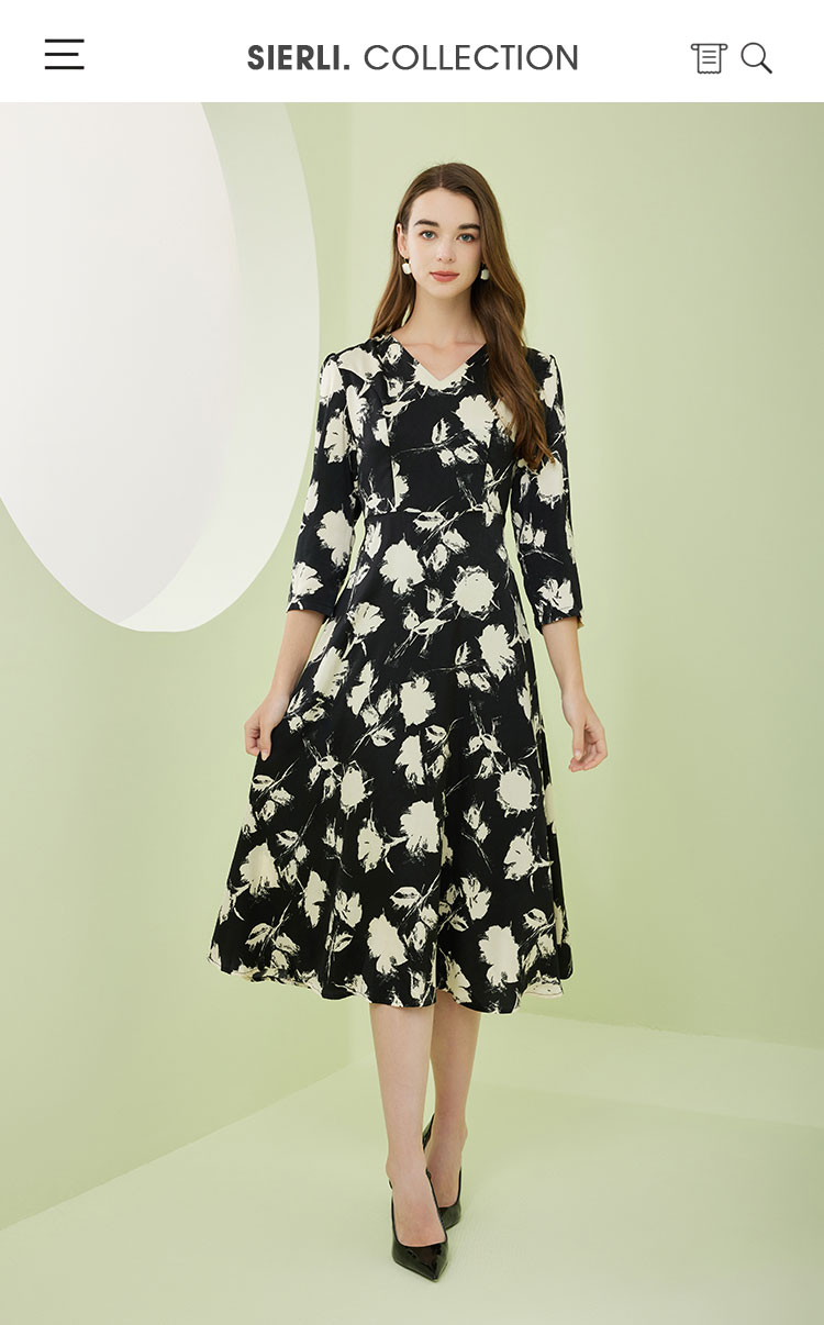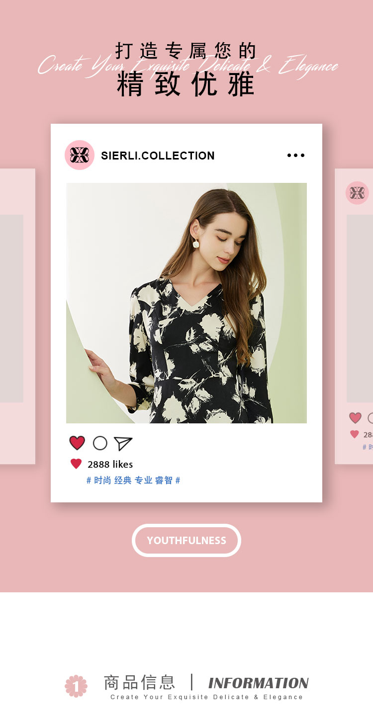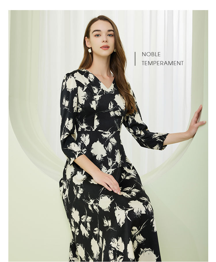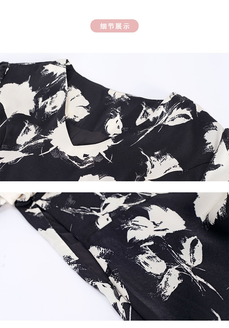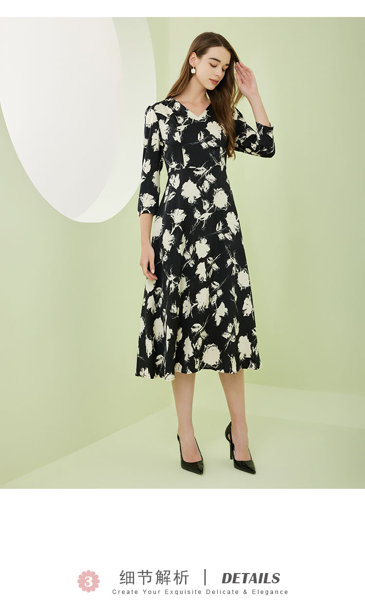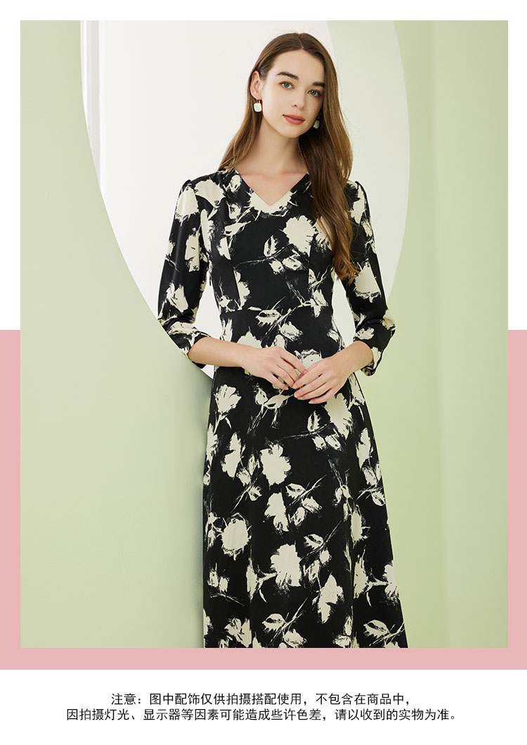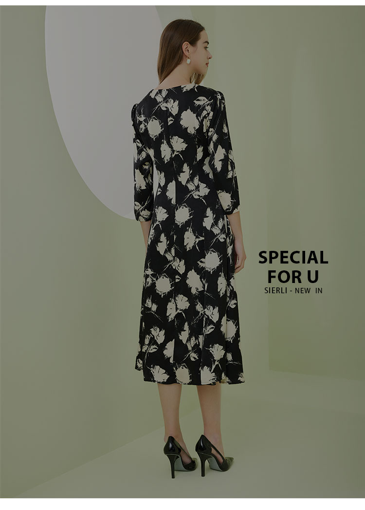 NF860斯尔丽瑟俪2023年春夏新款圆领中袖印花连衣裙