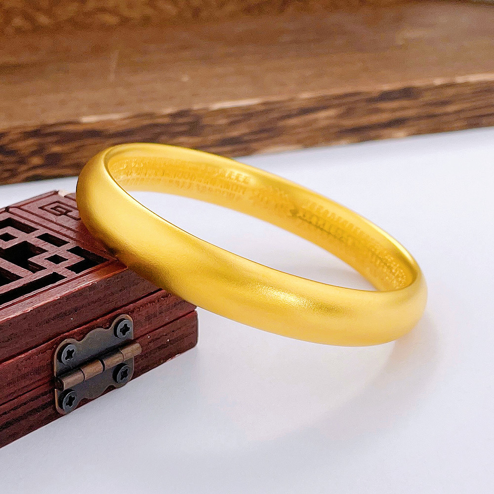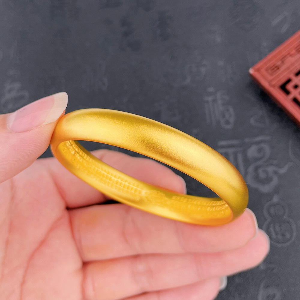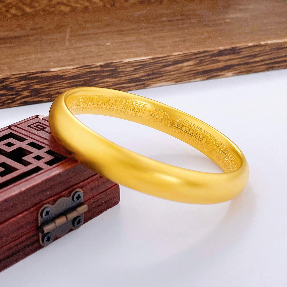 足金999.9 【油亮版本】古法空心固口外光内莲花心经手镯泥鳅背手镯(面宽约9.7-10.1mm,厚度约4.9mm)(AIGFSZ00642)预售产品下单后不退款不退货不换货不补差价)