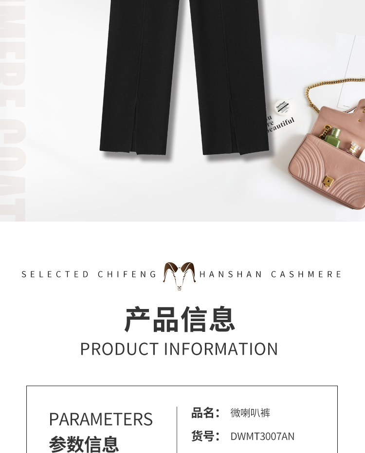 东黎 • 丝绒款女士春夏微喇叭裤前开叉阔腿裤 3007