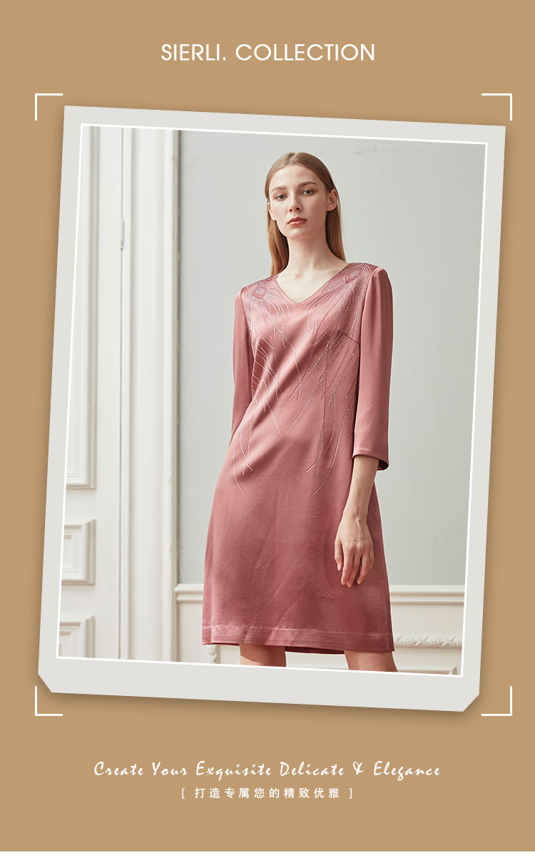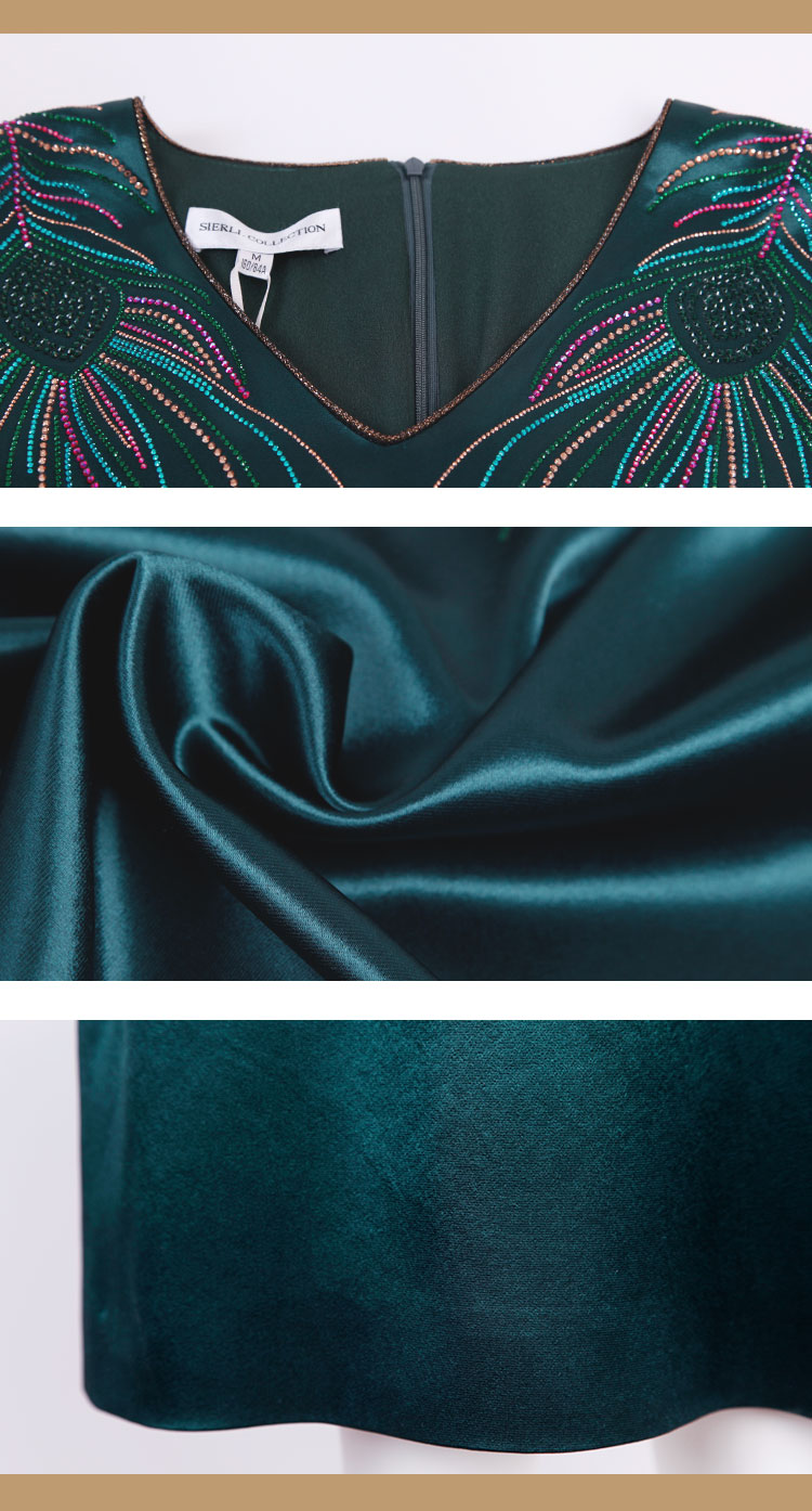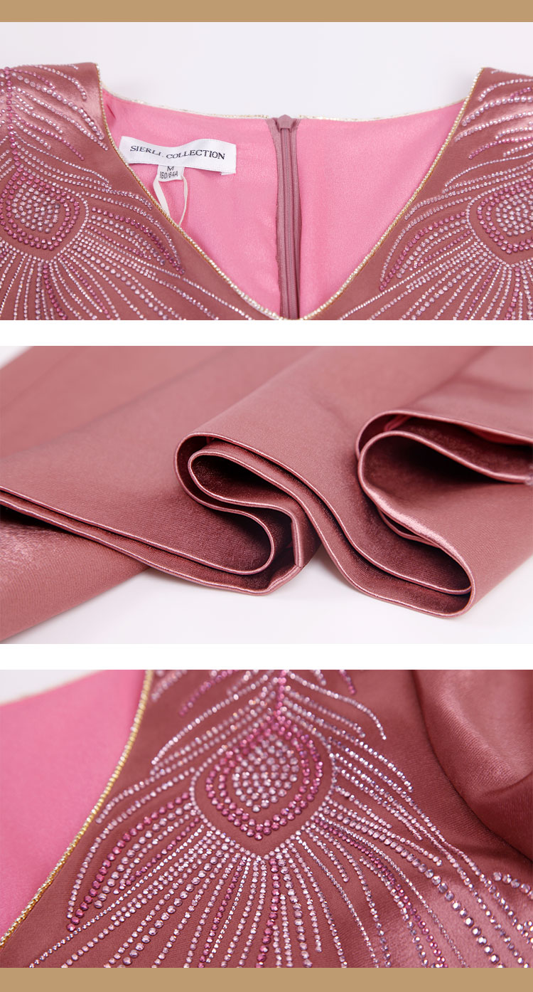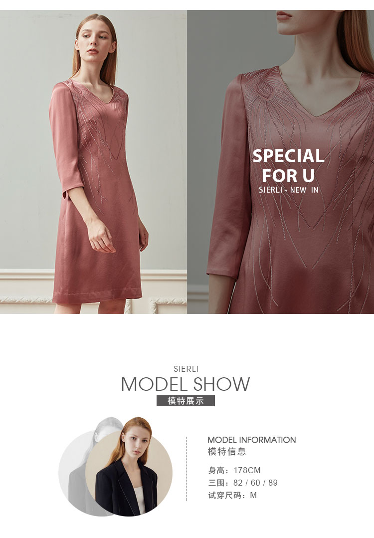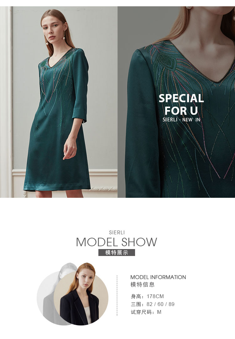 QE87B斯尔丽瑟俪2021年春季上新V领肩部烫钻短款连衣裙