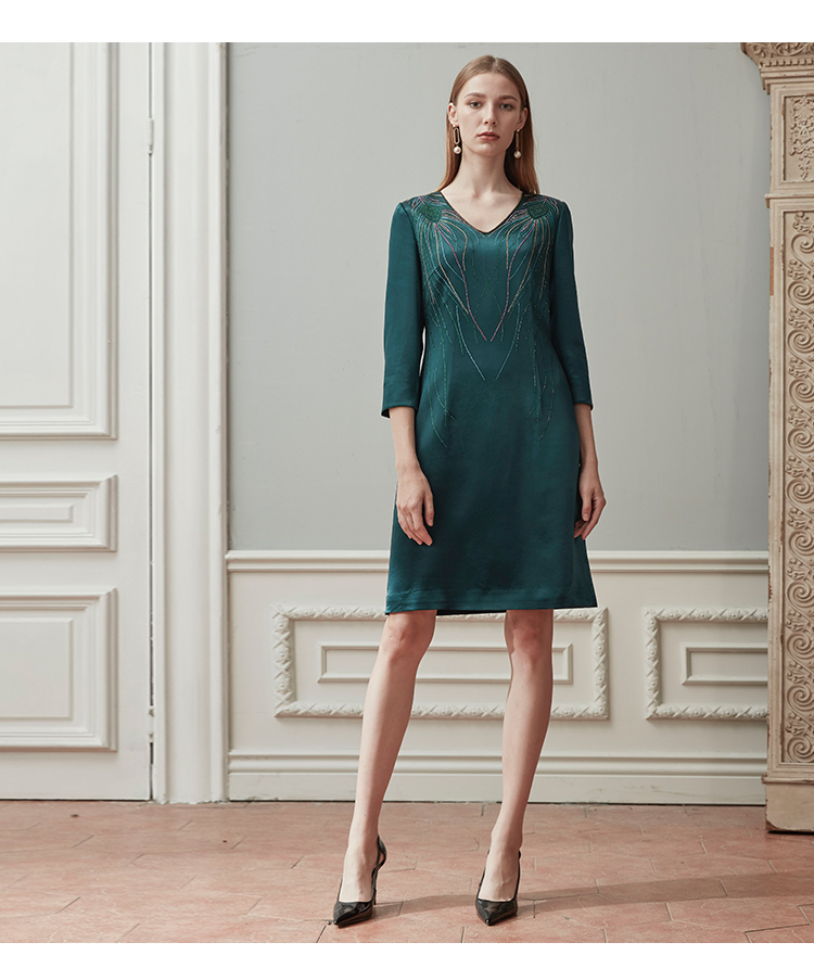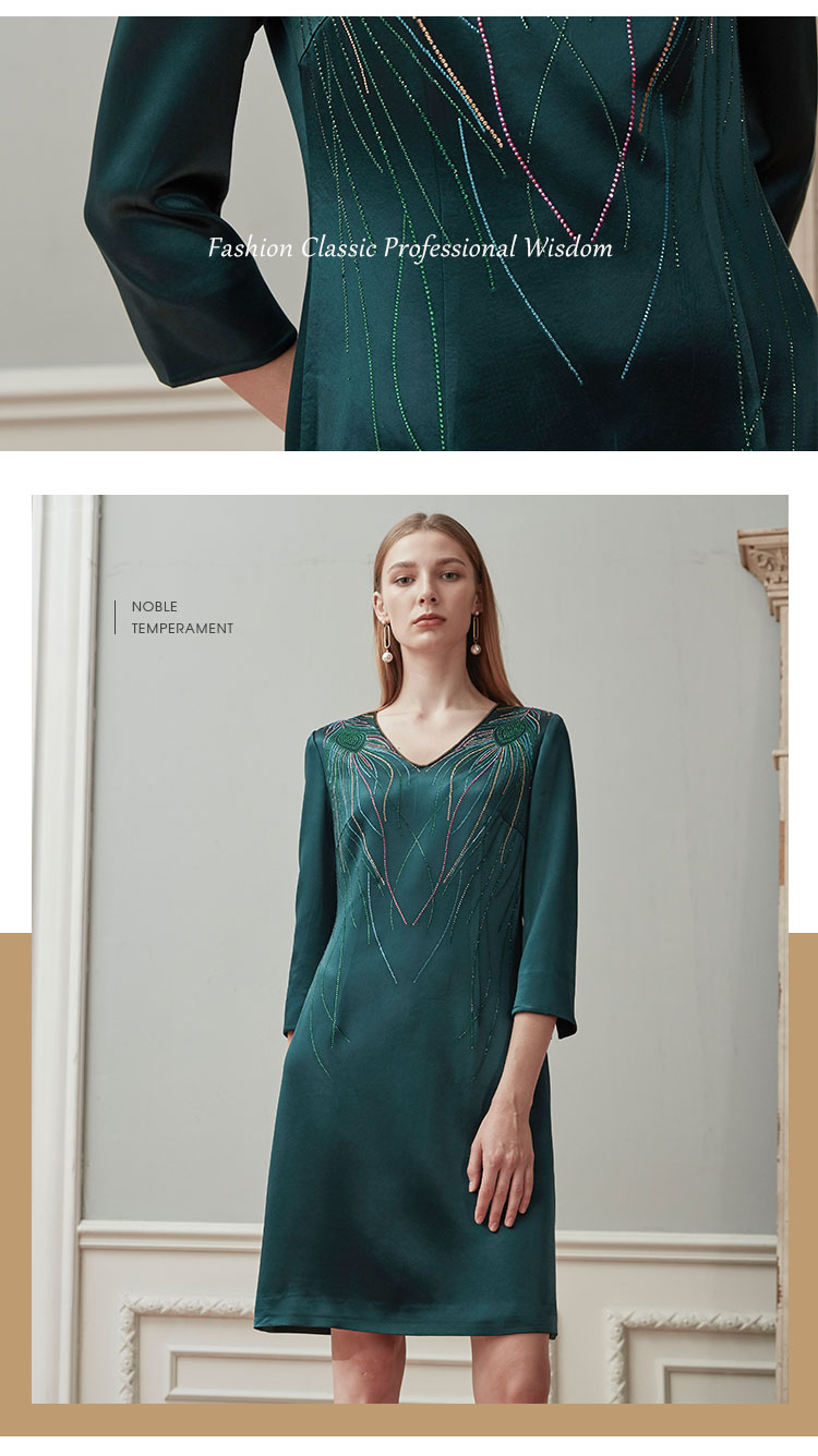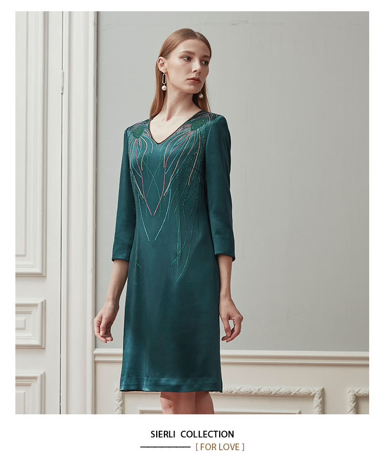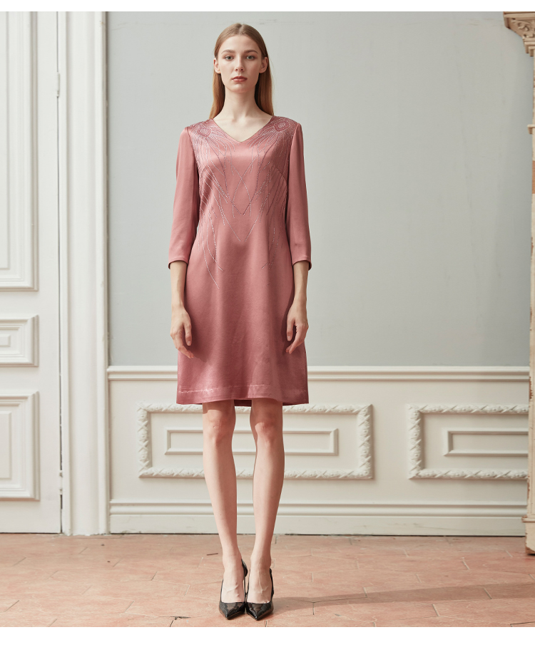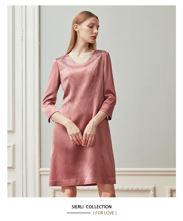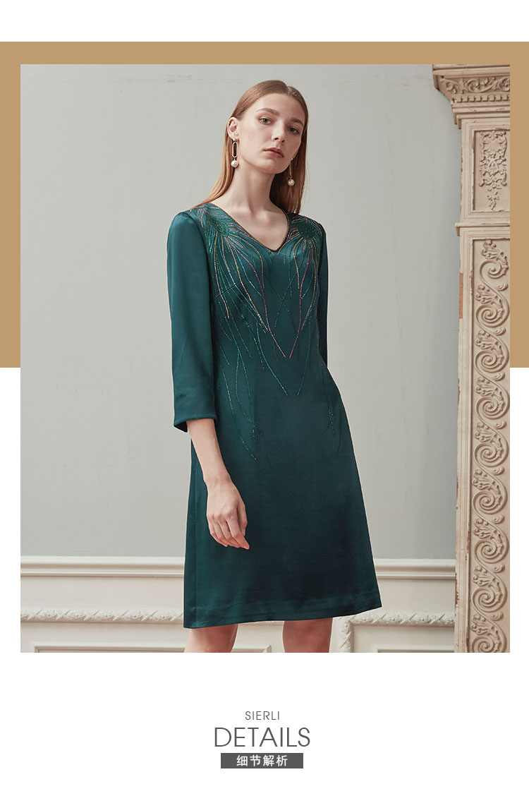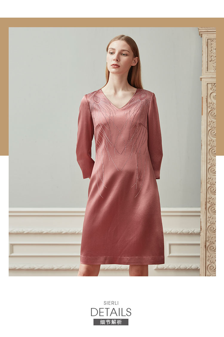 QE87B斯尔丽瑟俪2021年春季上新V领肩部烫钻短款连衣裙