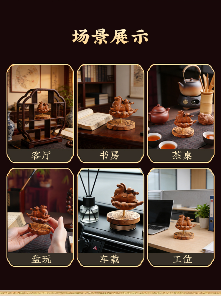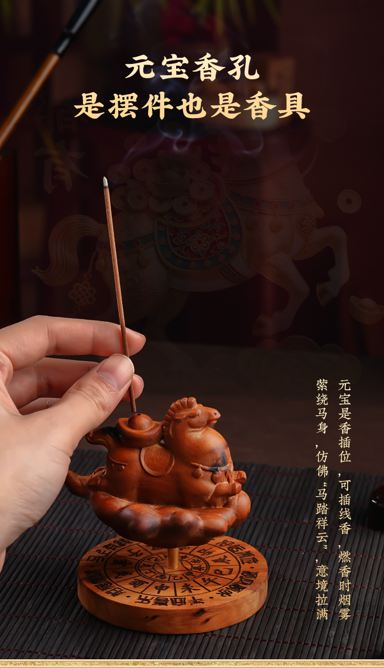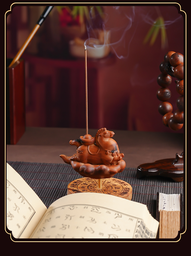 新款马上有💰线香插熏香具旋转摆件雷击木香托桌摆装饰