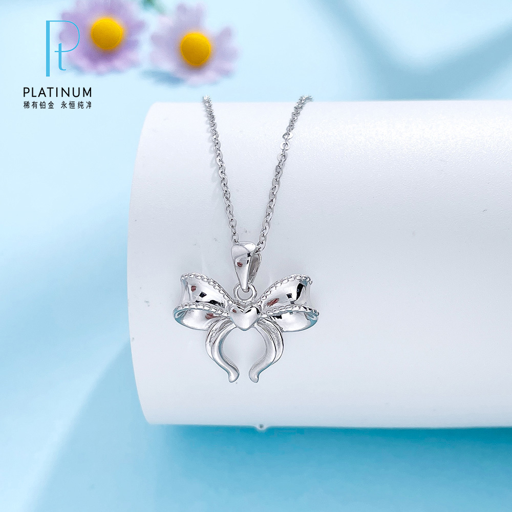 【限时8.8折】【线上铂金馆】PT950 #在逃公主 【国际铂金协会】铂金镂空在逃公主蝴蝶结吊坠(不含链)(BDZ00185)预售产品下单后不退款不退货不换货不补差价)