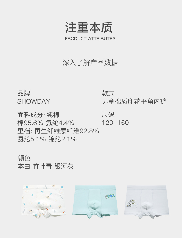 【满3条/39元】【秀黛】男童棉质印花平角内裤男儿童内裤【1条】W5445002T【门店同款】【内裤非质量问题不退换,介意勿拍】