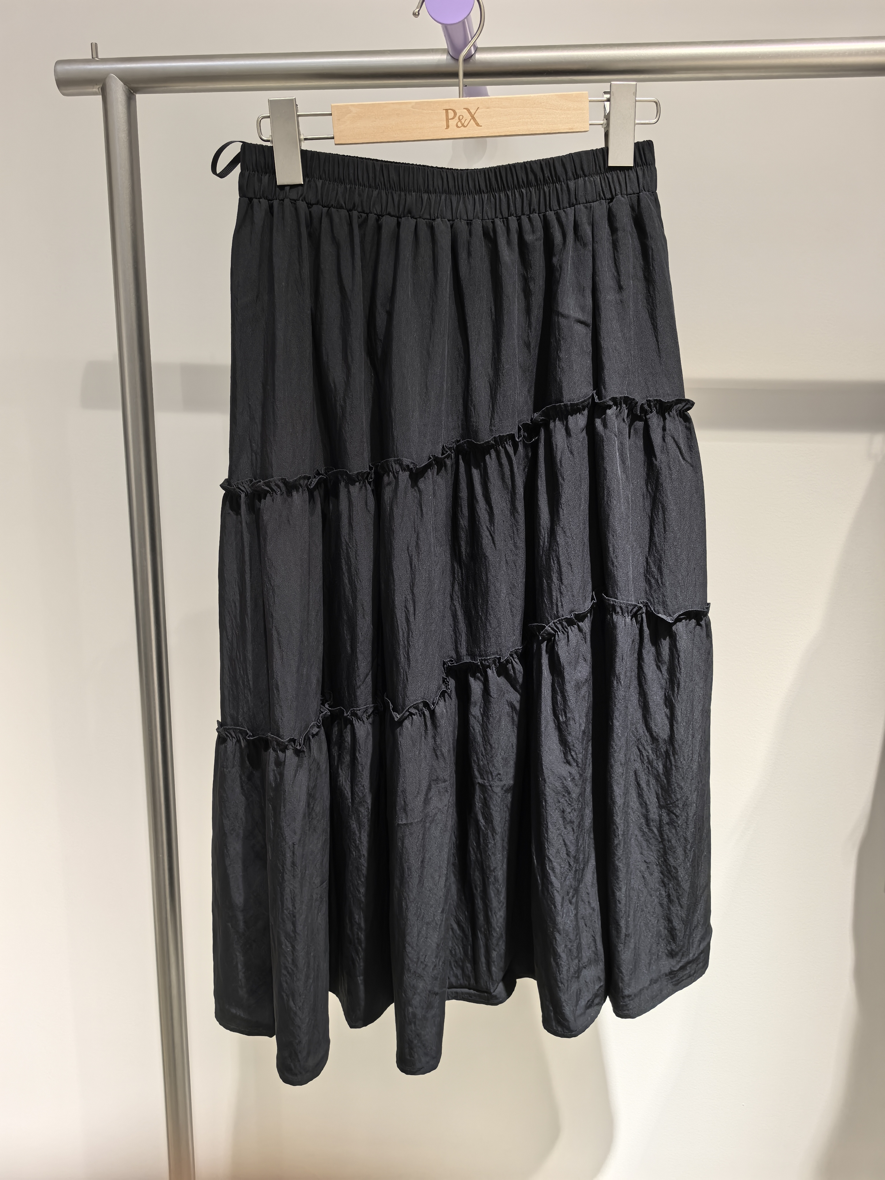 P&X设计师女装夏季新款高腰显瘦梭织半身长裙A字裙825207339 黑色