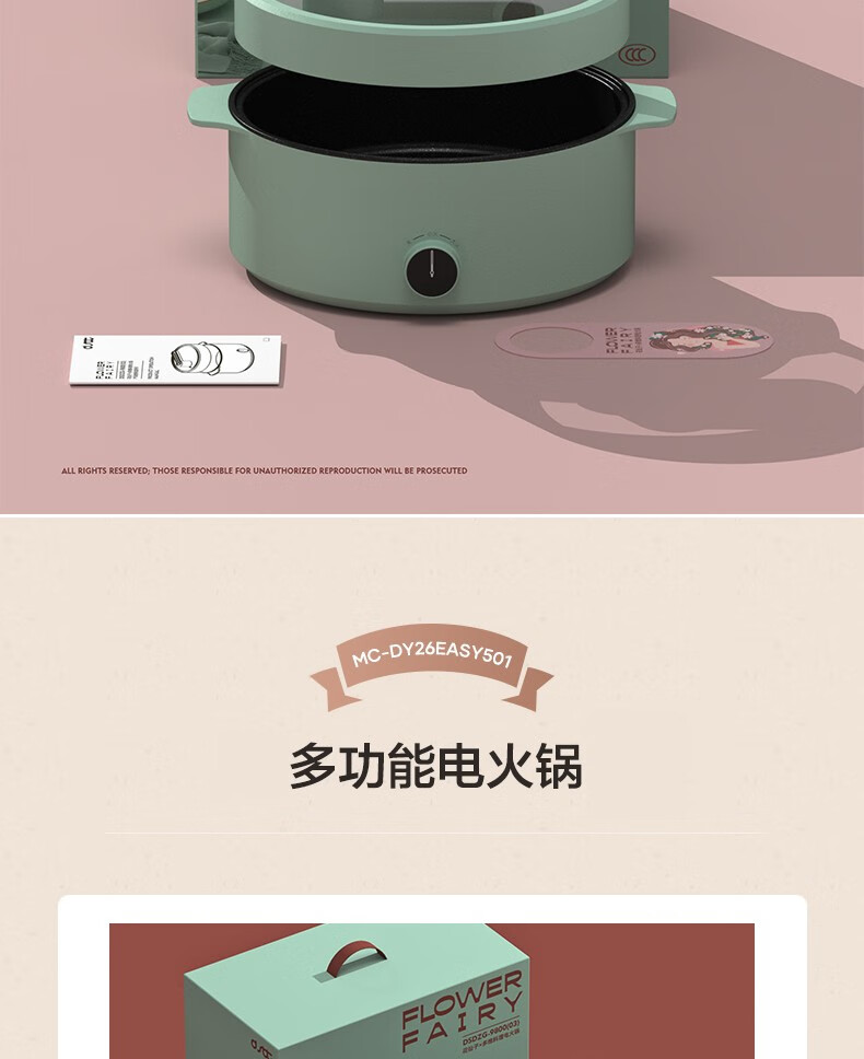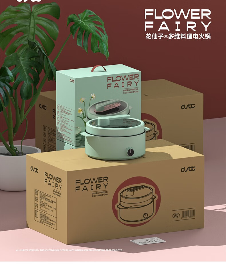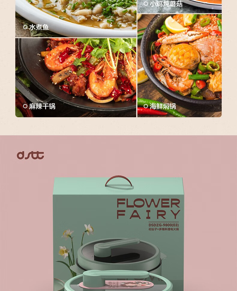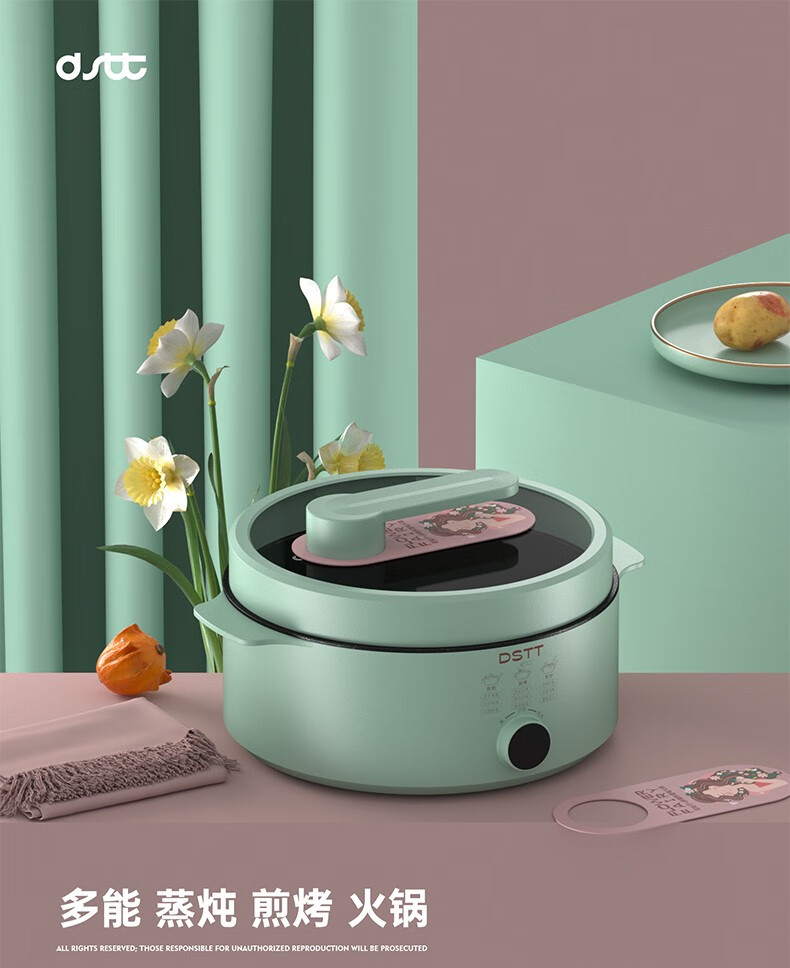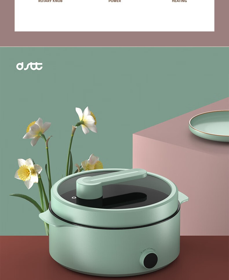 都市太太(DStt)_都市太太花仙子电火锅锅家用电锅专用煎炒菜煮锅炒锅多功能涮烤一体电热锅_草绿色