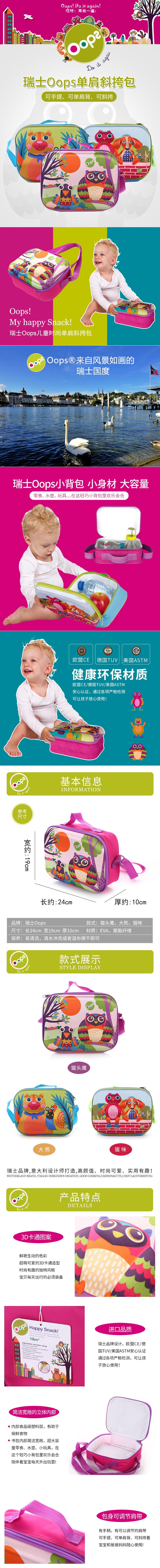 瑞士Oops 儿童时尚单肩斜挎包 潮宝宝男女童幼儿园小书包 小公主小王子休闲包 猫咪