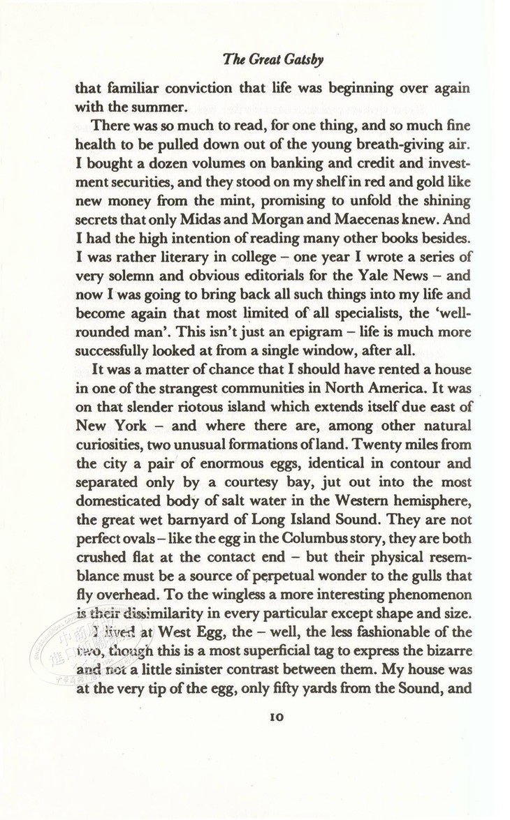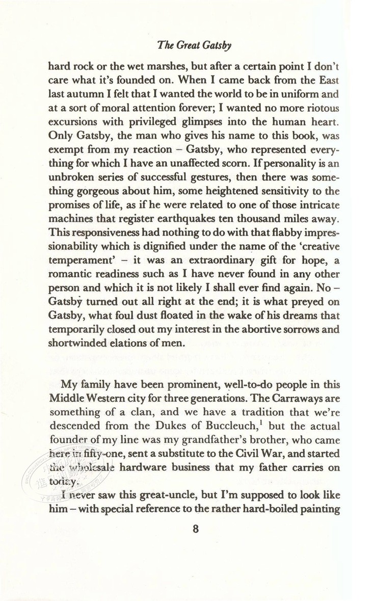 《了不起的盖茨比》的作者被誉为“爵士时代”的“桂冠诗人”和“编年史家”,20世纪百部英语小说第二名。