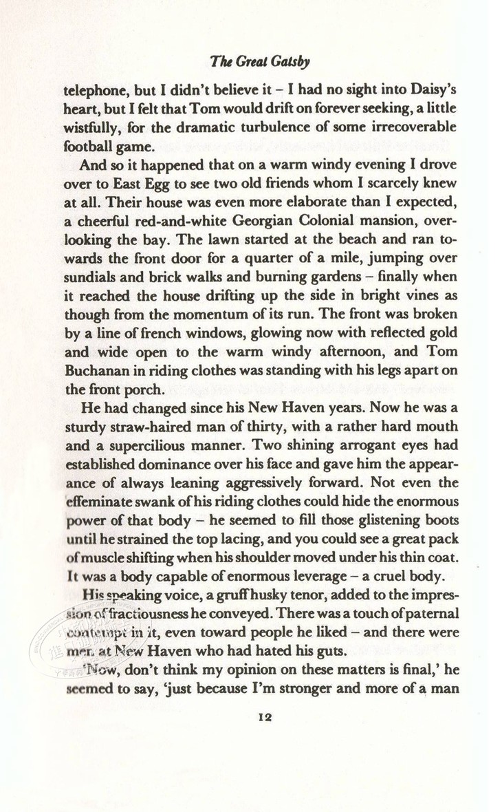 《了不起的盖茨比》是自亨利·詹姆斯以来美国小说迈出的首步,因为菲茨杰拉德在其中描写了宏大、喧嚣、轻率和寻欢的场景,凡此种种,曾风靡一时。