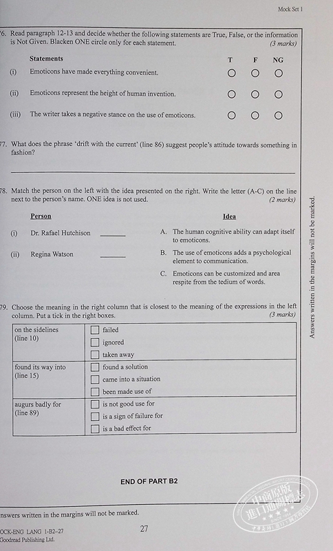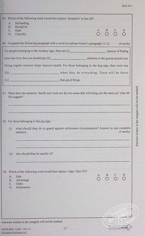 试题的格式和类型紧扣至新的香港中学文凭考试试卷,并附有一本单独的小册子,介绍应用于往届试卷分析的答题技巧