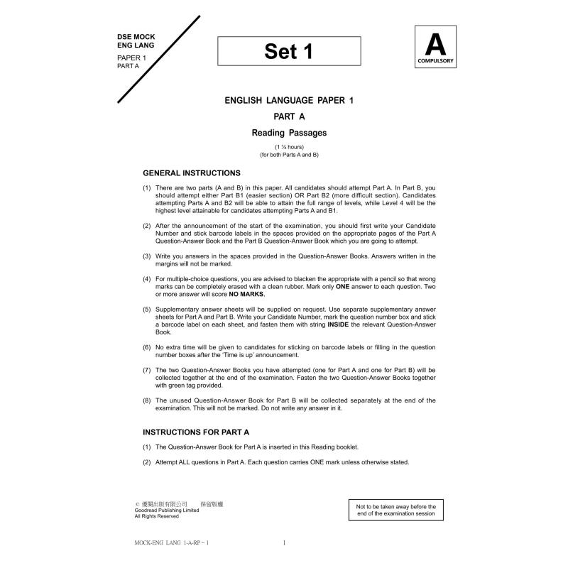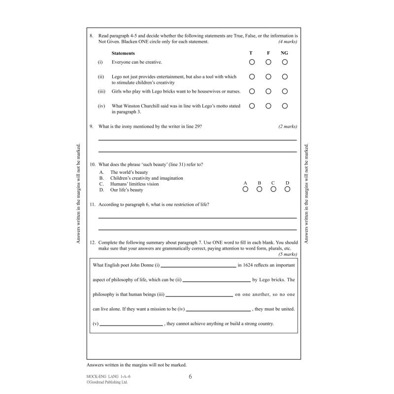 Top Grade 香港中学文凭考试英国语文科试卷 1 (阅读) 旨在提升学生的英语水平,以应付香港中学文凭考试。