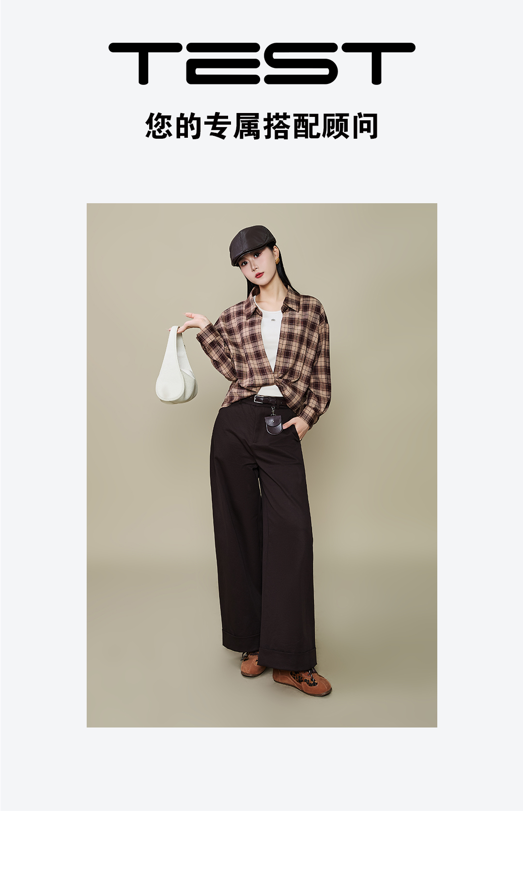 秋上新简约时尚深咖色阔腿休闲裤3253045 商品图4