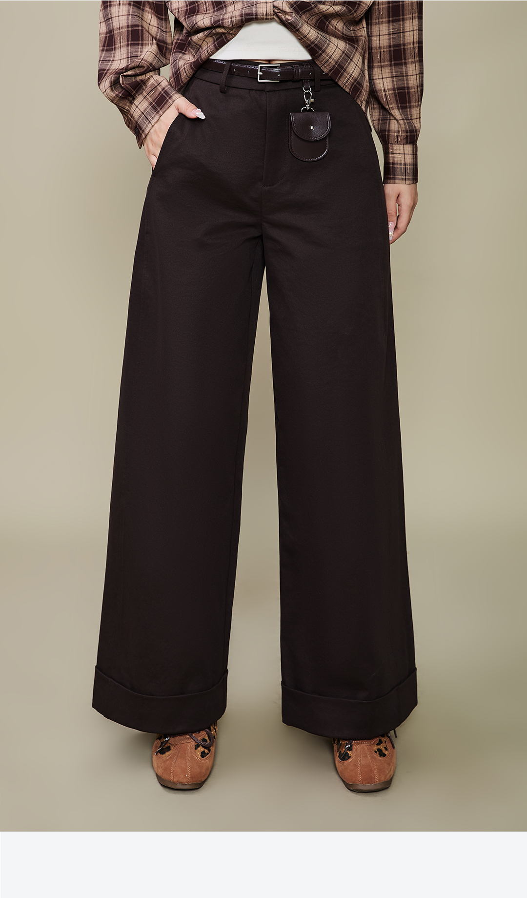 秋上新简约时尚深咖色阔腿休闲裤3253045 商品图1