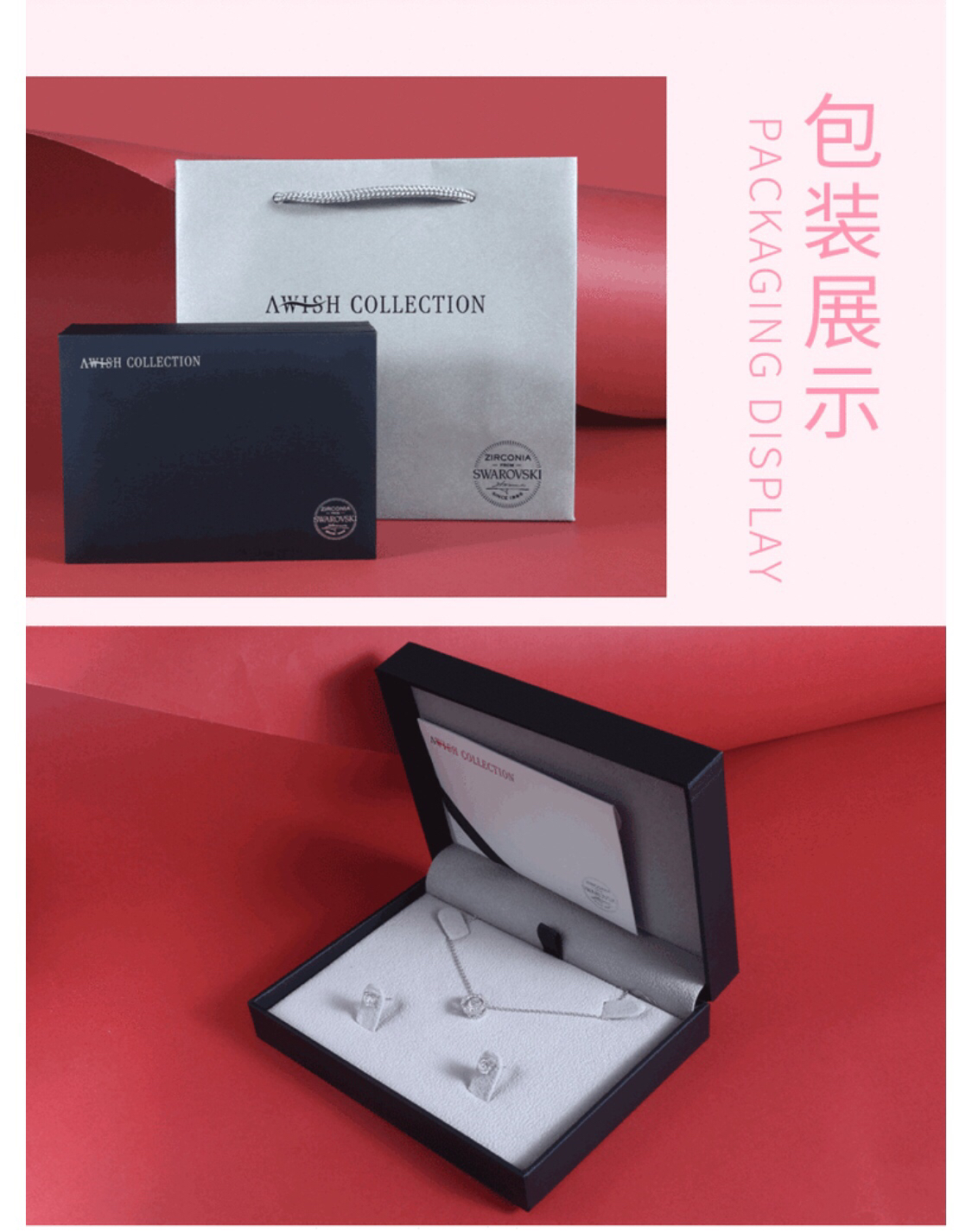 2、这款跳动的心也是Awish Collection的高端系列,京东旗舰店单项链1260元在售,项链耳钉灵犀套装1680元在售,高于同款施华洛世奇。原封盒装,带身份卡,礼品袋,防伪码。保真保正,有授权。
