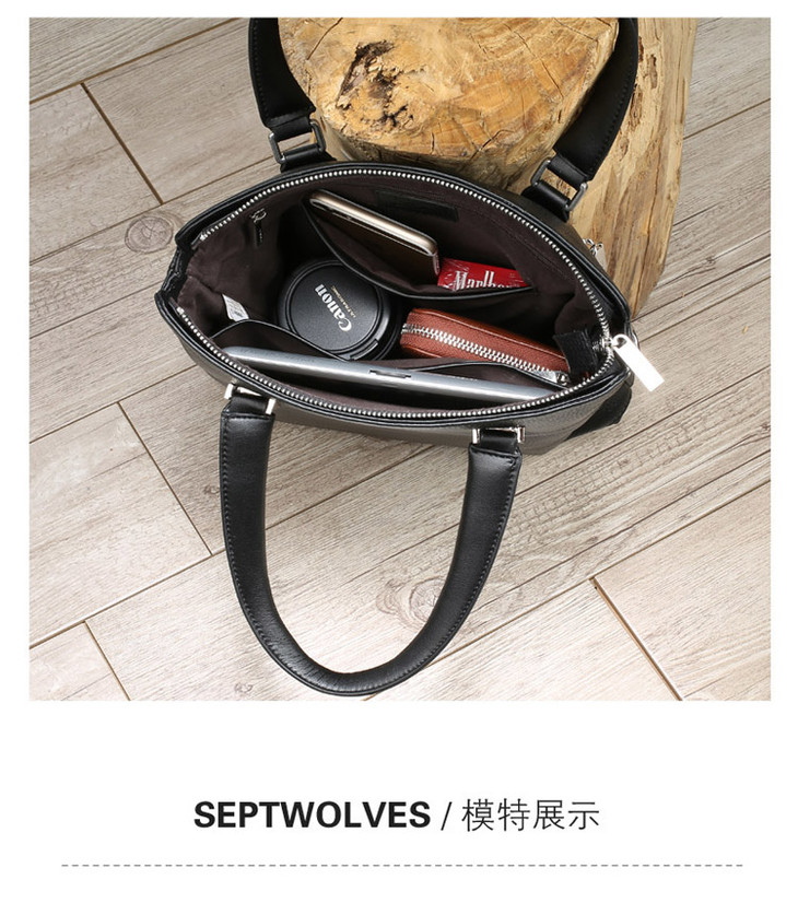 七匹狼男士皮包手提单肩包竖款手拿商务斜挎包真牛皮休闲文件包男包 1A4964112-02咖啡色竖款