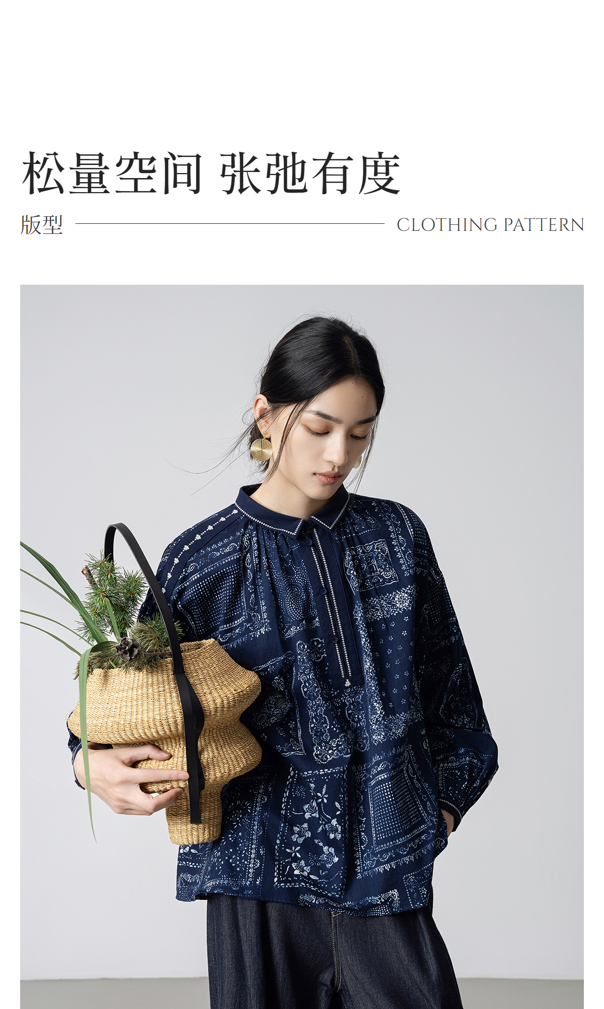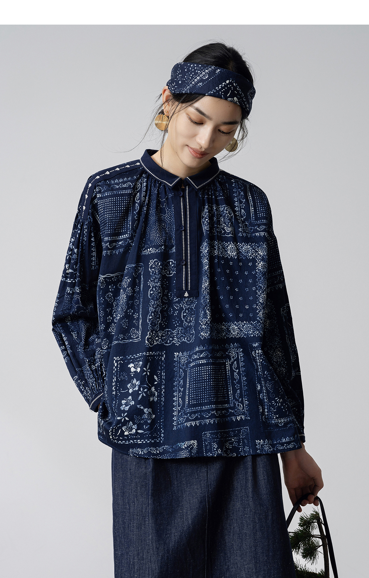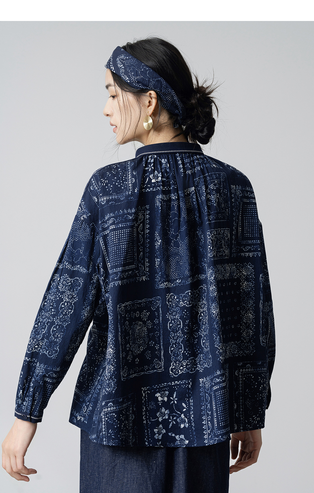 【林栖设计小店】【现货】纯棉衬衣复古蓝印花纹蓝书优雅百搭宽松2025秋季新款上衣女1953026