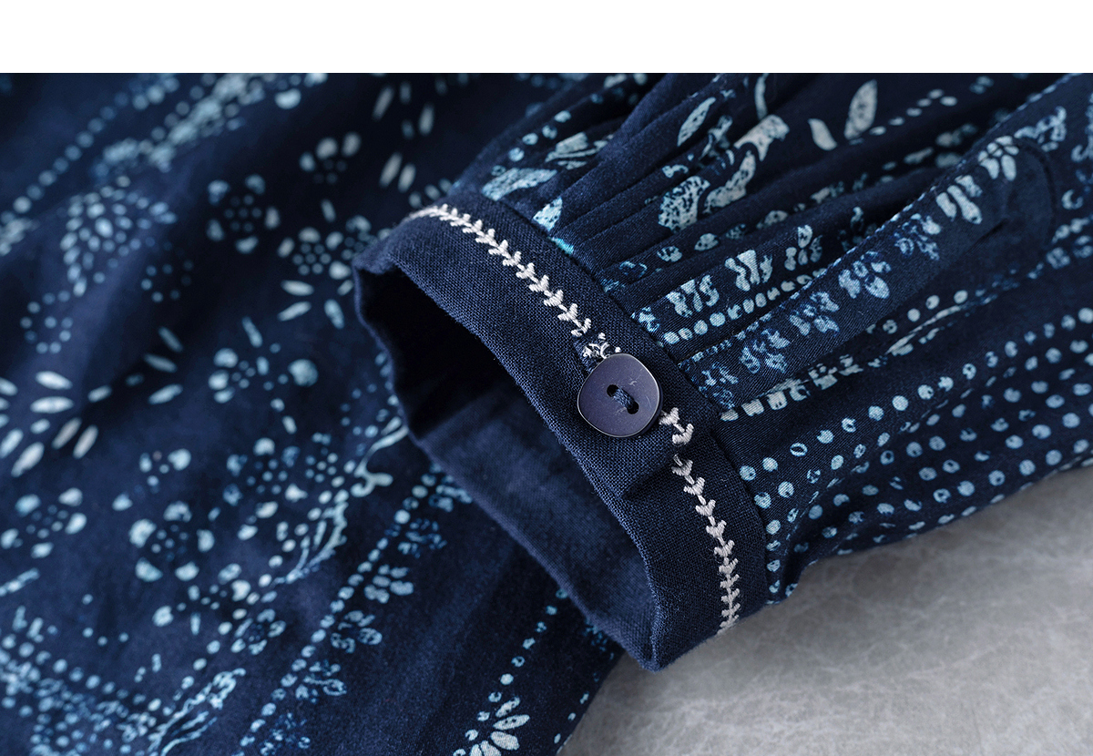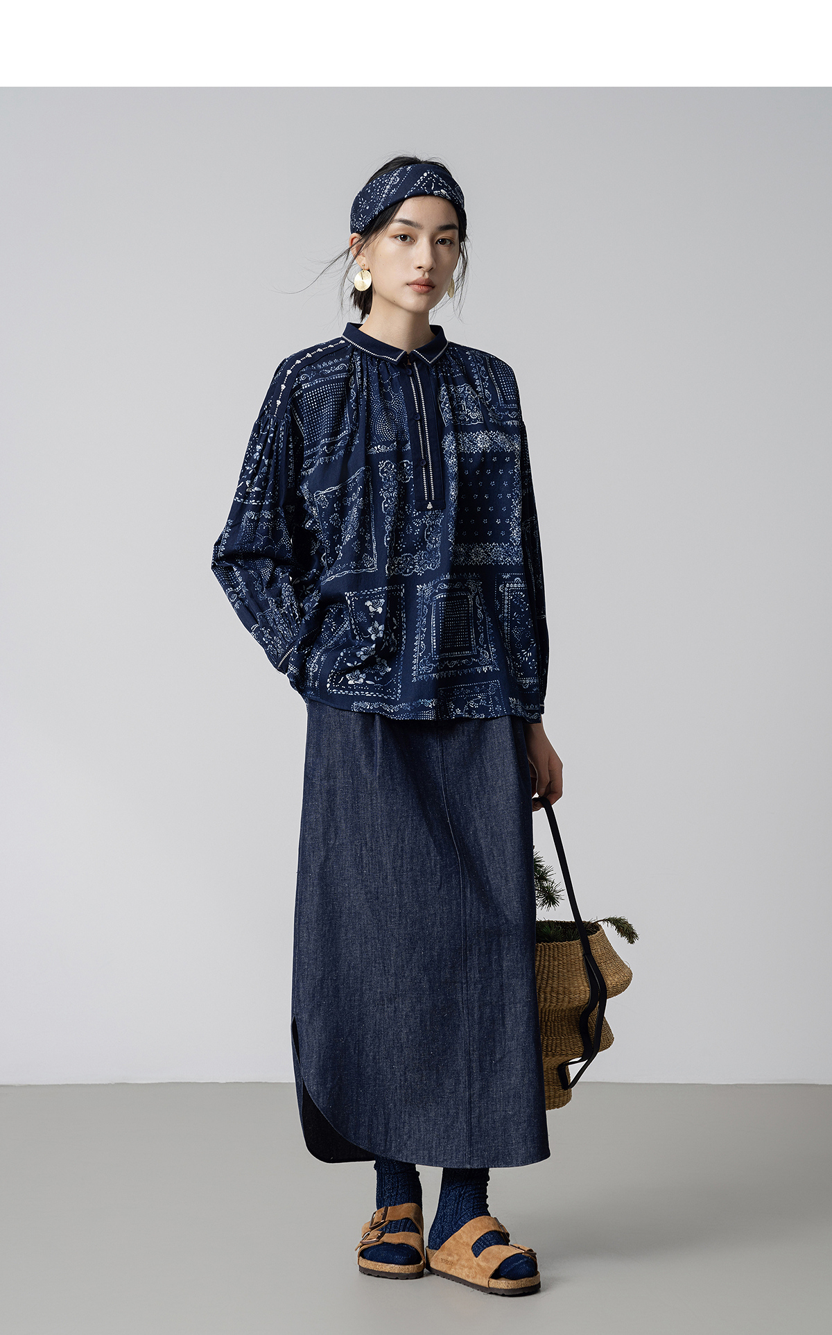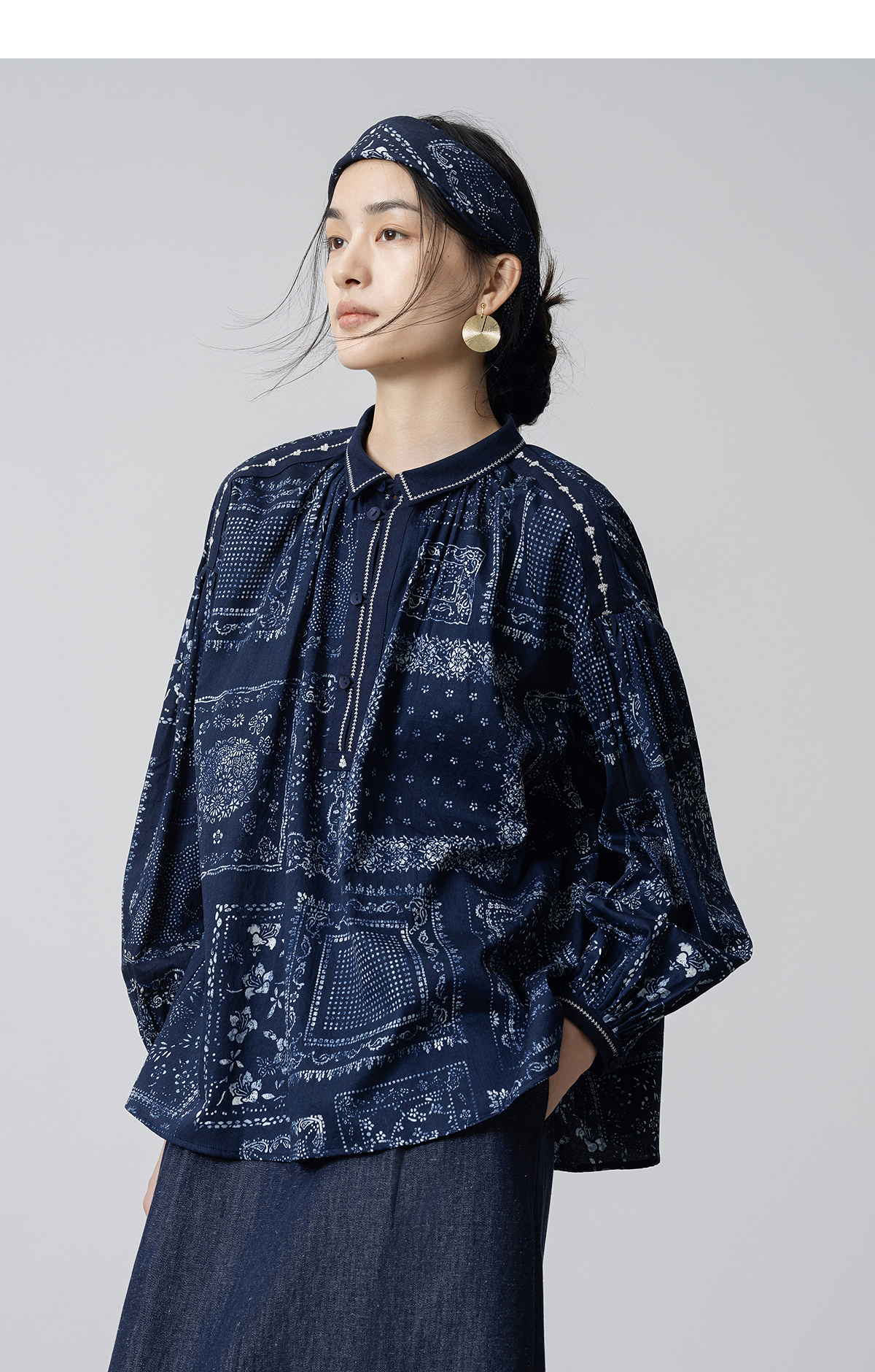 【林栖设计小店】【现货】纯棉衬衣复古蓝印花纹蓝书优雅百搭宽松2025秋季新款上衣女1953026