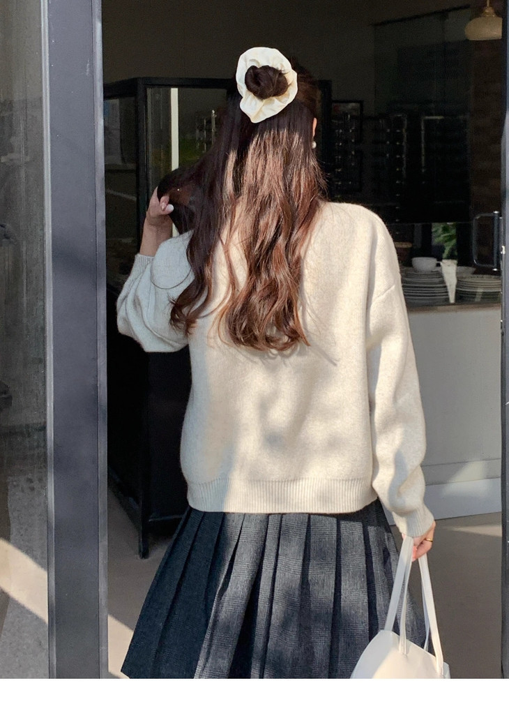 宽松的版型,包容性大、遮肉显瘦 圆领的设计形成视觉延伸,修饰脸型 精致的纽扣,给予衣服轻奢感任意搭配下半身,都能穿出唯美的浪漫气息