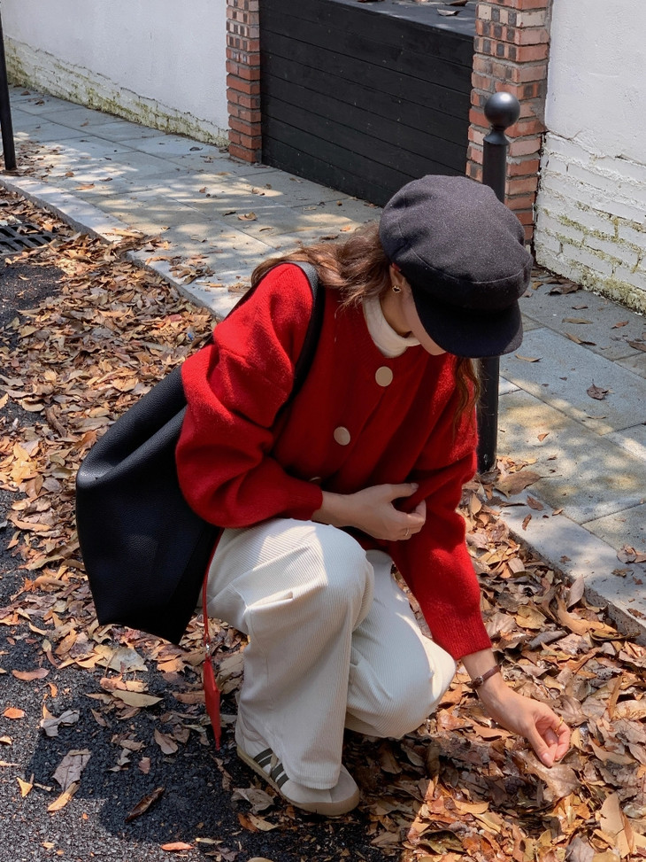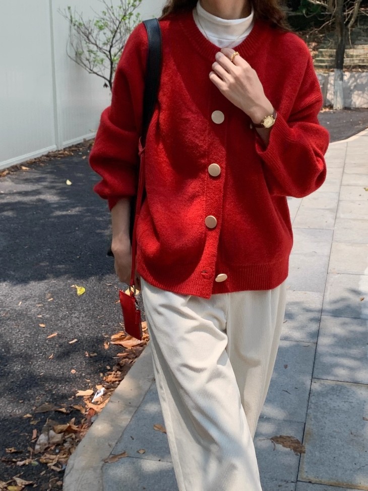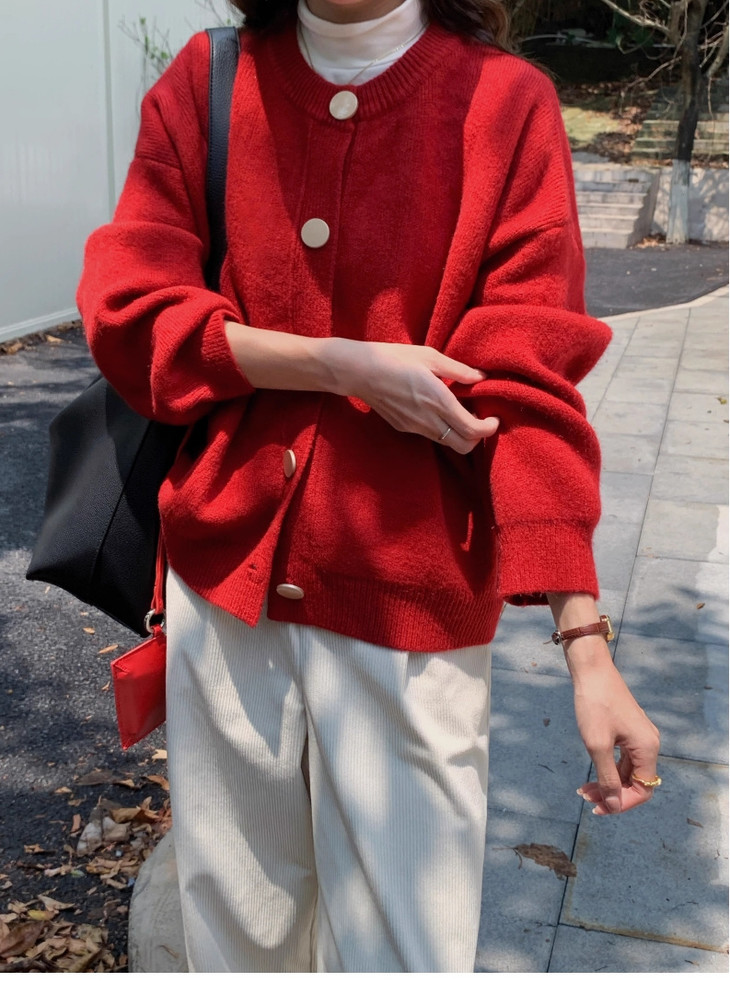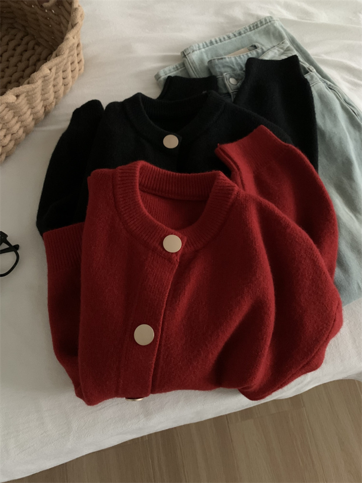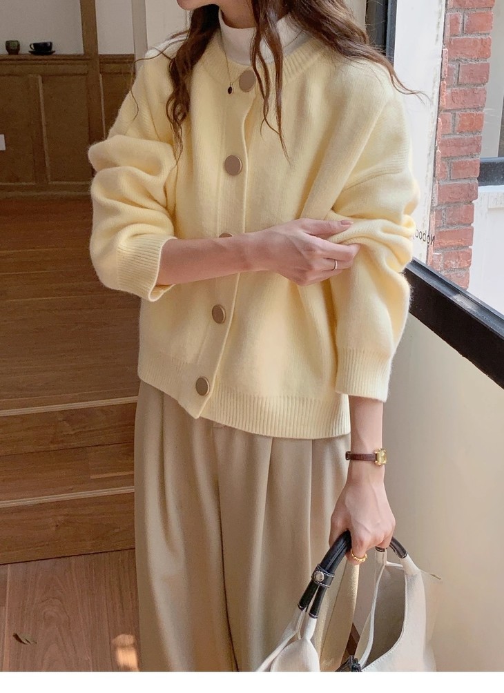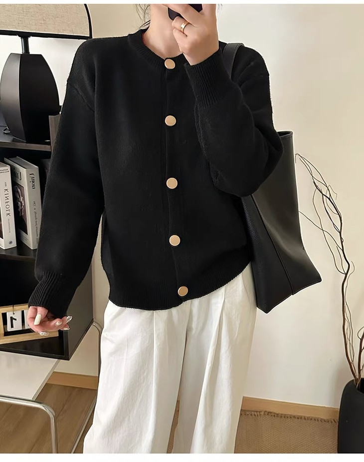 温柔金色纽扣加厚针织外套 M607