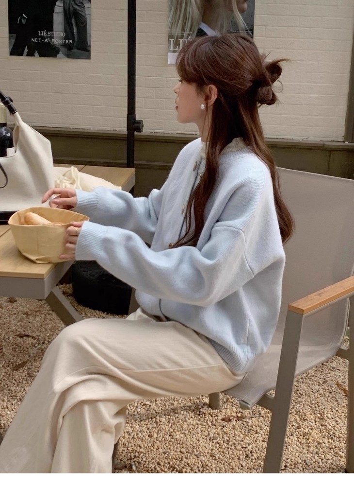 多种颜色可选 奶黄色和天蓝色真的温柔的代表色 米灰色,这个颜色也很难见到 上身一点也不挑肤色,轻松穿出温柔感