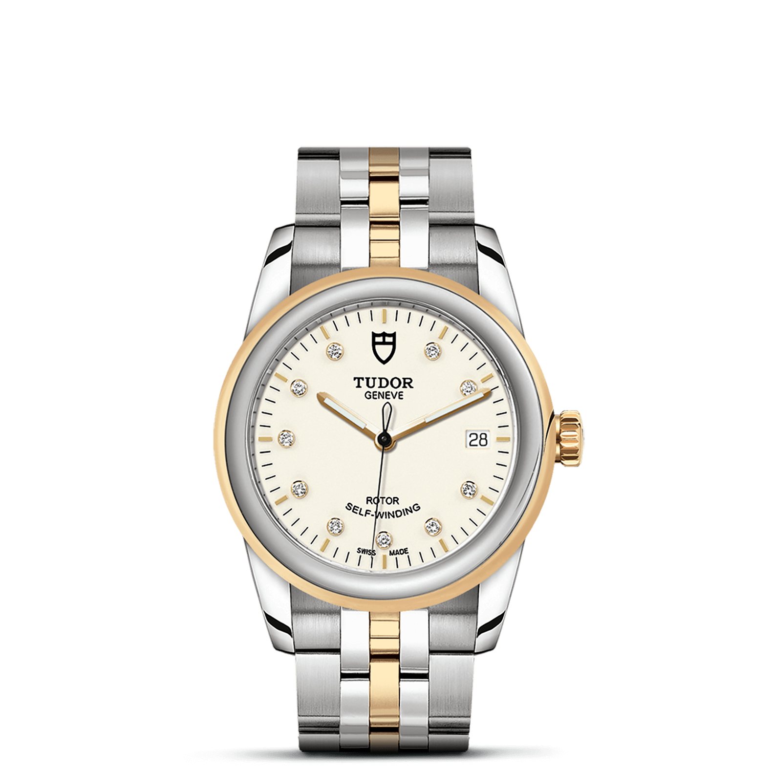 旋入式上链錶冠,饰以帝舵表标志;精钢覆有0.1毫米18K黄金薄层