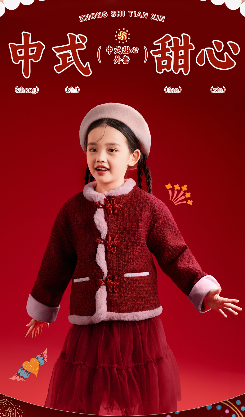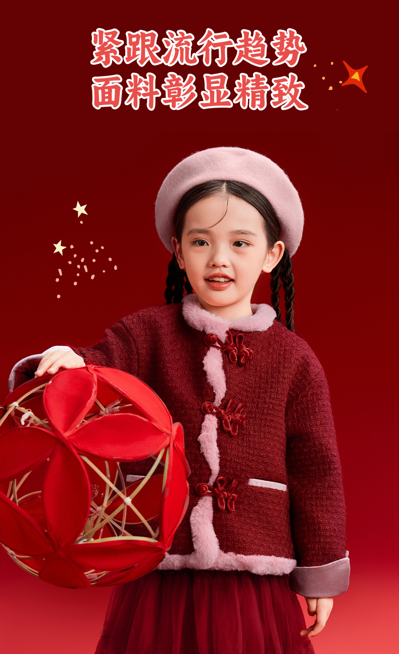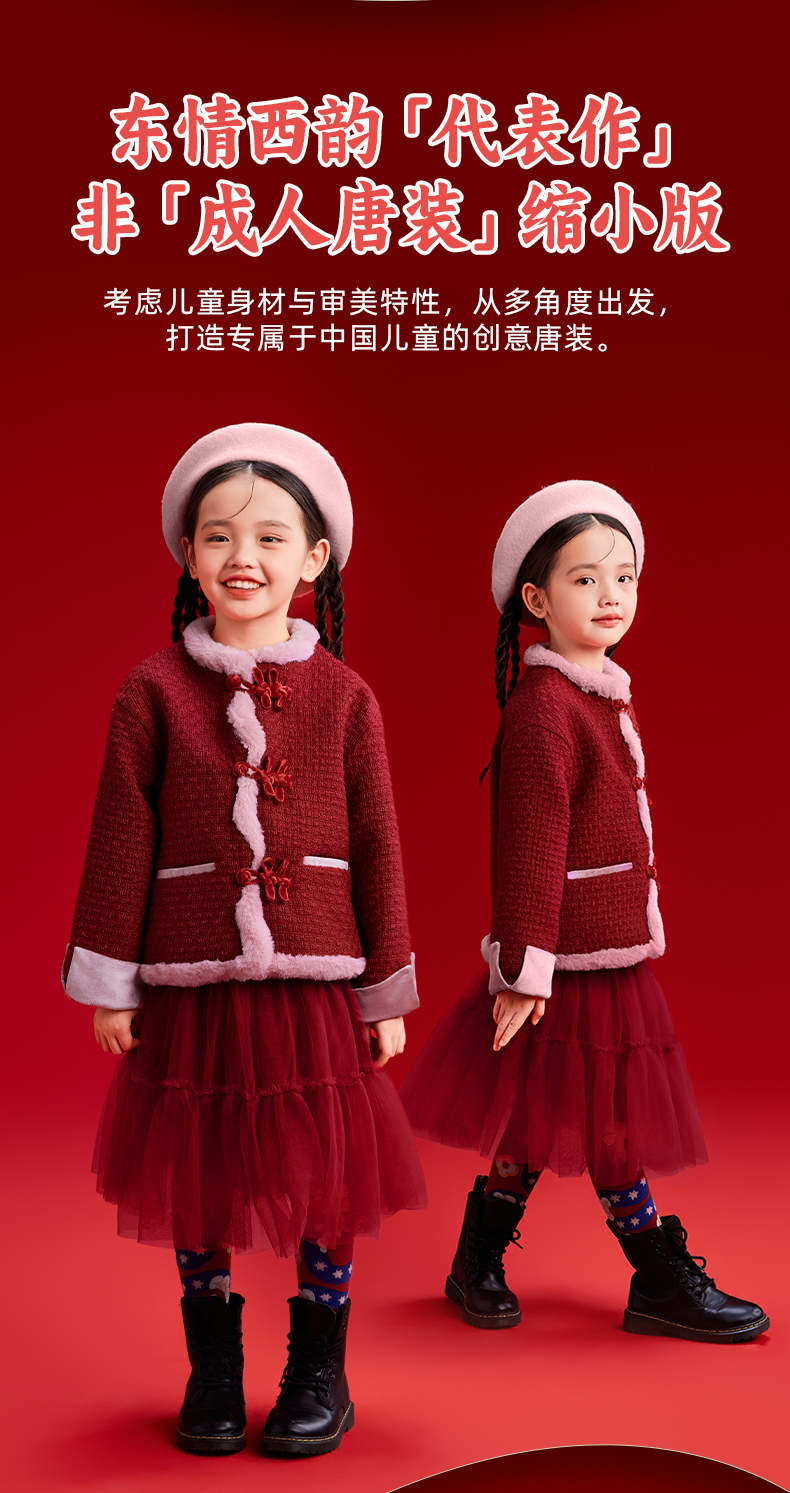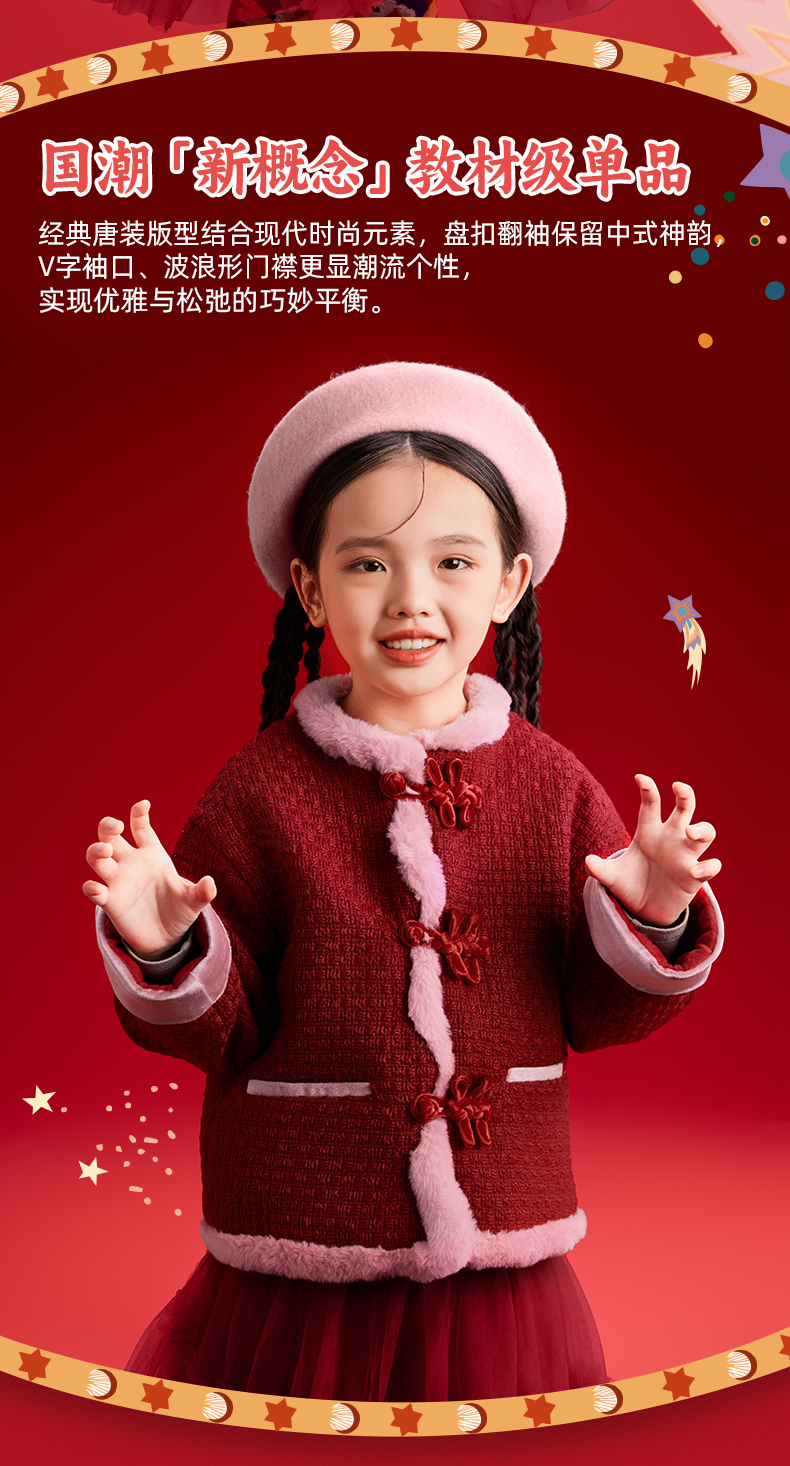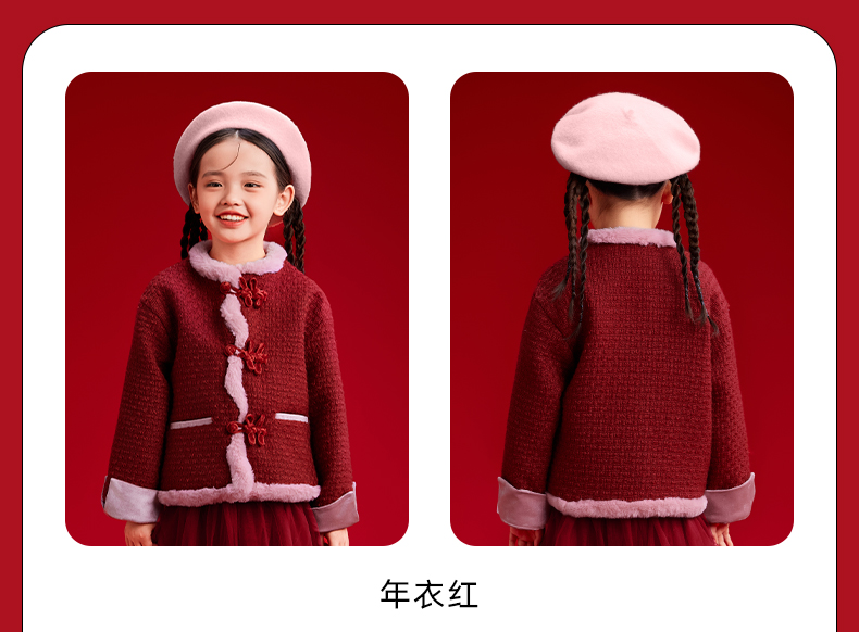 年衣童装儿童唐装外套冬季新品女童新中式国风红色拜年服上衣中式甜心外套