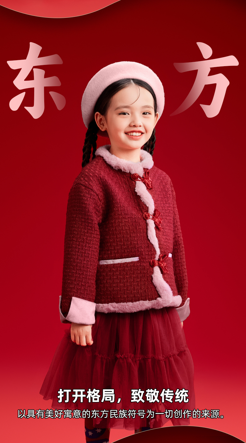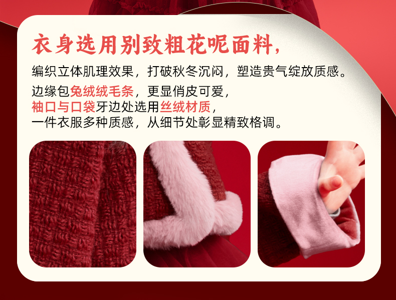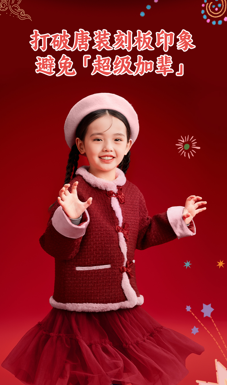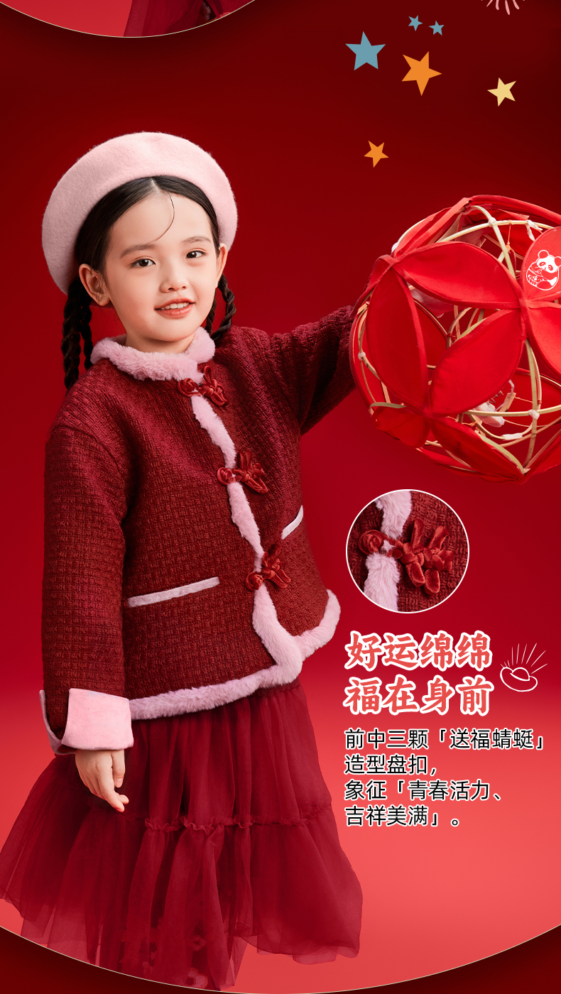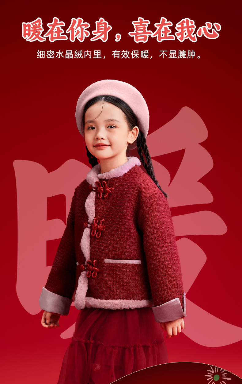年衣童装儿童唐装外套冬季新品女童新中式国风红色拜年服上衣中式甜心外套