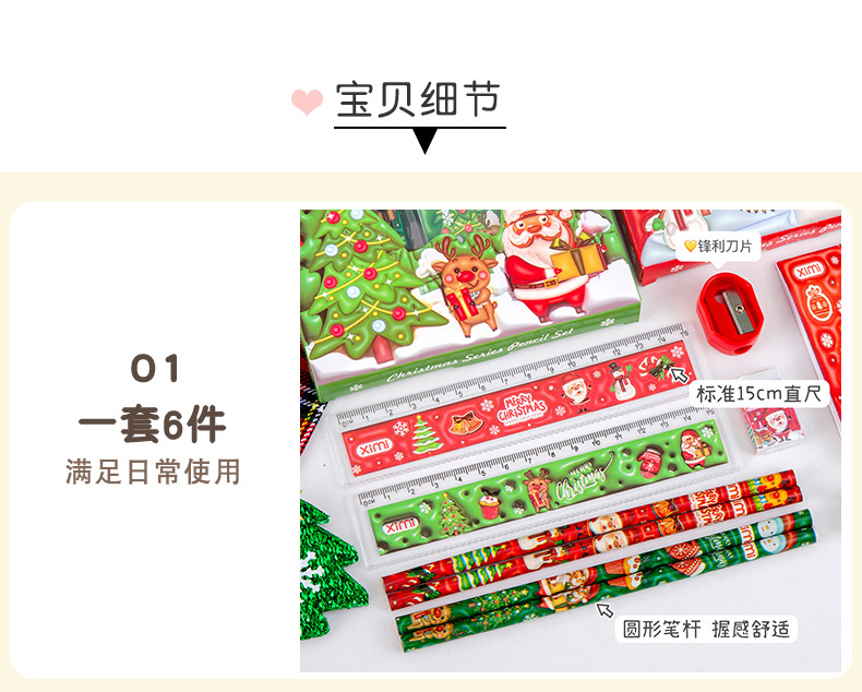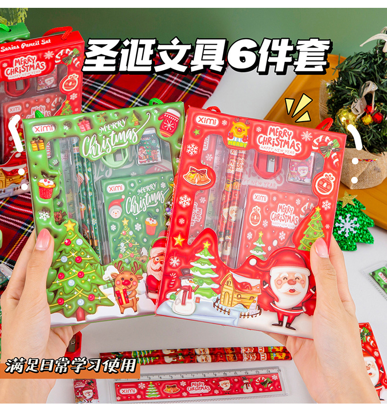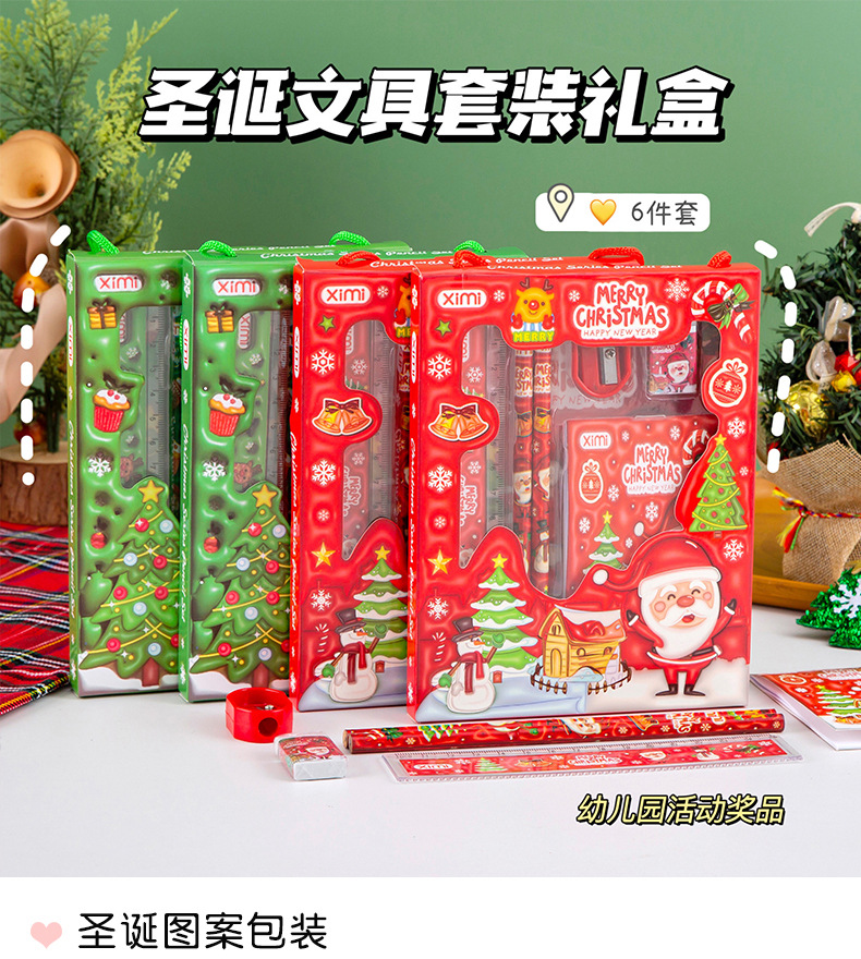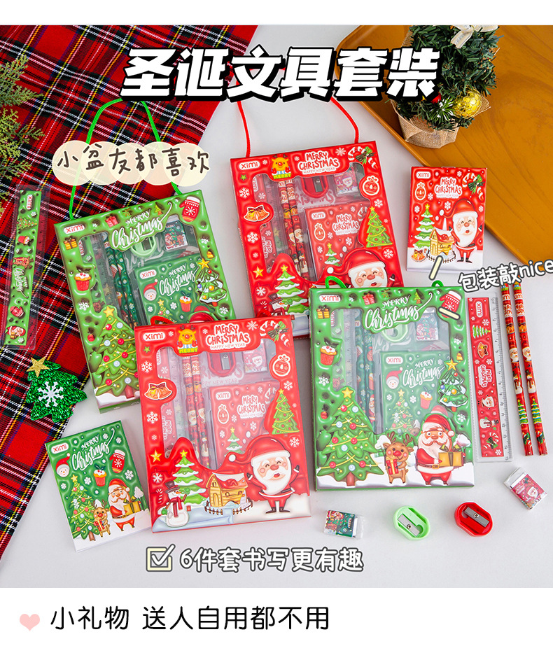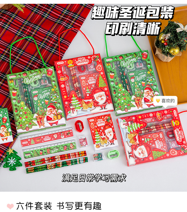 【趣味圣诞包装❗️满足日常学习使用】圣诞节礼物新款文具套装礼盒六件套小学生伴手礼铅笔幼儿园小礼品。ja