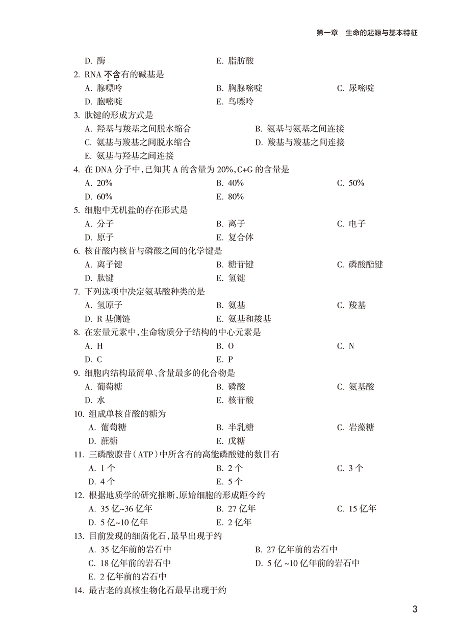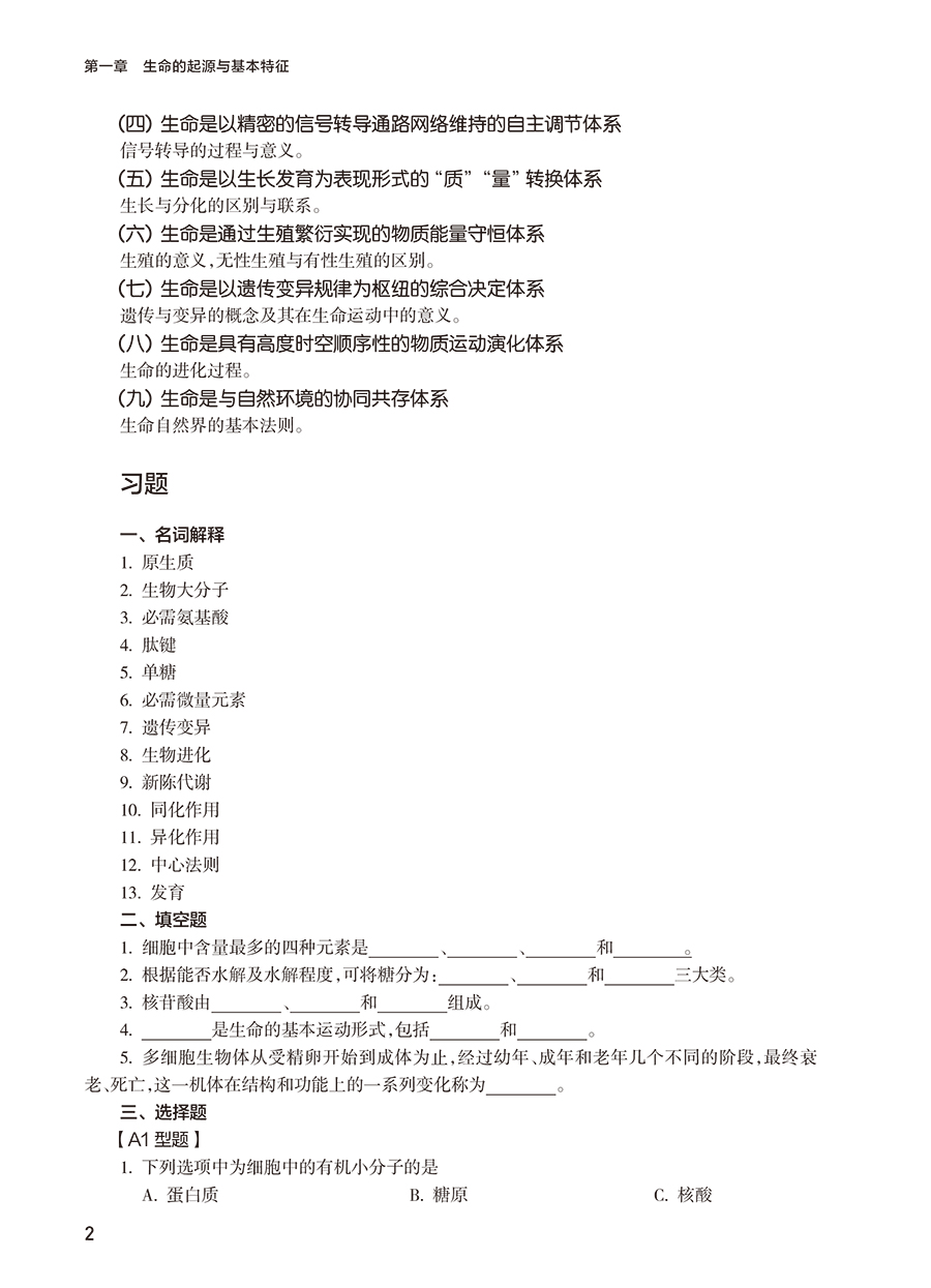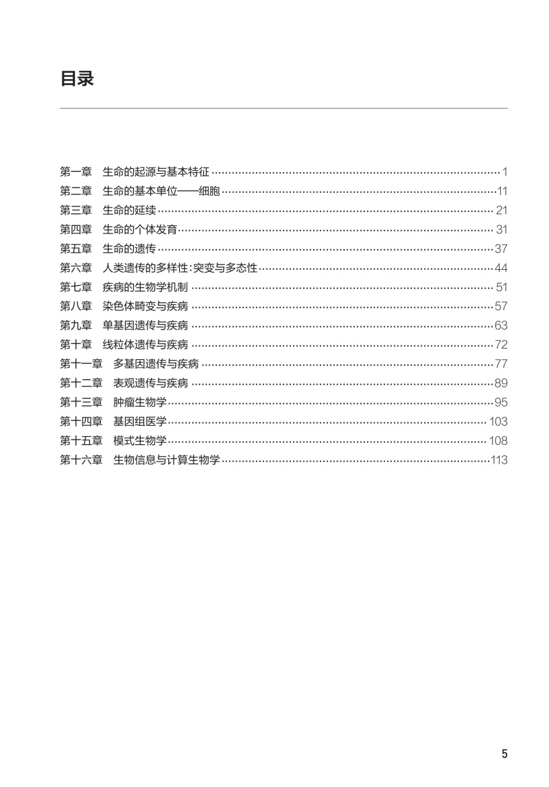 《医学生物学学习指导与习题集》(第6版)归纳总结了《医学生物学》(第10版)教材各章的学习要点,分上下两篇共16章。上篇(第1~6章)为生命过程的一般原理,主要介绍生命过程的一般原理,包括生命的特征与起源、生命的基本单位—细胞、生命的延续、生命的个体发育、生命的遗传和人类遗传的多样性:突变与多态性;下篇(第7~16章)为现代生物医学,主要介绍现代生物医学理论和进展,包括疾病的生物学机制、染色体畸变与疾病、单基因遗传与疾病、线粒体遗传与疾病、多基因遗传与疾病、表观遗传与疾病、肿瘤生物学、基因组医学、模式生物学和生物信息与计算生物学。要点的总结,一方面作为授课教师在备课和辅导时的教学参考资料,另一方面也可以使学生在自学过程中能够更好地理解教材各章节的重点和难点。此外,《医学生物学学习指导与习题集》(第6版)配套教材还包括了《医学生物学》(第10版)教材各章的练习题和部分参考答案,以供学生自学时进行自测和参考。