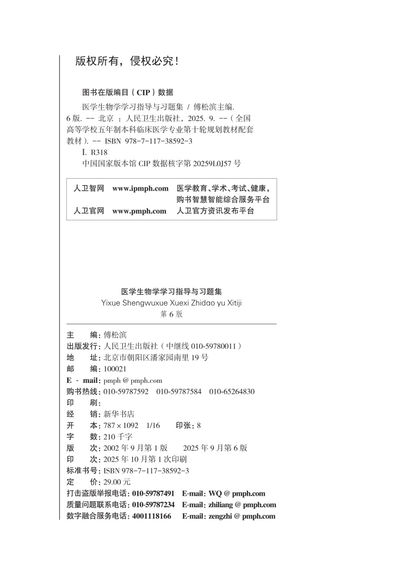 书名:医学生物学学习指导与习题集(第6版/配套教材/本科配教/临床医学)