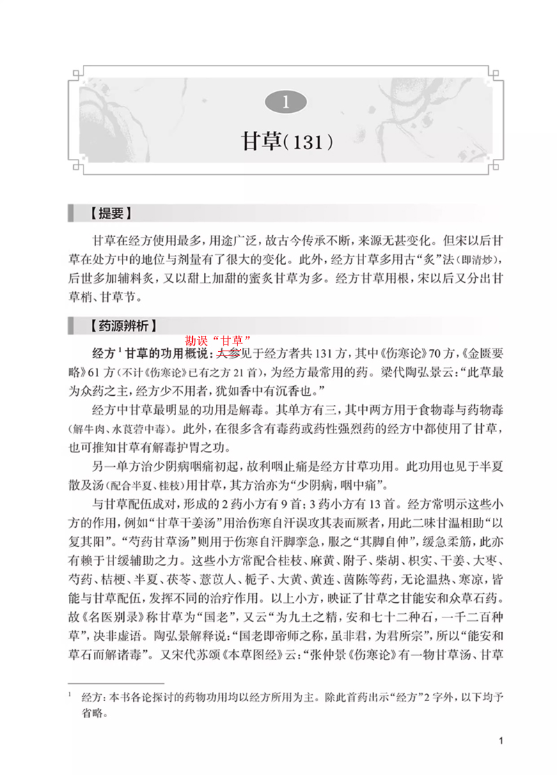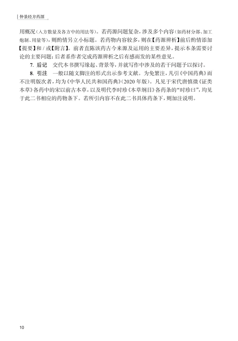 本书旨在讨论仲景经方所用209种药物的基原考订及古今运用的差异(或药物来源改变,或用药部位改变,或炮制方法改变,或用药思想改变,或来源至今欠明)。诸药下分3项述药:【提要】直陈该药古今来源及运用的主要差异,提示本条需要解决的主要问题。【药源辨析】首先介绍该药在经方中的数量与运用概况(出现频率、主治、功效等);次据该药古今运用的实际差异,分别设立标题,逐一予以探讨。【附言】归纳药源辨析结论,表达作者对处理古今用药差异的意见。