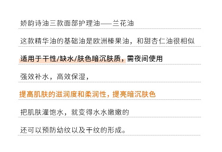 娇韵诗兰花油面部精油护理油护肤精华油补水滋润保湿