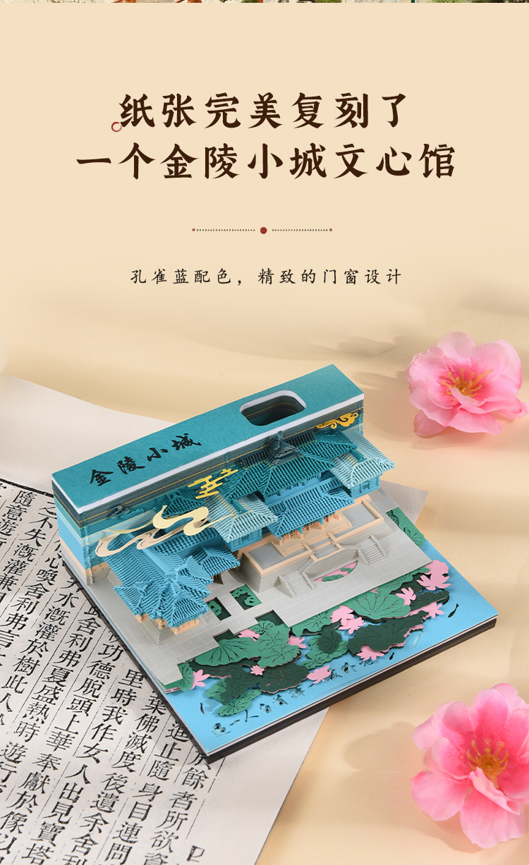 牛首山文创3D立体纸雕便签纸手撕便利贴国风艺术品桌面摆件可定制